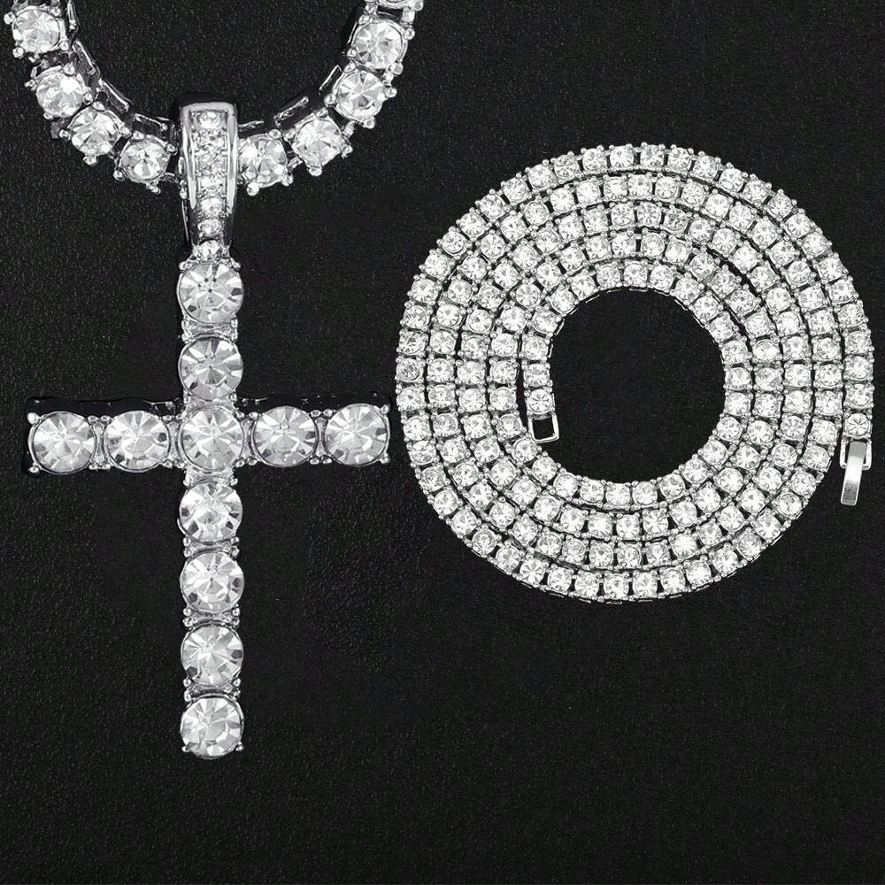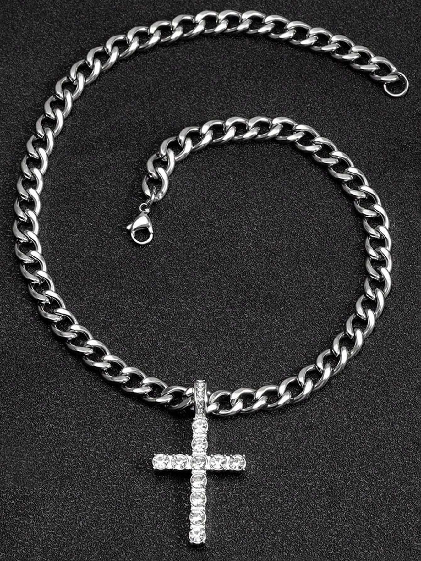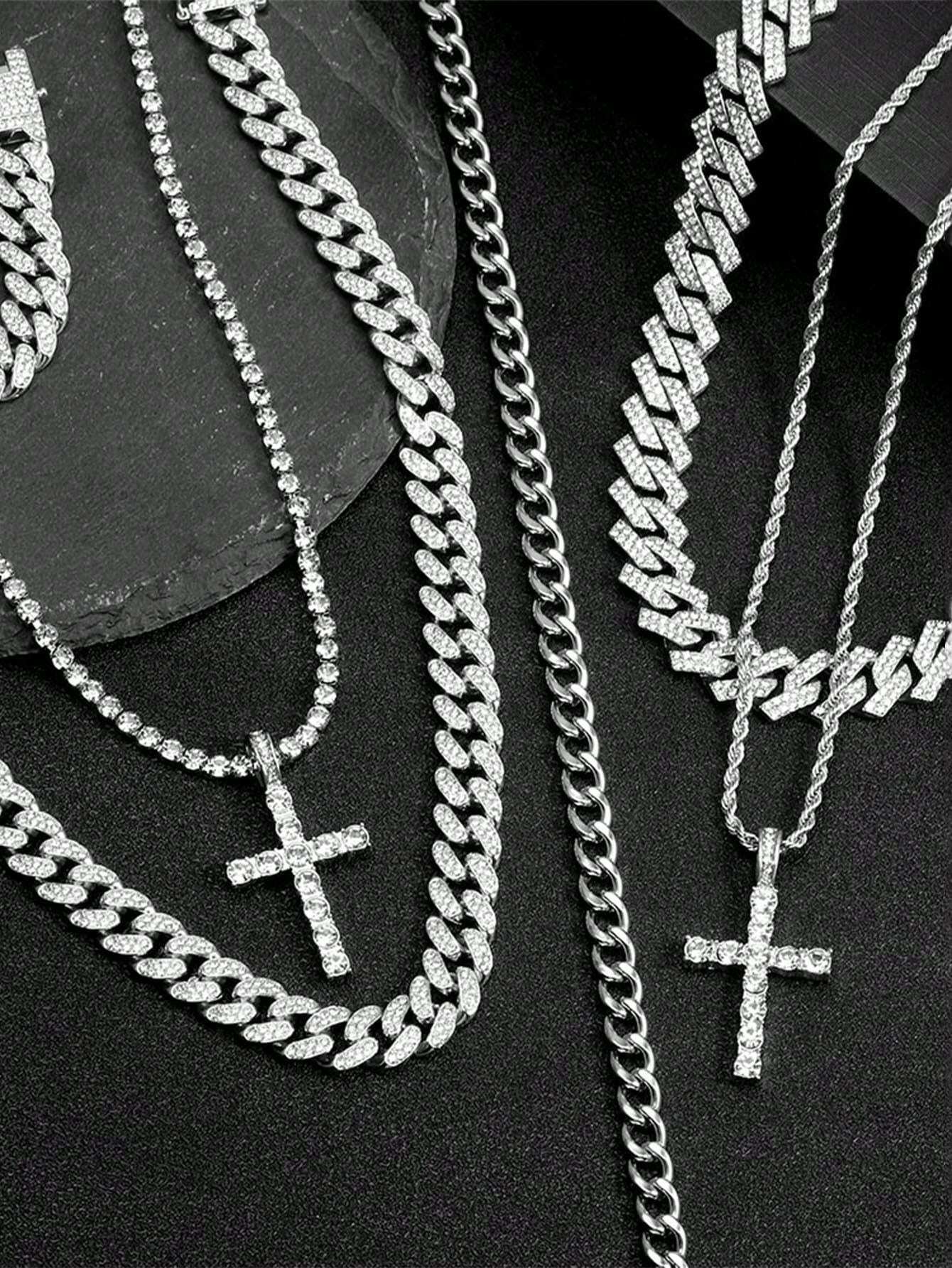 2PCS Necklace Paired With Vintage Cross Pendant Necklace Made Of Rhinestone Material Fashionable Vintage Set Birthday Gift For Men