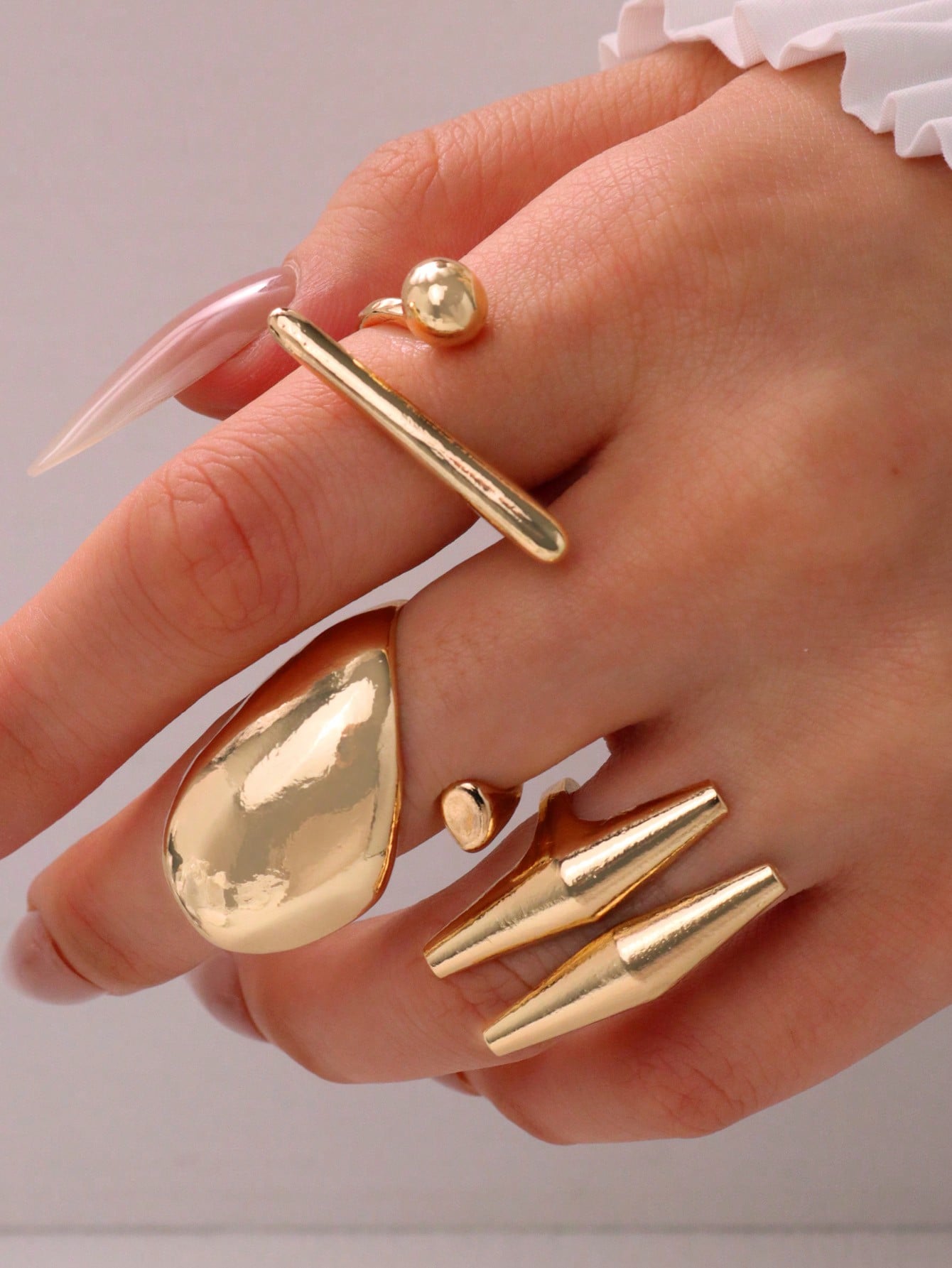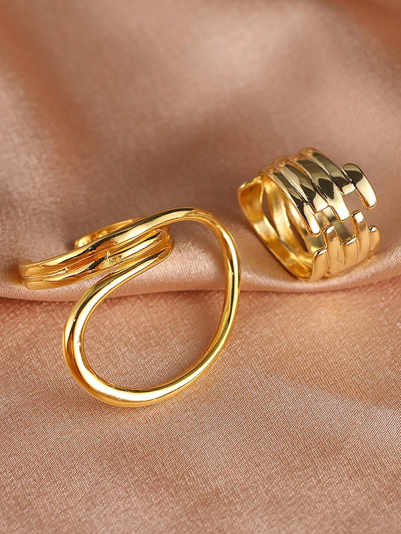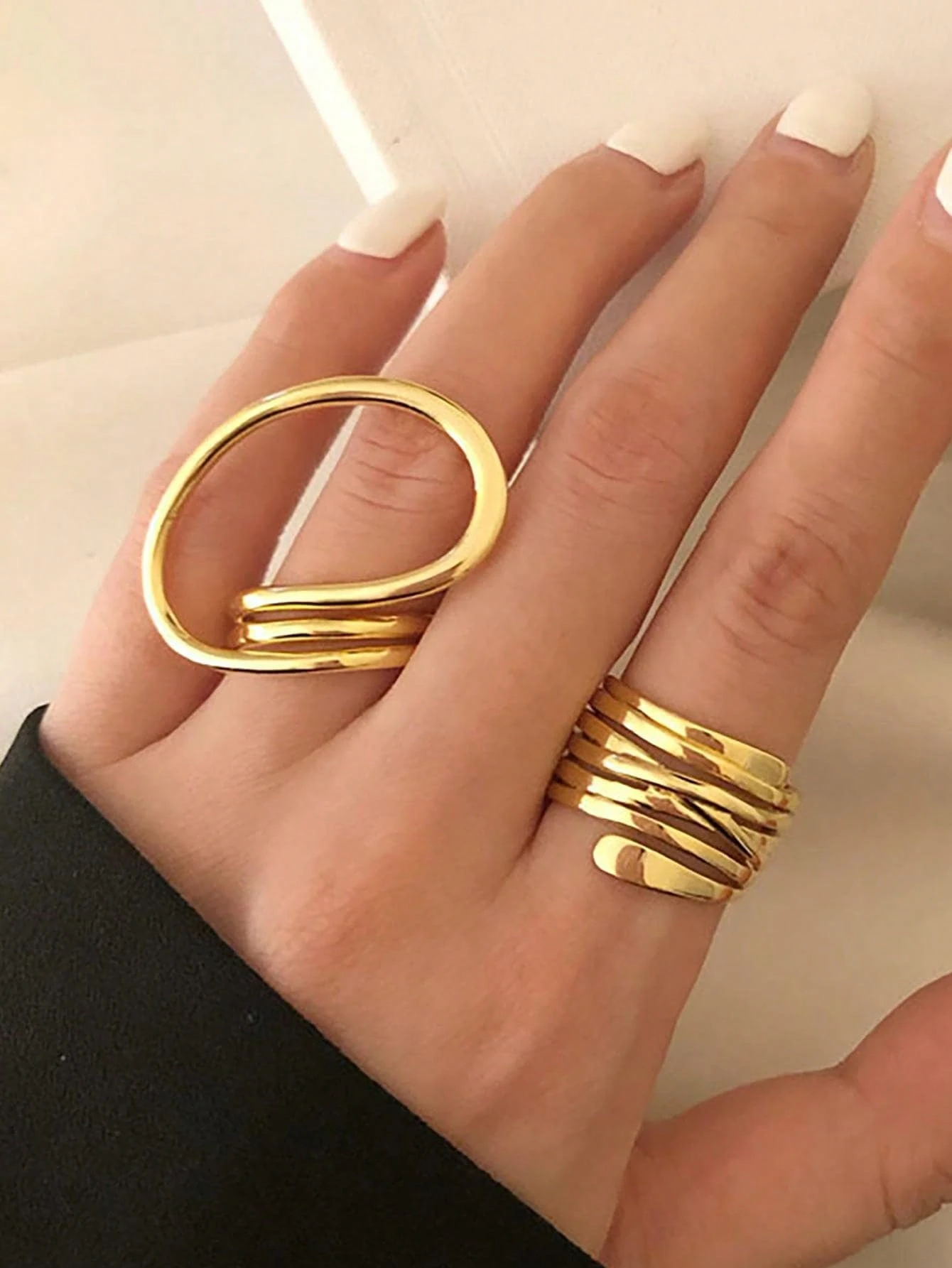 Home Accessories Women-Accessories Jewelry Sets-WA 2pcs/Set Spiral Multilayer Chunky Geometric Hollow Twist Open Joint Ring Set Rings For Women