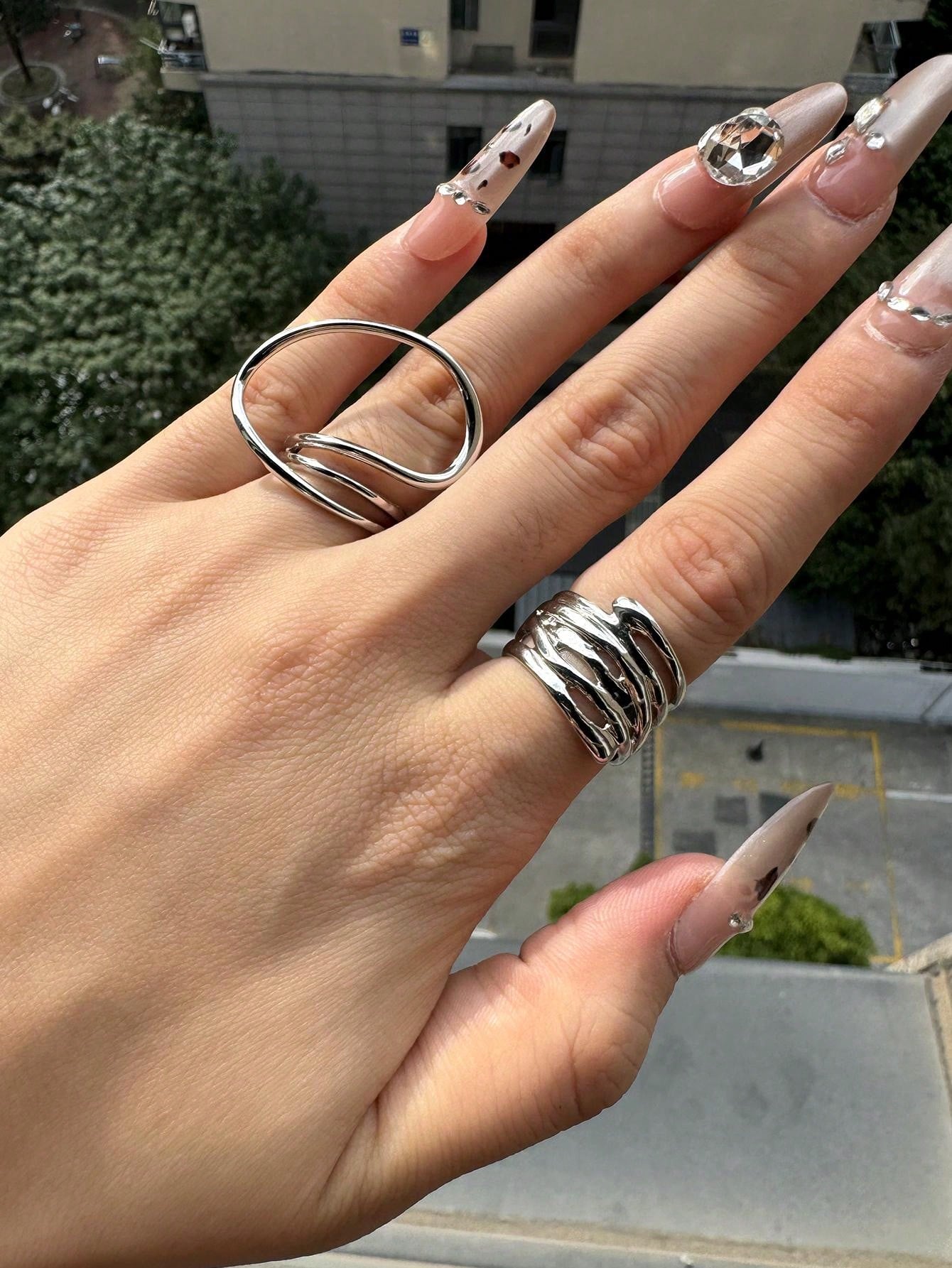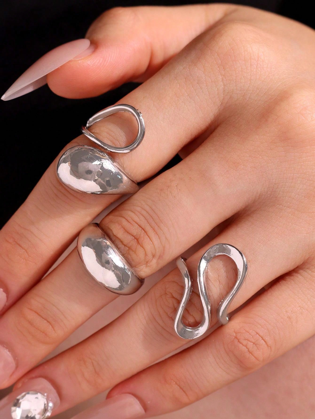 2pcs/Set Spiral Multilayer Chunky Geometric Hollow Twist Open Joint Ring Set Rings For Women