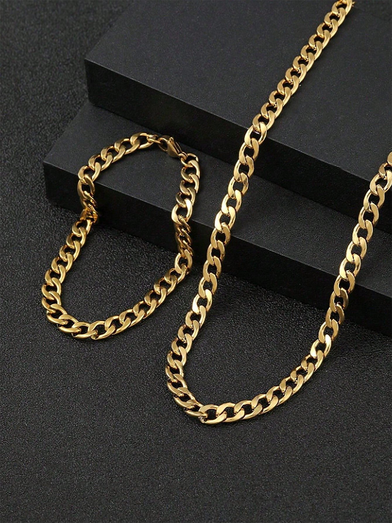Be the first to review “2pcs Stainless Steel Gold-Tone Thick Chain Hexagonal Polished Necklace & Bracelet Set, Fashionable Minimalist Design For Men Daily Wear & Gift” Cancel reply