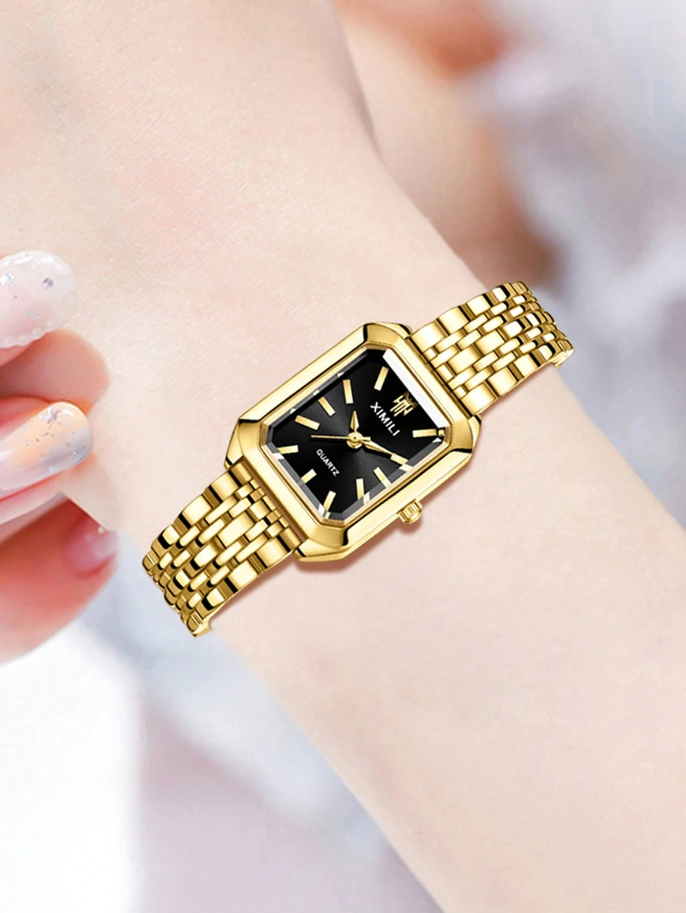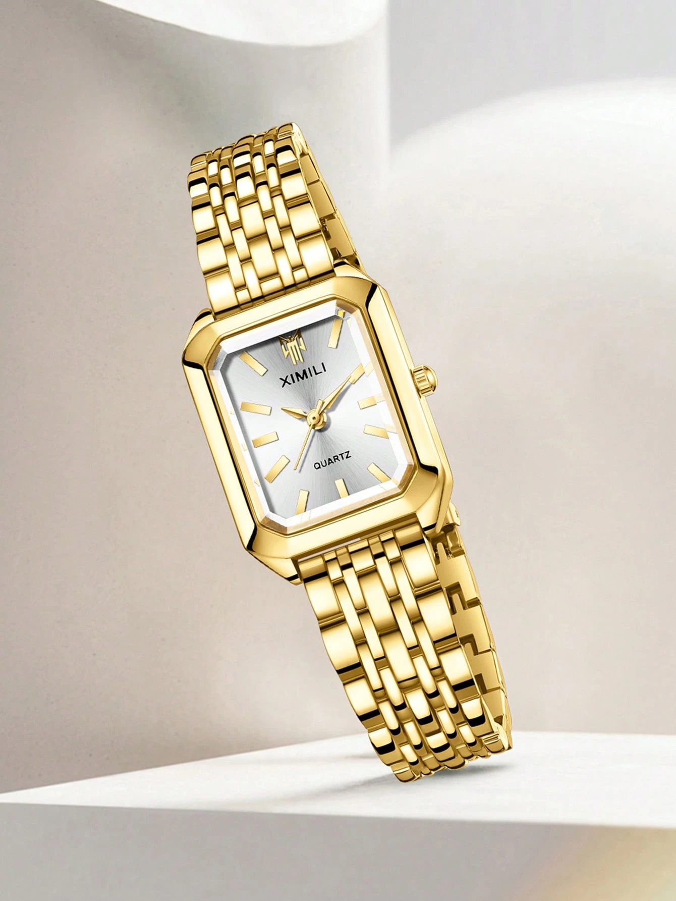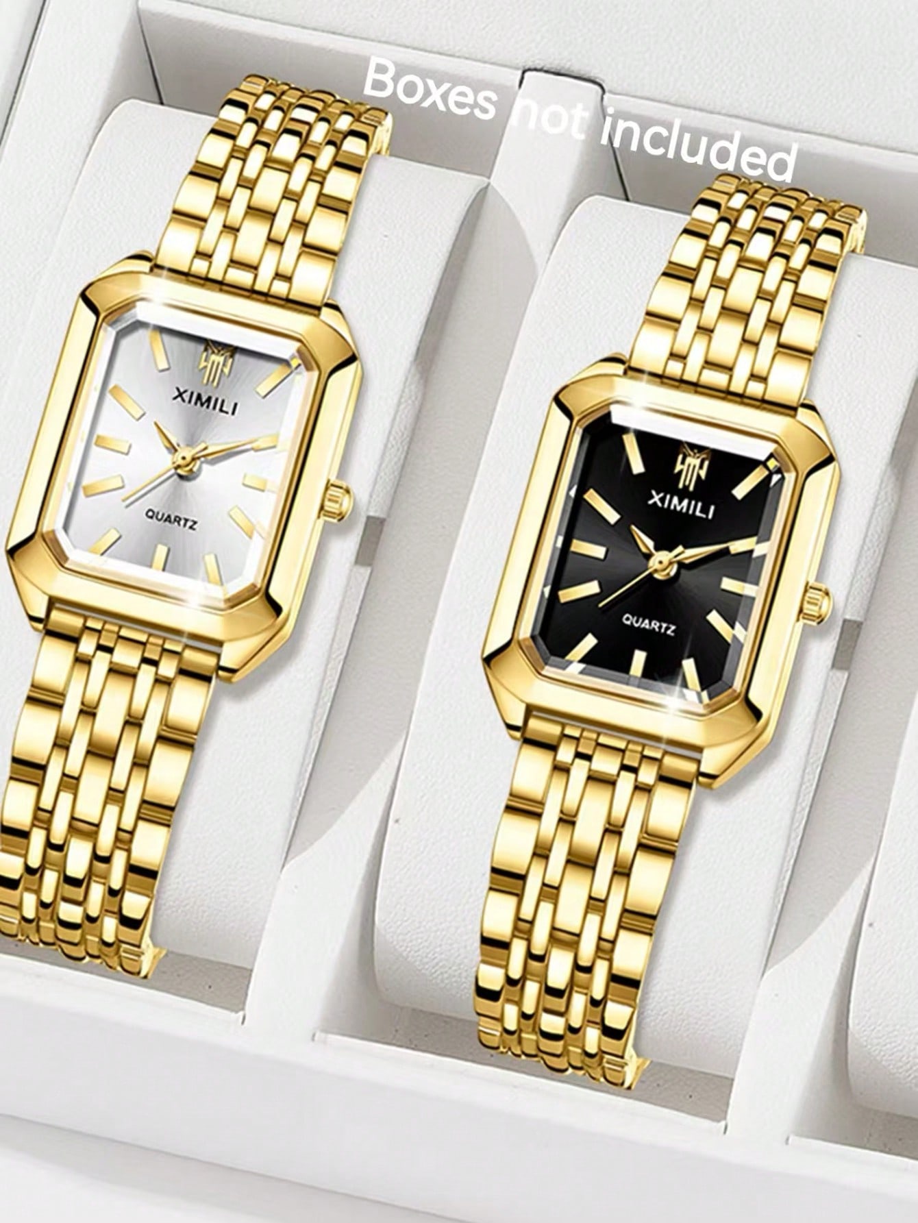 2Pcs Women's Steel Strip Fashionable Casual Temperament Simple Scale Small Square Dial Quartz Watch Set For Daily Wear Or Holiday Gift Giving
