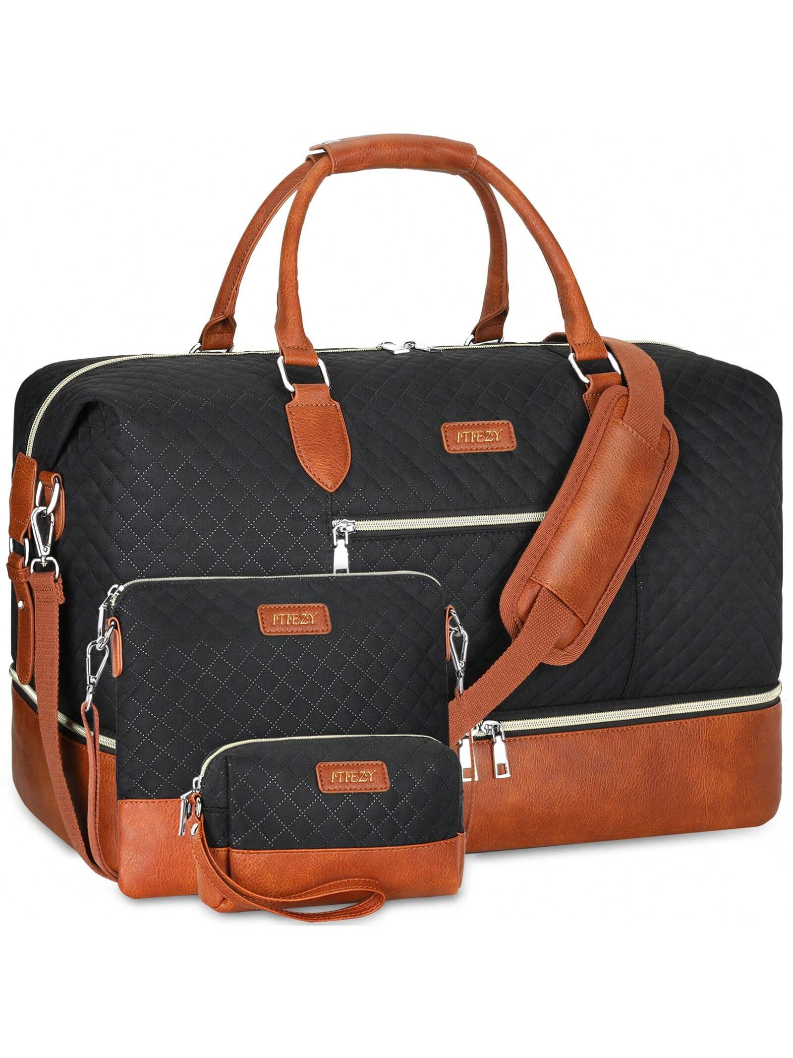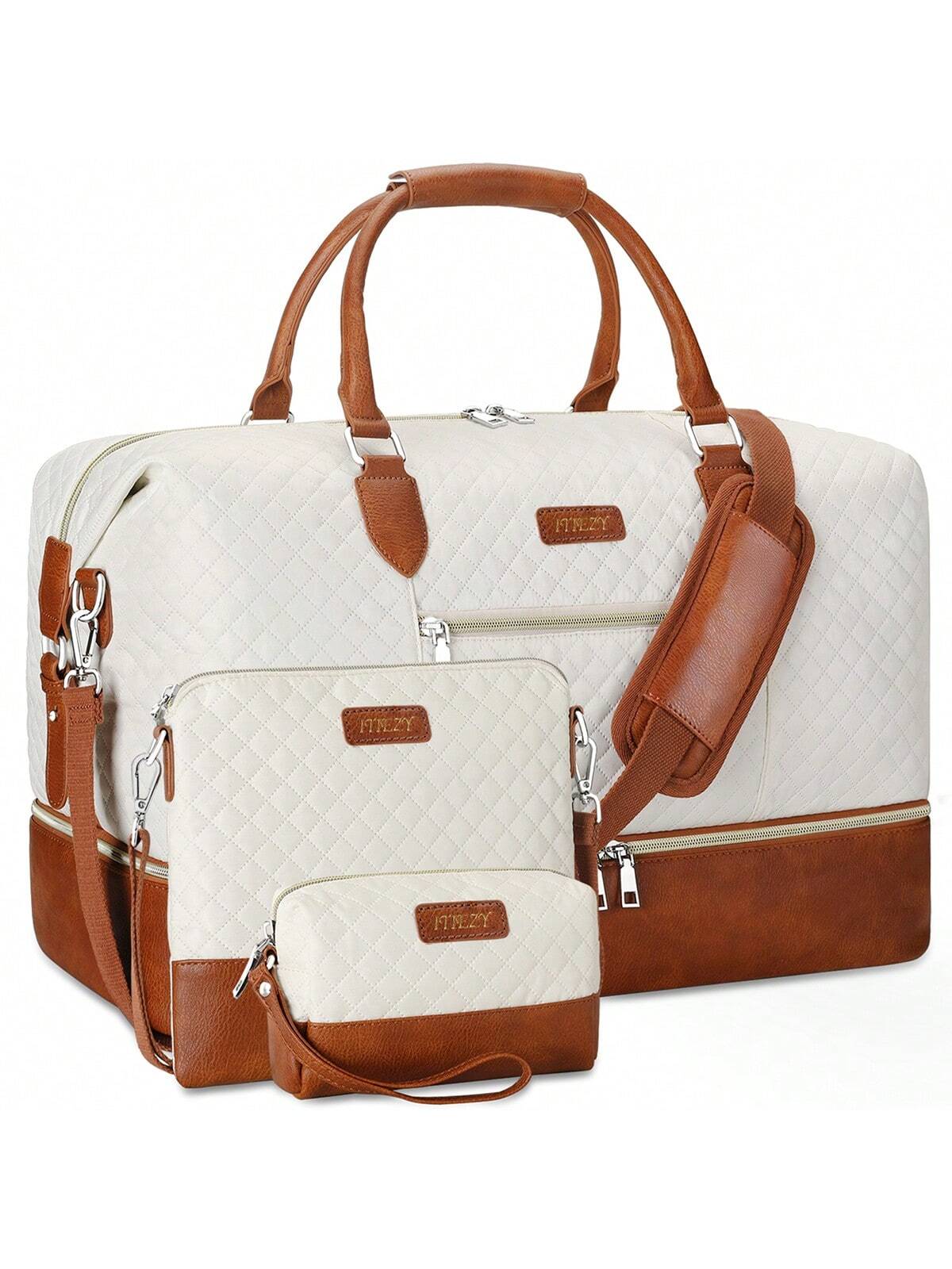 3PCS/1PC Weekender Bag For Women/Men, Travel Duffel Bag Carry On Overnight Bag With Shoe Compartment Nylon Travel Weekend Tote Bag,Cow Pattern Bag For School School Accessories School Stuff