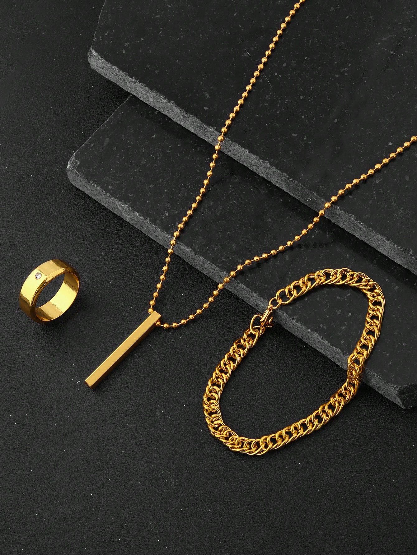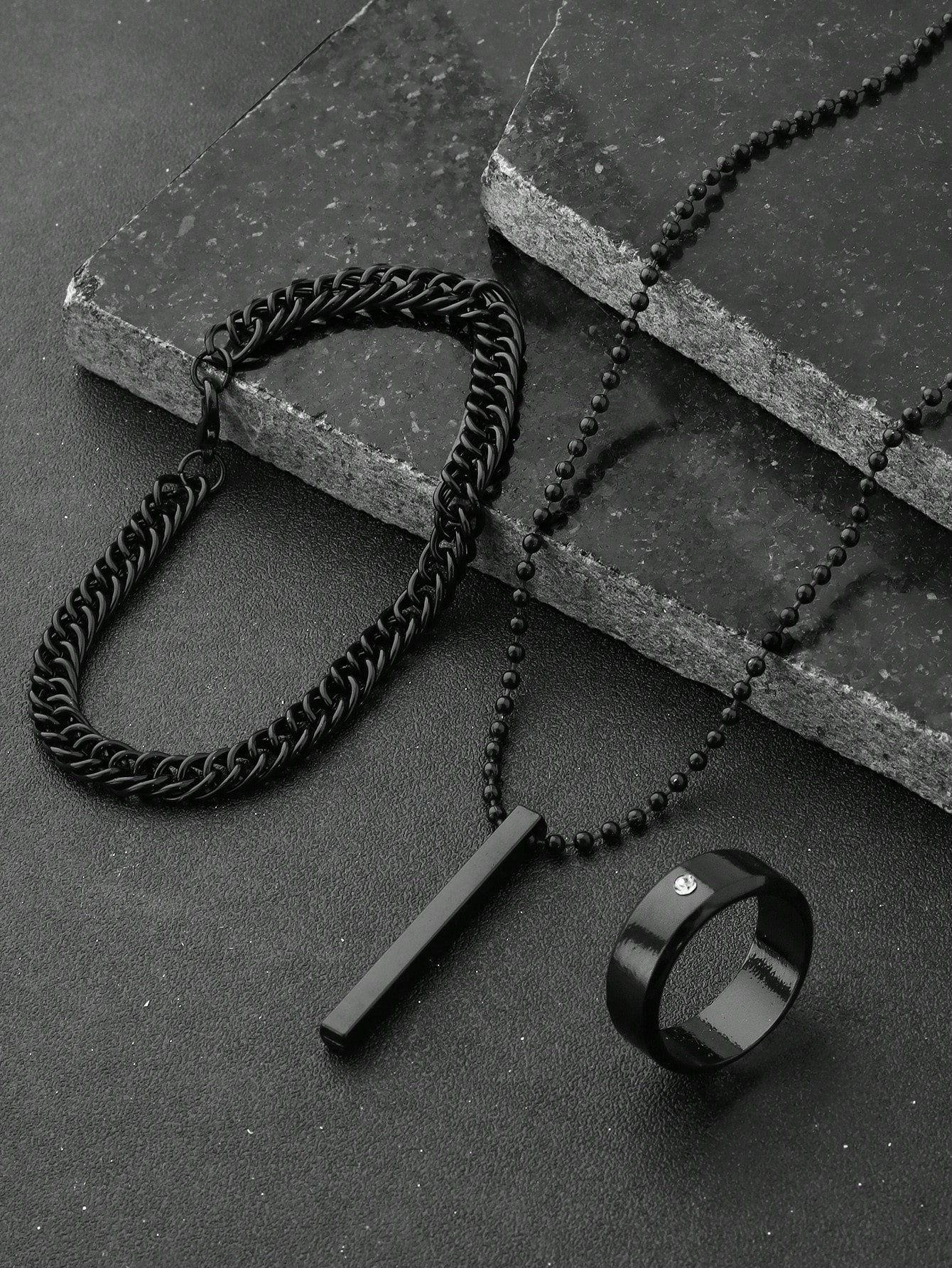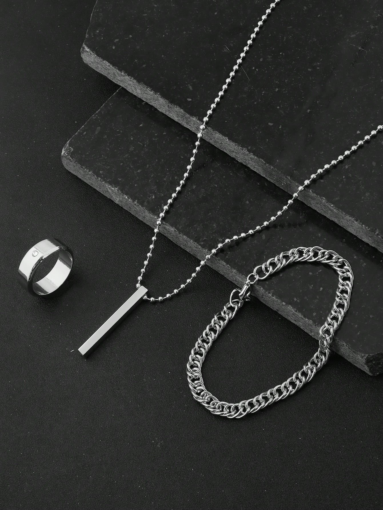 3pcs/9pcs Set Men's Hip-Hop Fashion Pendant Necklace, Bracelet And Ring, Suitable For Everyday Wear No Box