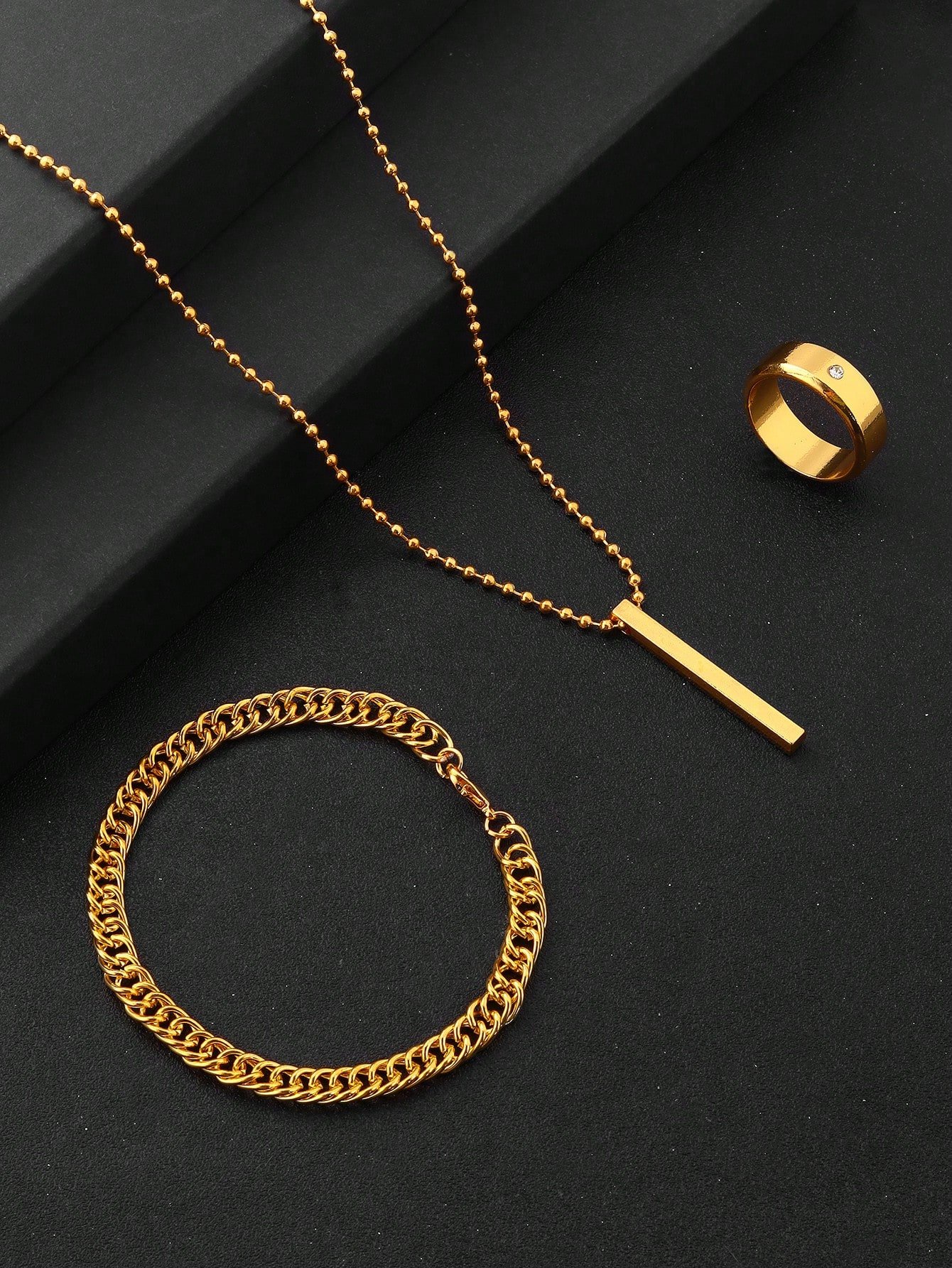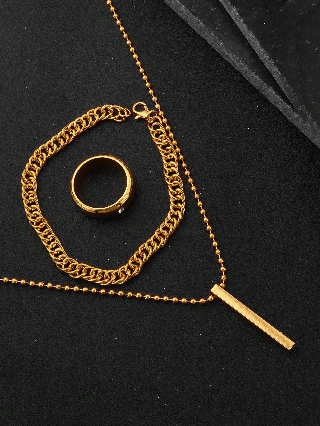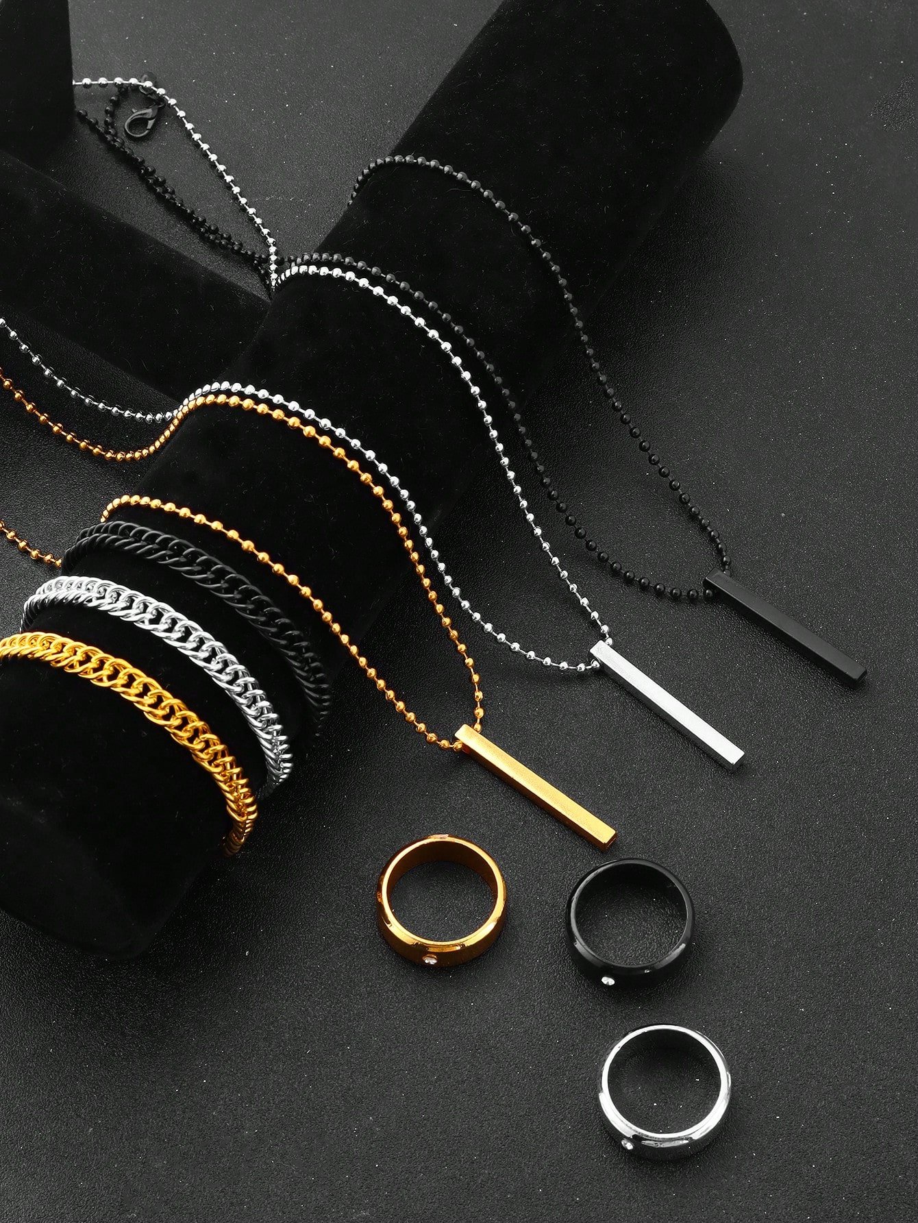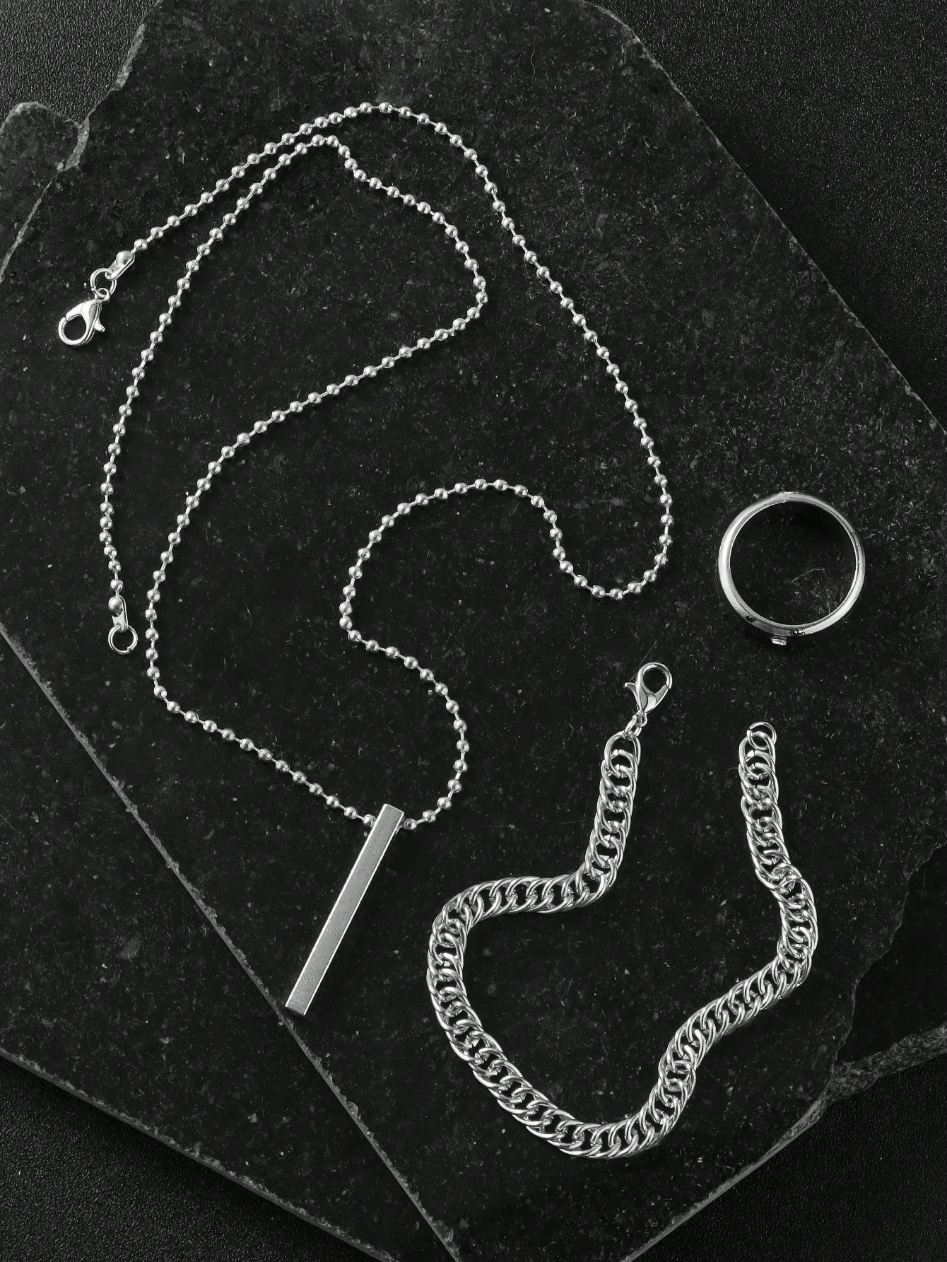3pcs/9pcs Set Men's Hip-Hop Fashion Pendant Necklace, Bracelet And Ring, Suitable For Everyday Wear No Box
