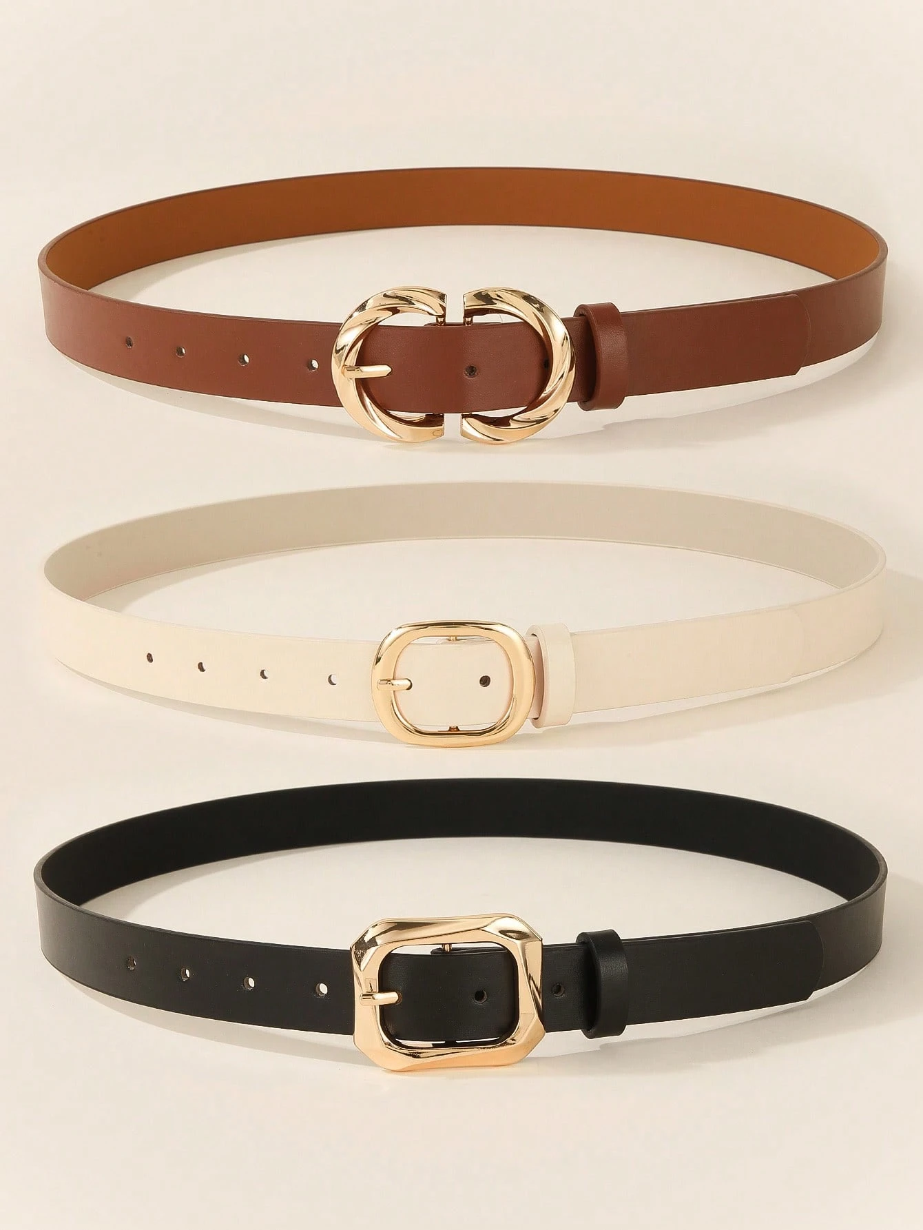 3pcs Gold Square Buckle Belt, Suitable For Dresses, T-Shirts, Casual Pants, Fashion Elegant Ladies Waist Belt Summer, School