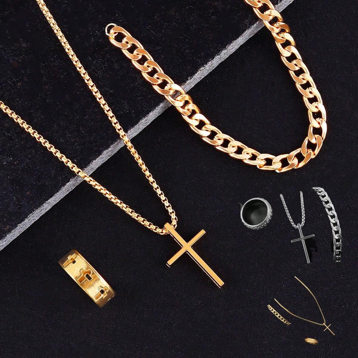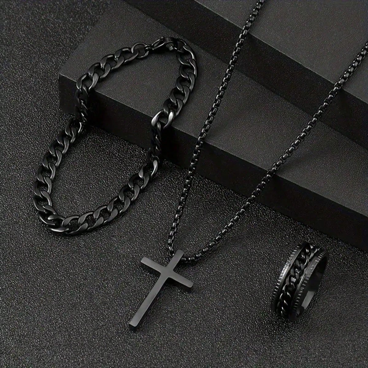3pcs/Set Cross Design Necklace, Ring, Bracelet Jewelry Set, Vintage Luxury Personalized Elegant Fashion Accessories, Best Gift For Men & Women, Daily, Party, Wedding, Birthday