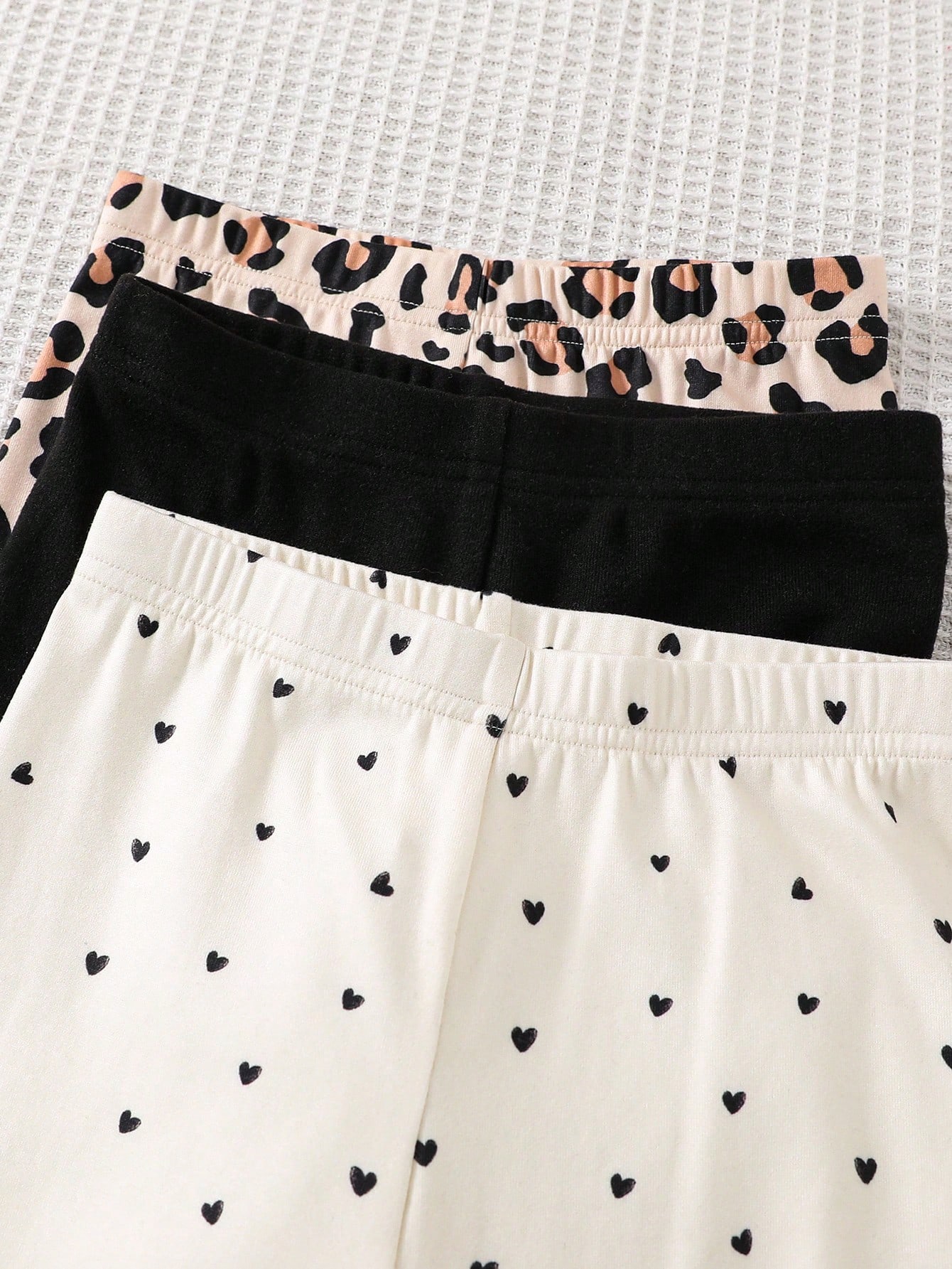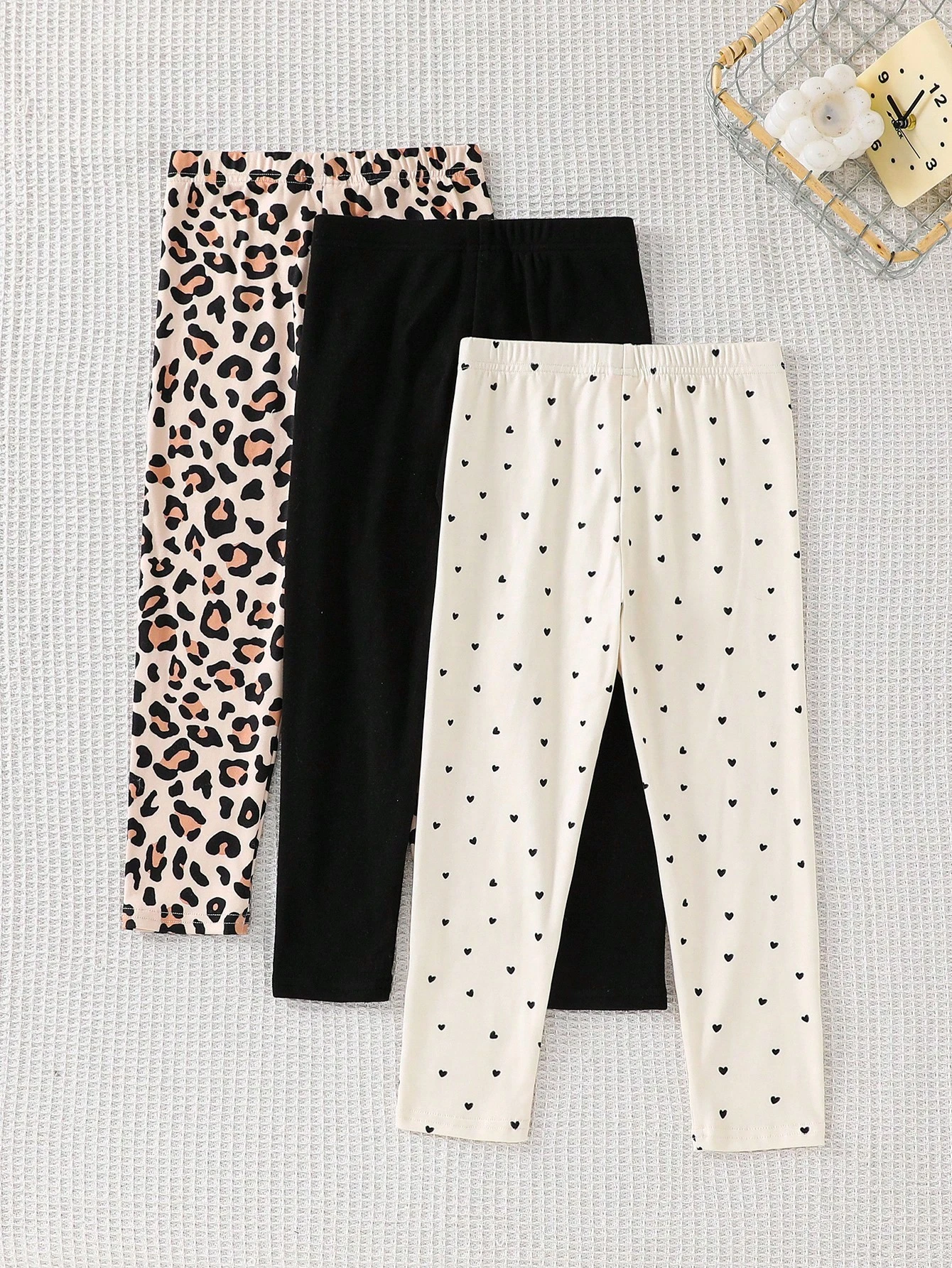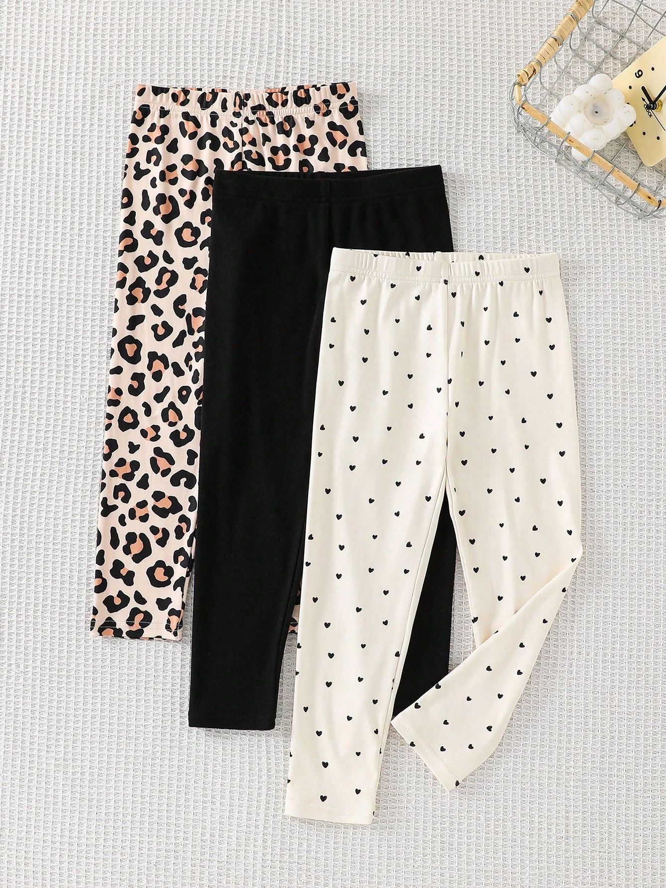 3pcs/Set Young Girl Knitted Heart & Leopard Print Base Layer Leggings Baby Girl Leggings Girls Leggings Winter Leggings For Girls Girls Tights Leopard Print Leggings Winter Leggings Girls Leopard Print Leggings Girls Heart Leggings Girls