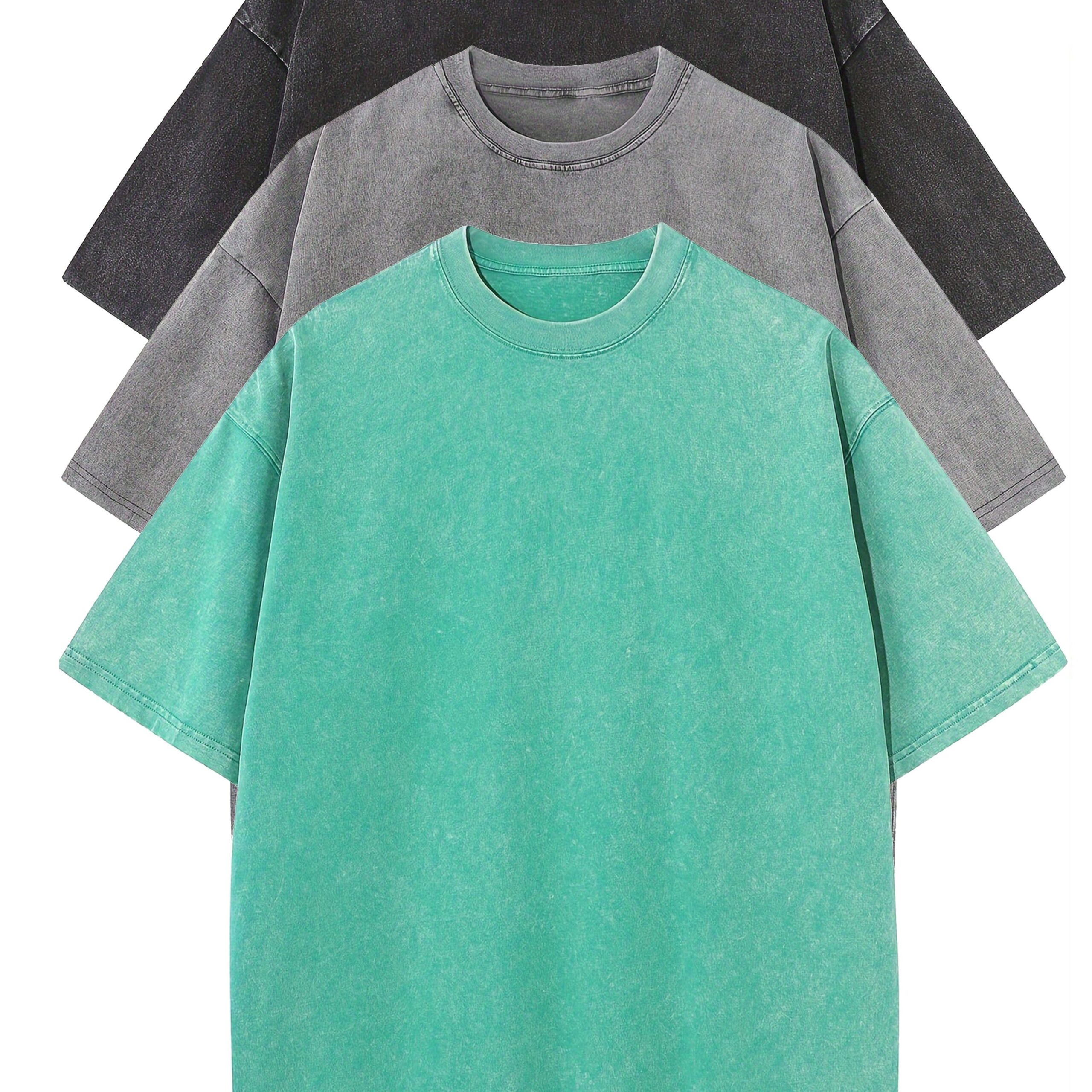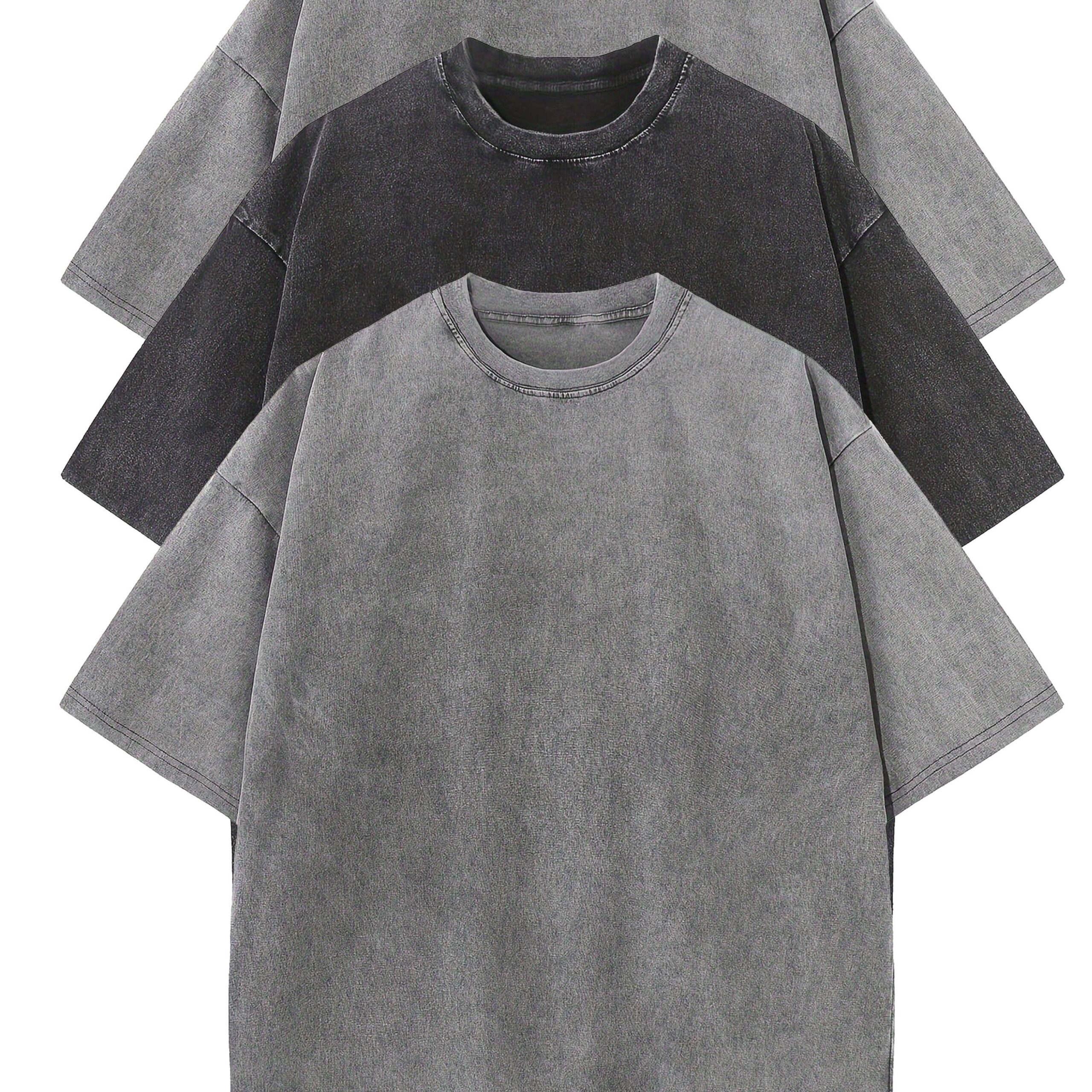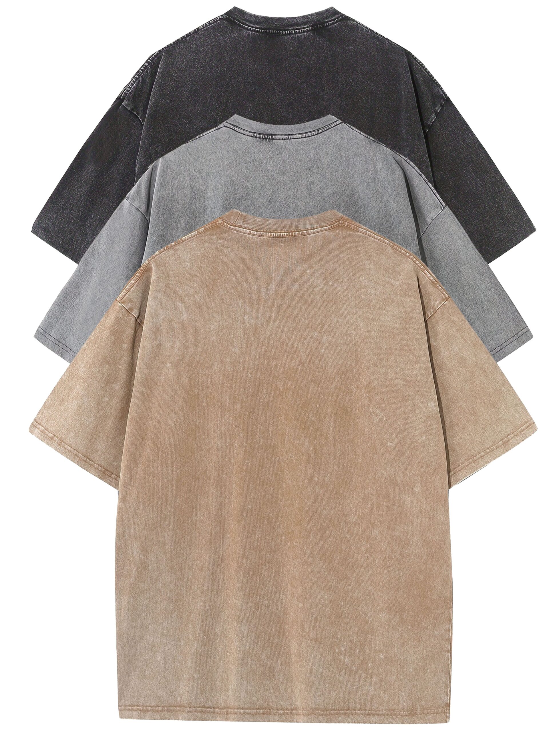 3pcs Washed Cotton Distressed 100% Pure Cotton 240g Round Neck T-Shirt Simple Style