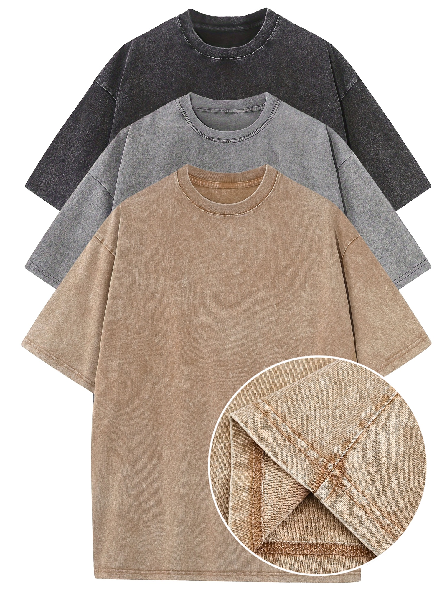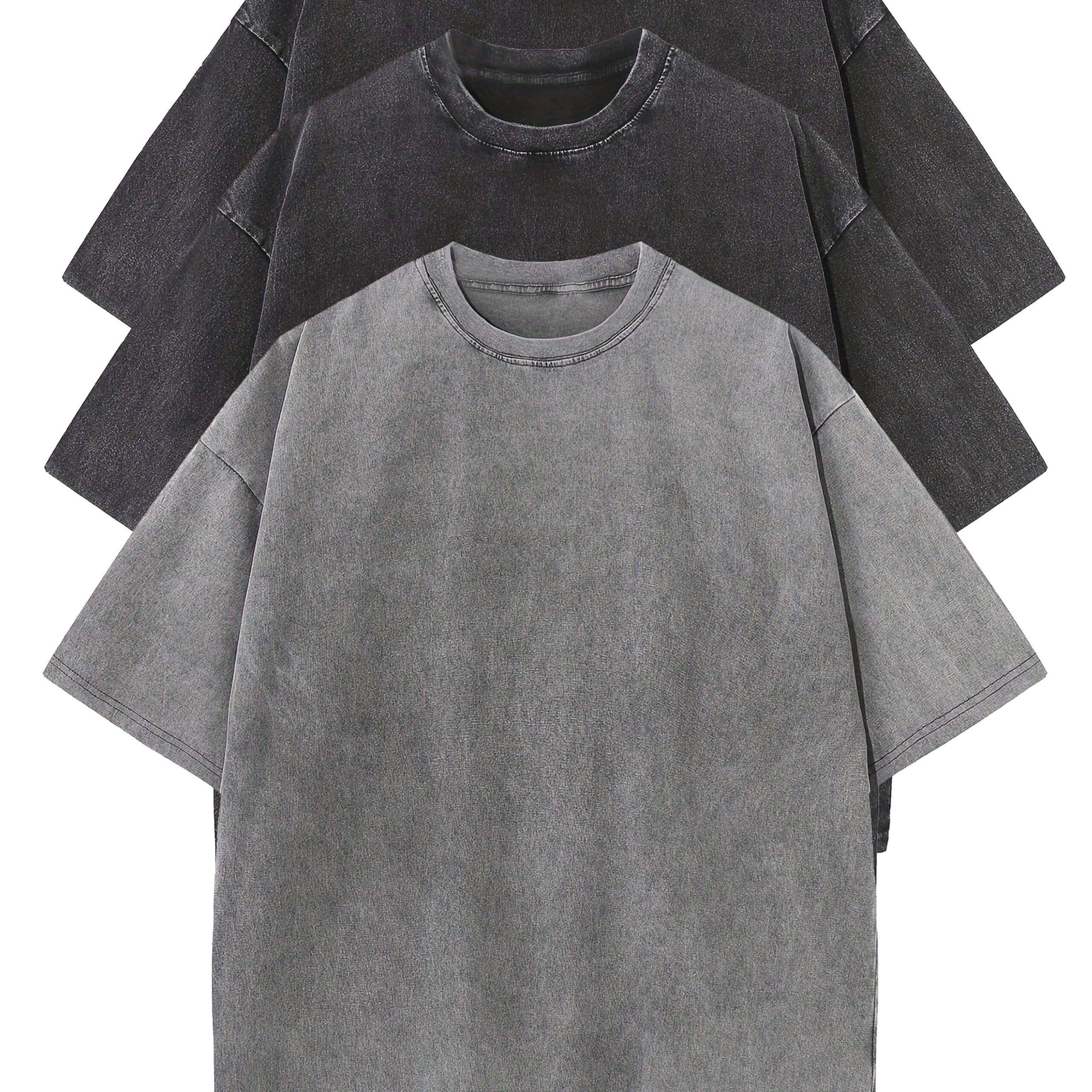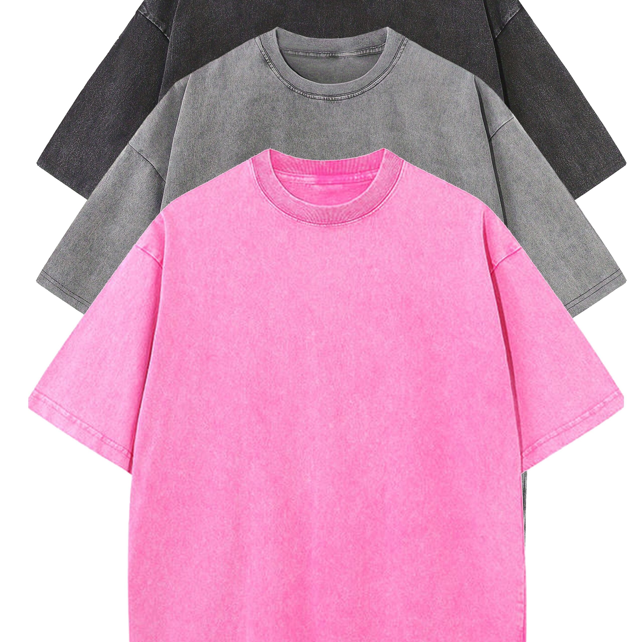 3pcs Washed Cotton Distressed 100% Pure Cotton 240g Round Neck T-Shirt Simple Style