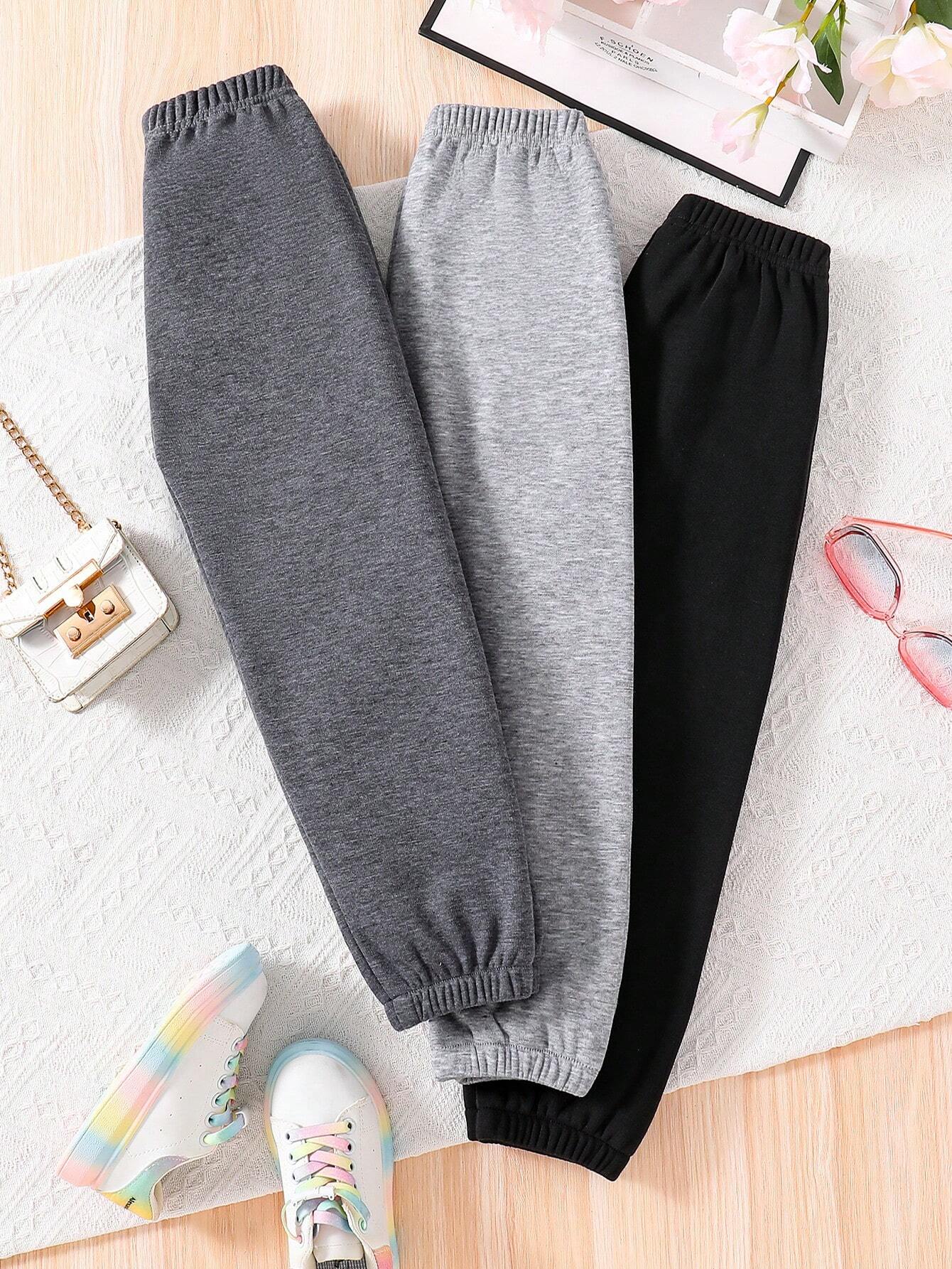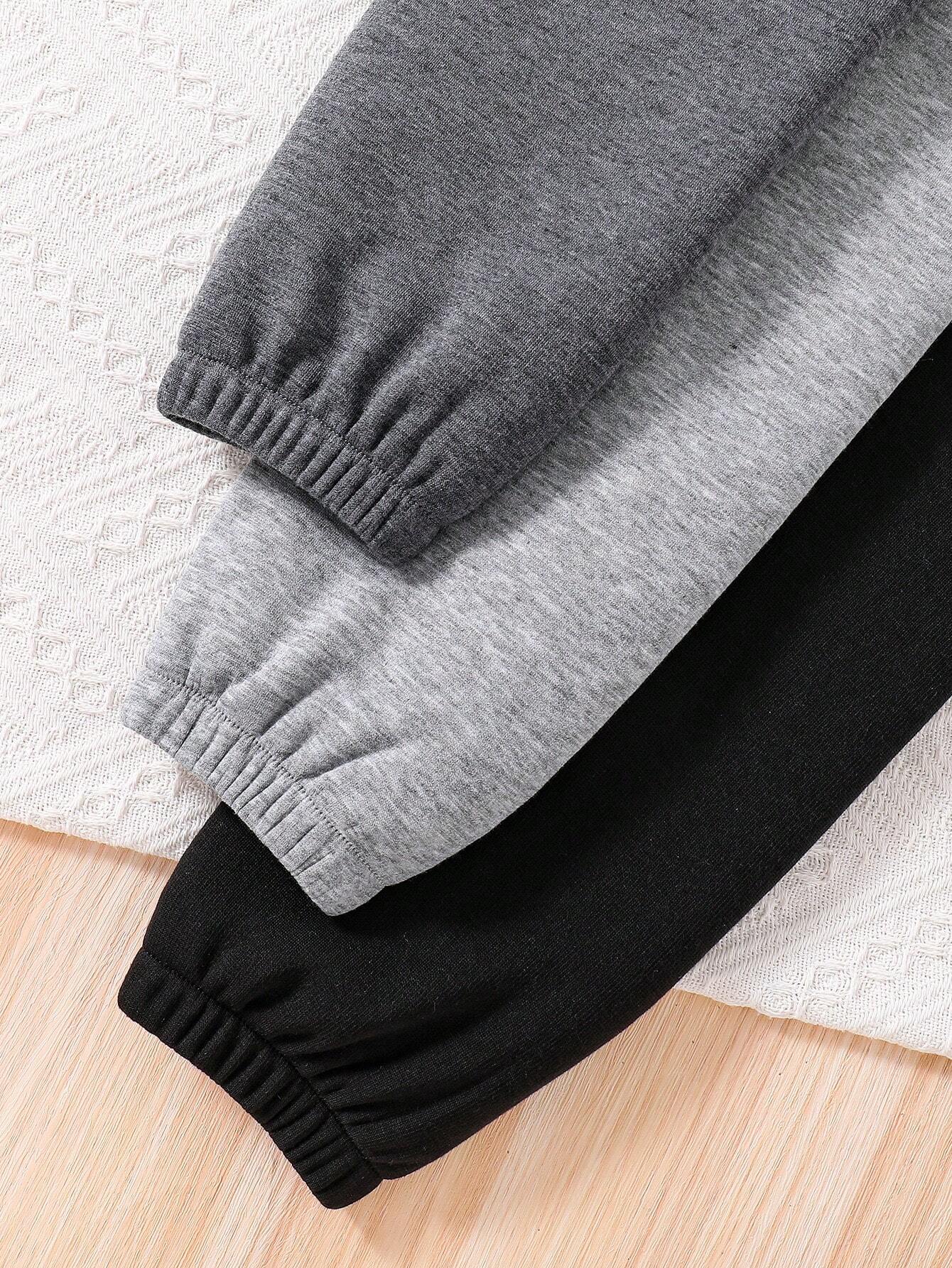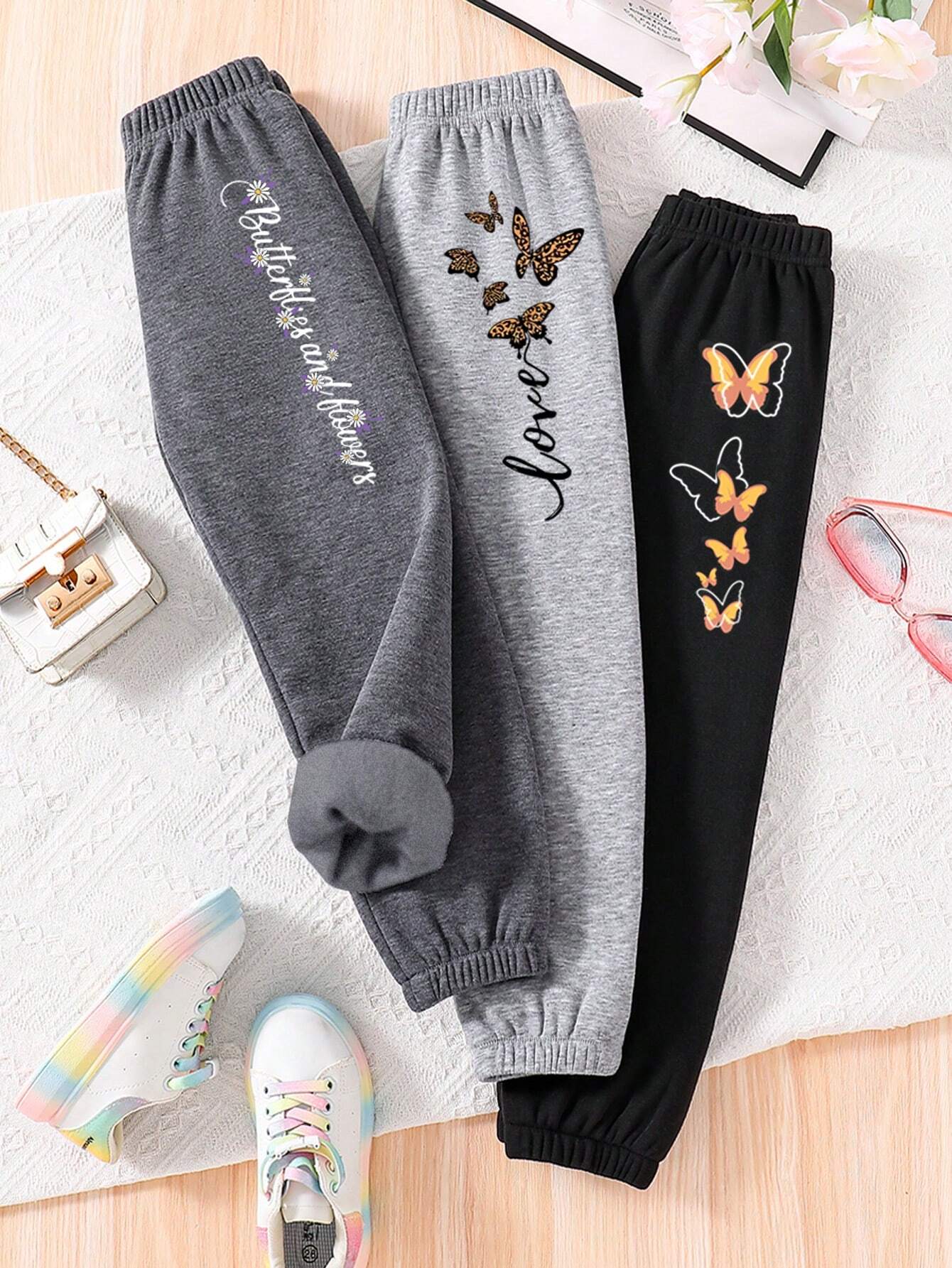 3pcs Young Girl Butterfly Print Thermal Lined Sports Pants Set