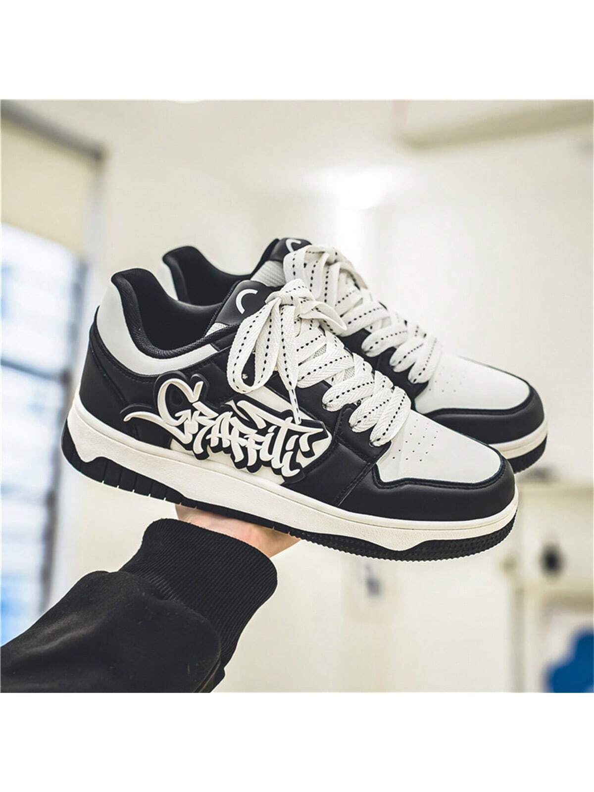Unisex Retro Skate Shoes – Non-Slip Thick Sole, Lace-Up Closure, Beige/White/Black/ – All-Season Streetwear Sneakers for Skateboarding, Gym, Everyday – Durable TPR Outsole – Men & Women, Skate Shoes, Gym Footwear, Streetstyle Footwear, Fabric Upper, Sport