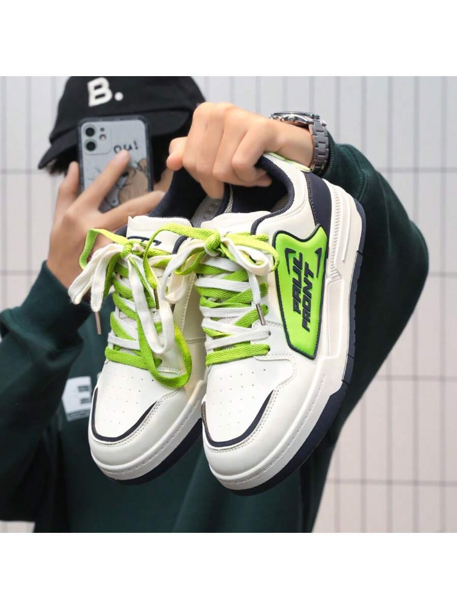 Four Seasons Men'S Fashion Thick Sole Sports Shoes, Preppy Style Casual Sports Shoes, Low Top Lace-Up, Anti-slip and Wear-resistant, Suitable for Daily Wear and Outdoor Activities