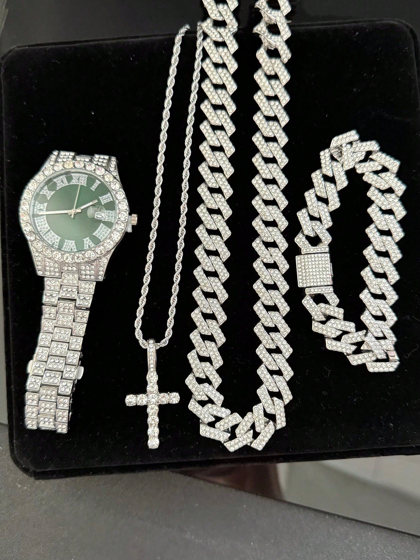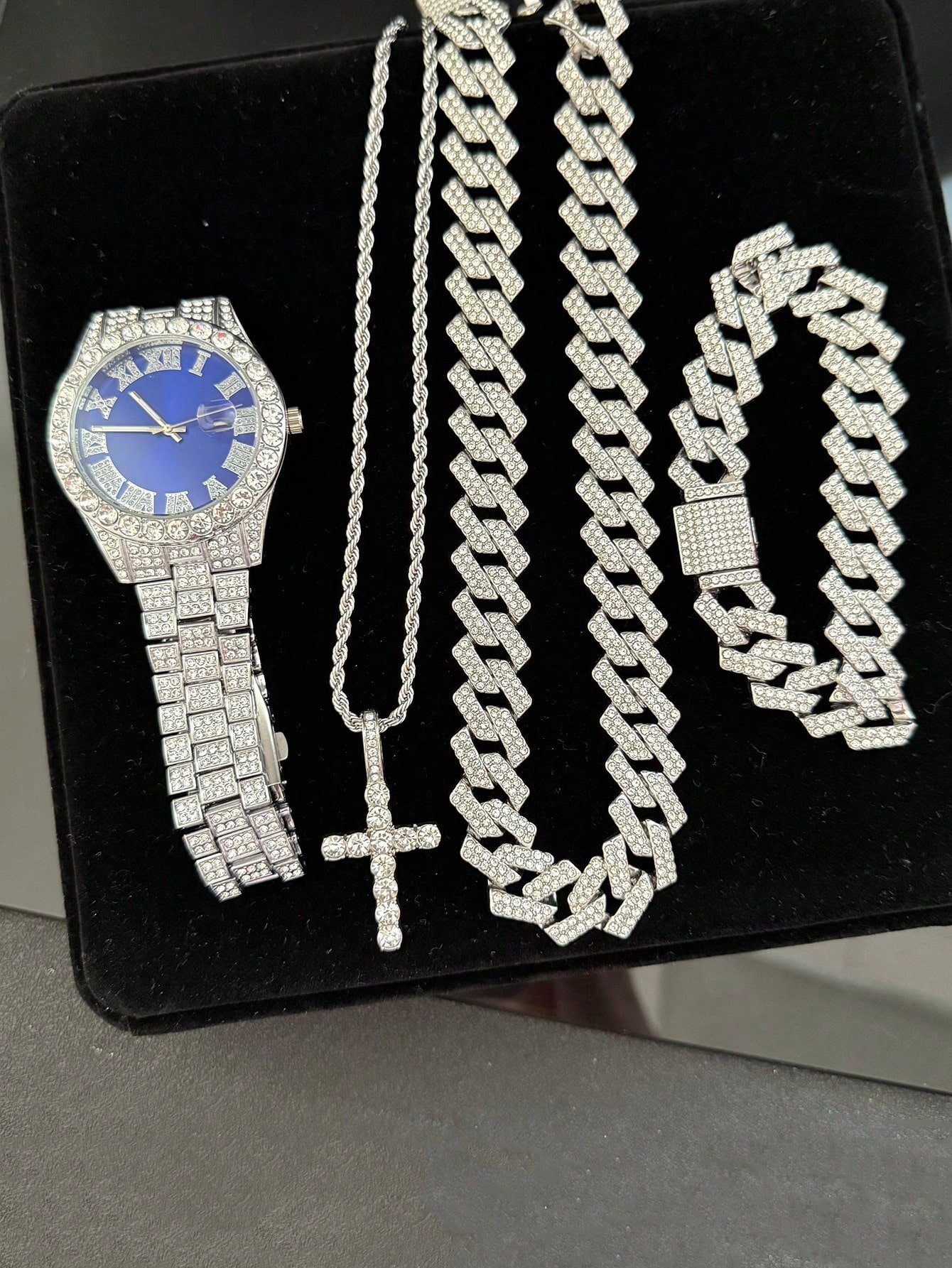 Be the first to review “4pcs/Set Cuban Chains Necklace Bracelet Set Men's Jewelry Quartz Watch Set With Cross Pendant Necklace Hip Hop Style Cool Jewelry Gift Without Gift Box” Cancel reply