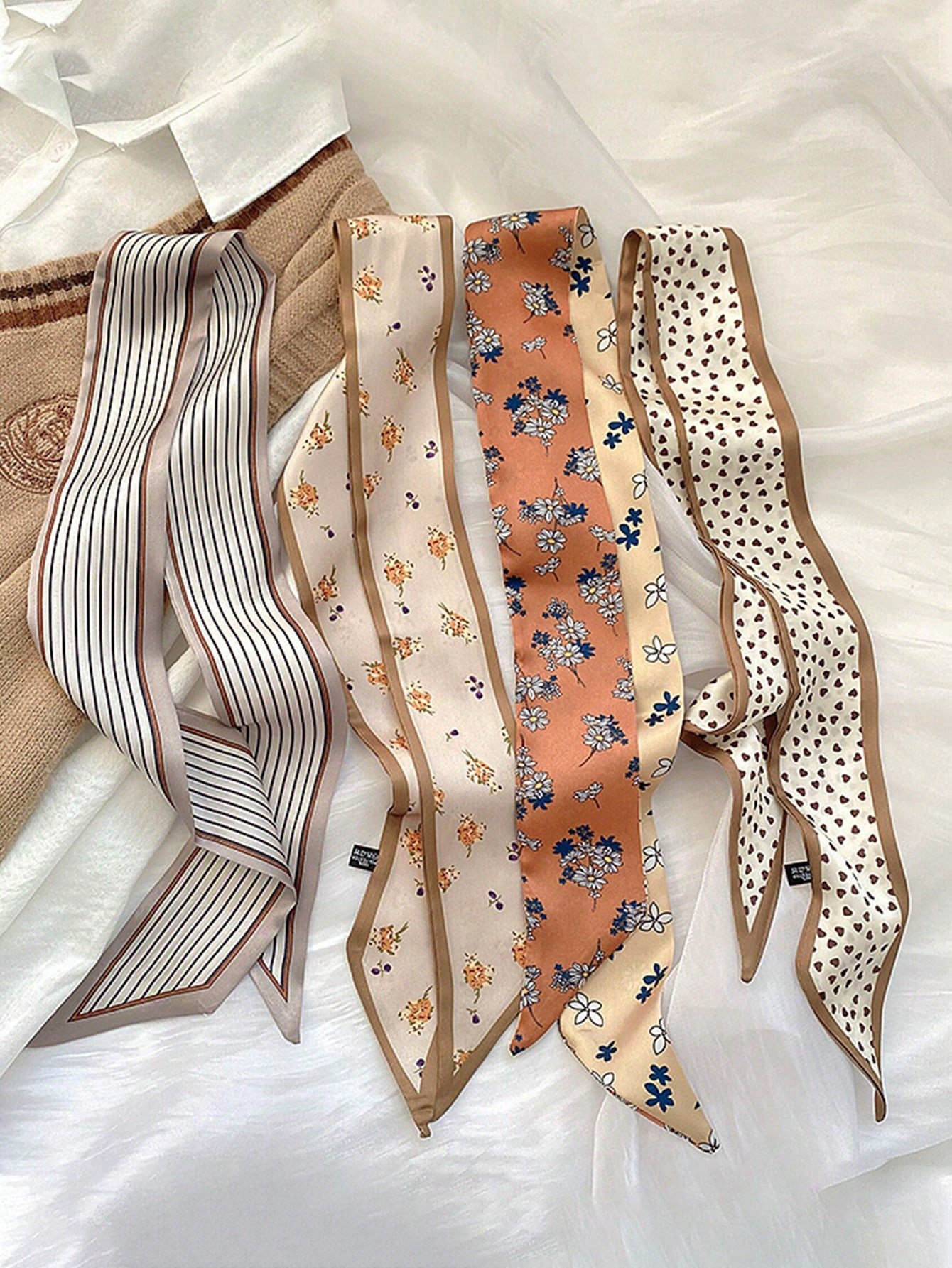 4pcs/Set Women's French Style Vintage Floral Striped Printed Scarf Hairband, For Casual, Elegant, Daily, And Dating Occasions, A Multi-Purpose Gift For Dress-Up Gym Valentine's Day Valentines Headband Turban Headband Sweatband