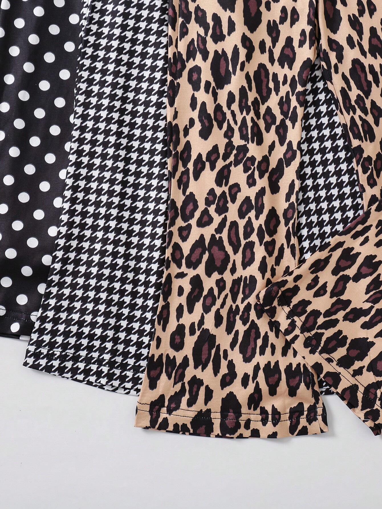 Be the first to review “4pcs/Set Young Girl Autumn/Winter Knitted Leopard Houndstooth Polka Dot Solid Black Flared Pants, Casual Leggings” Cancel reply