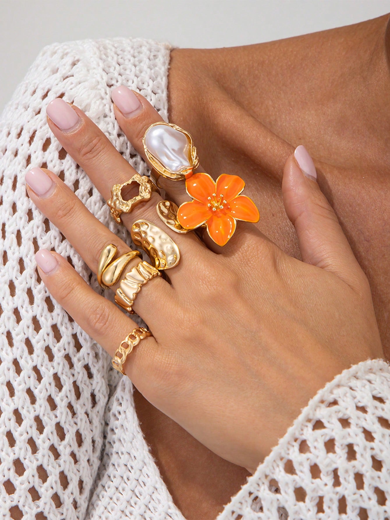 Be the first to review “5pc/Set Vintage Metal Flower & Gemstone Decor Ring Set, Elegant Baroque Faux Pearl Open Ring, Versatile For Daily Wear, Party, Festival Gift, Valentine's Day, Mother's Day” Cancel reply