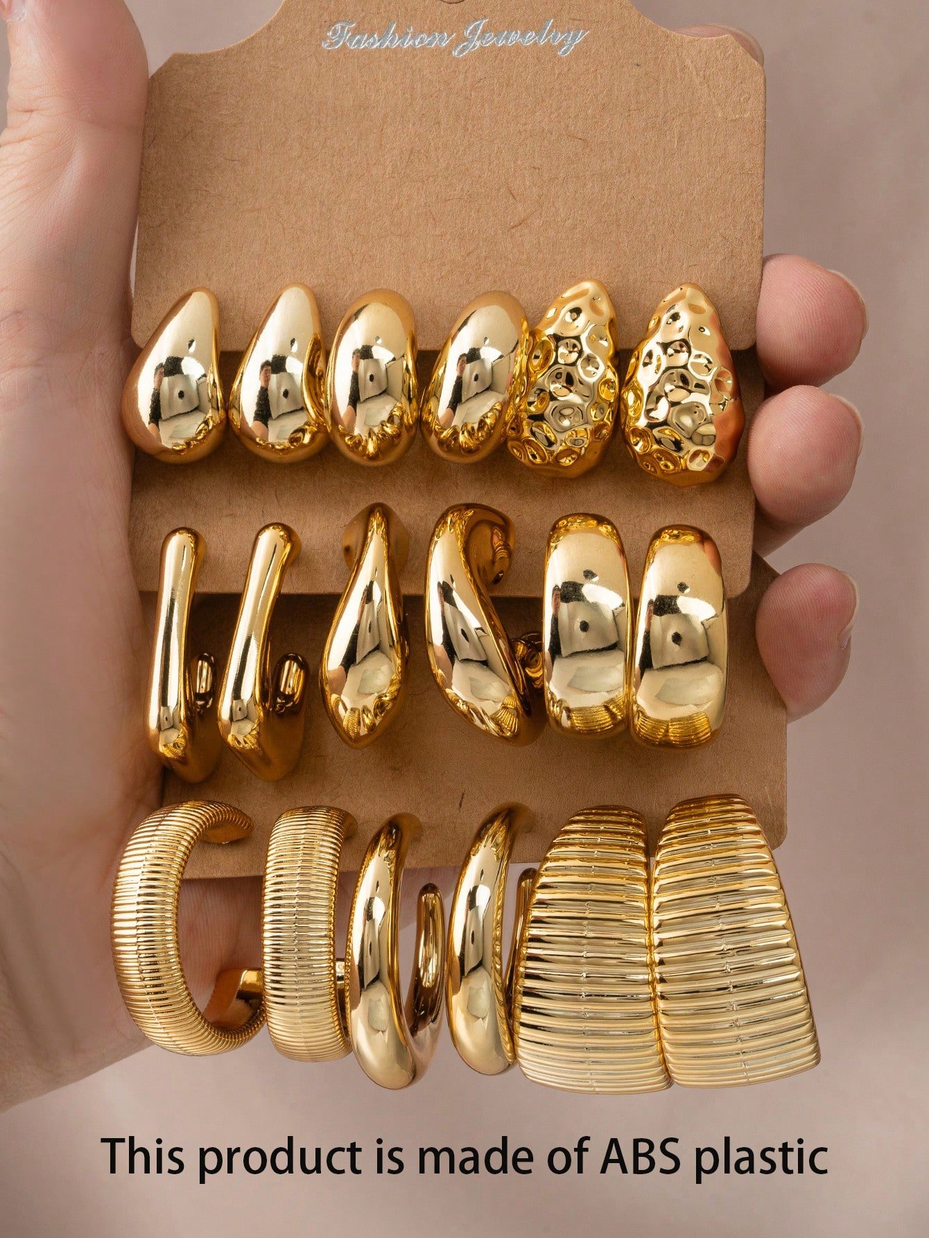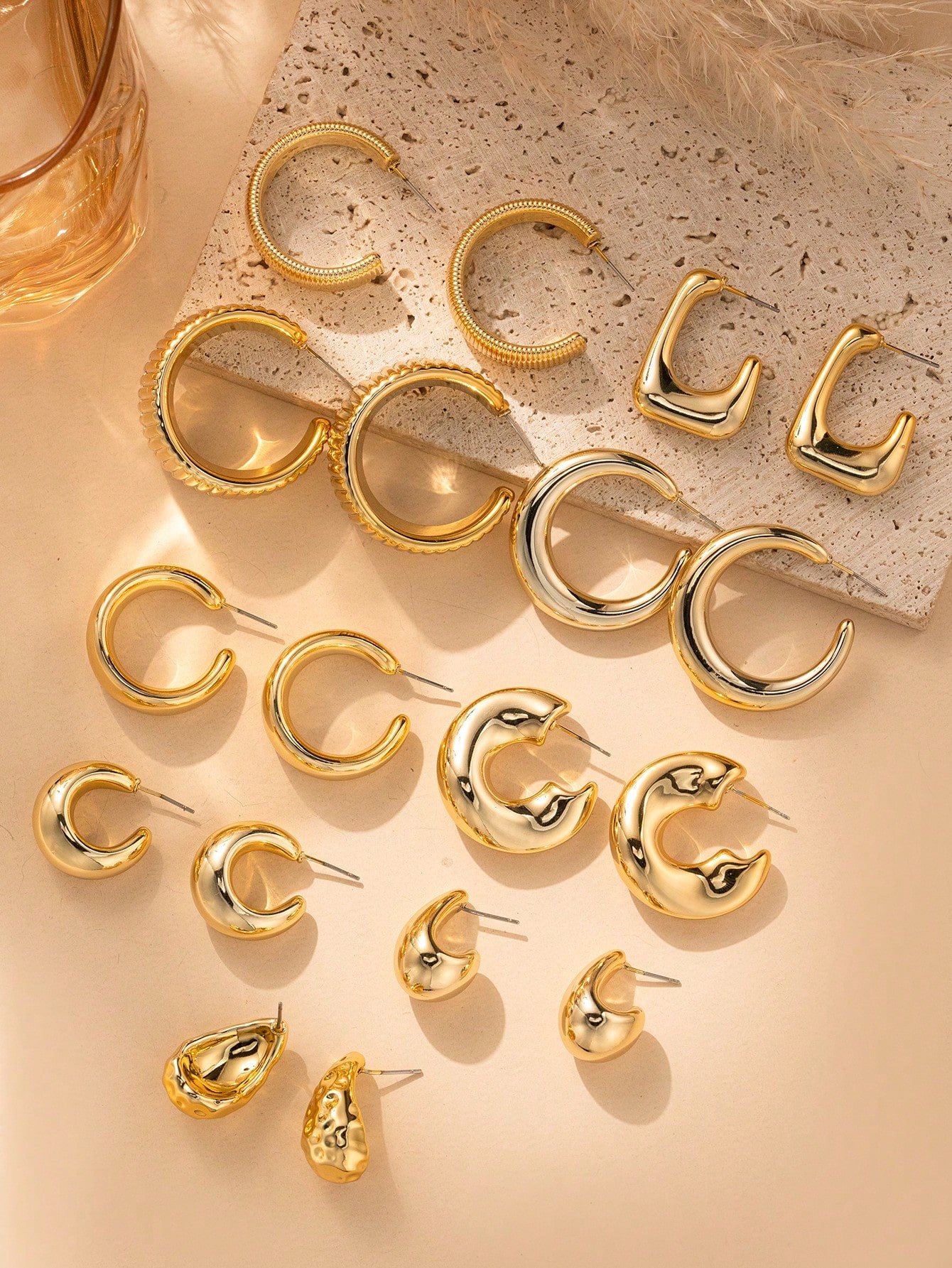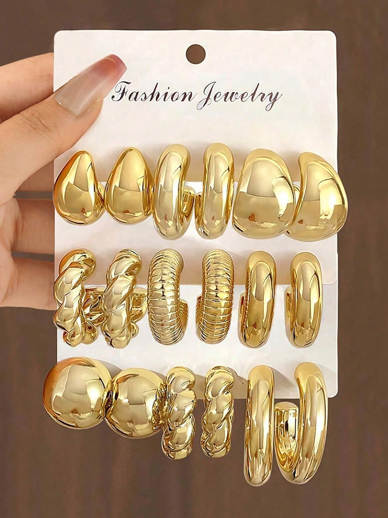 6PCS Large and Small Aperture, 6PCS Texture, 18pcs Geometric Earrings, 6PCS Gold Water Drops |