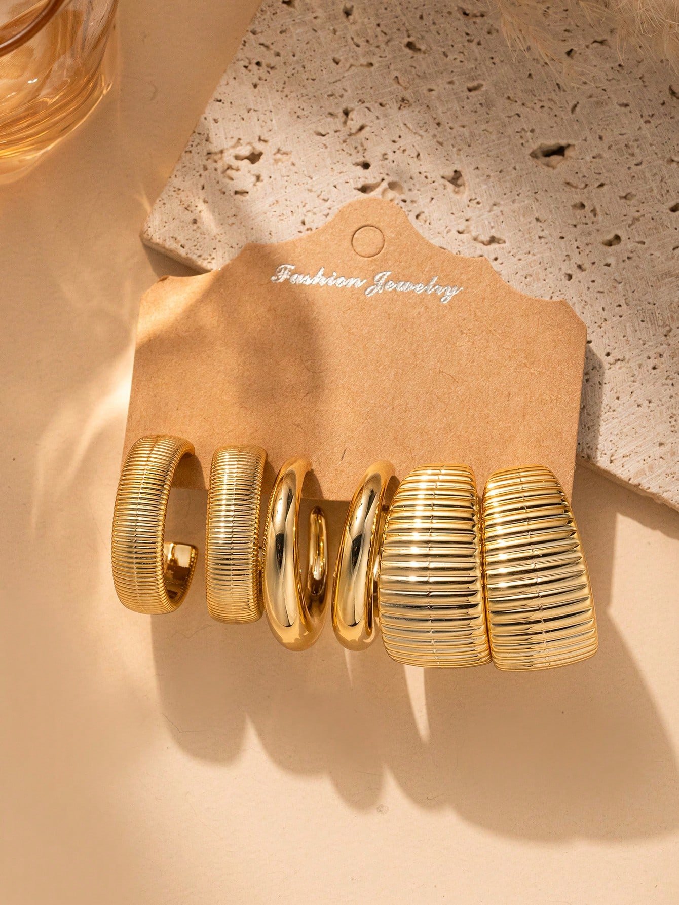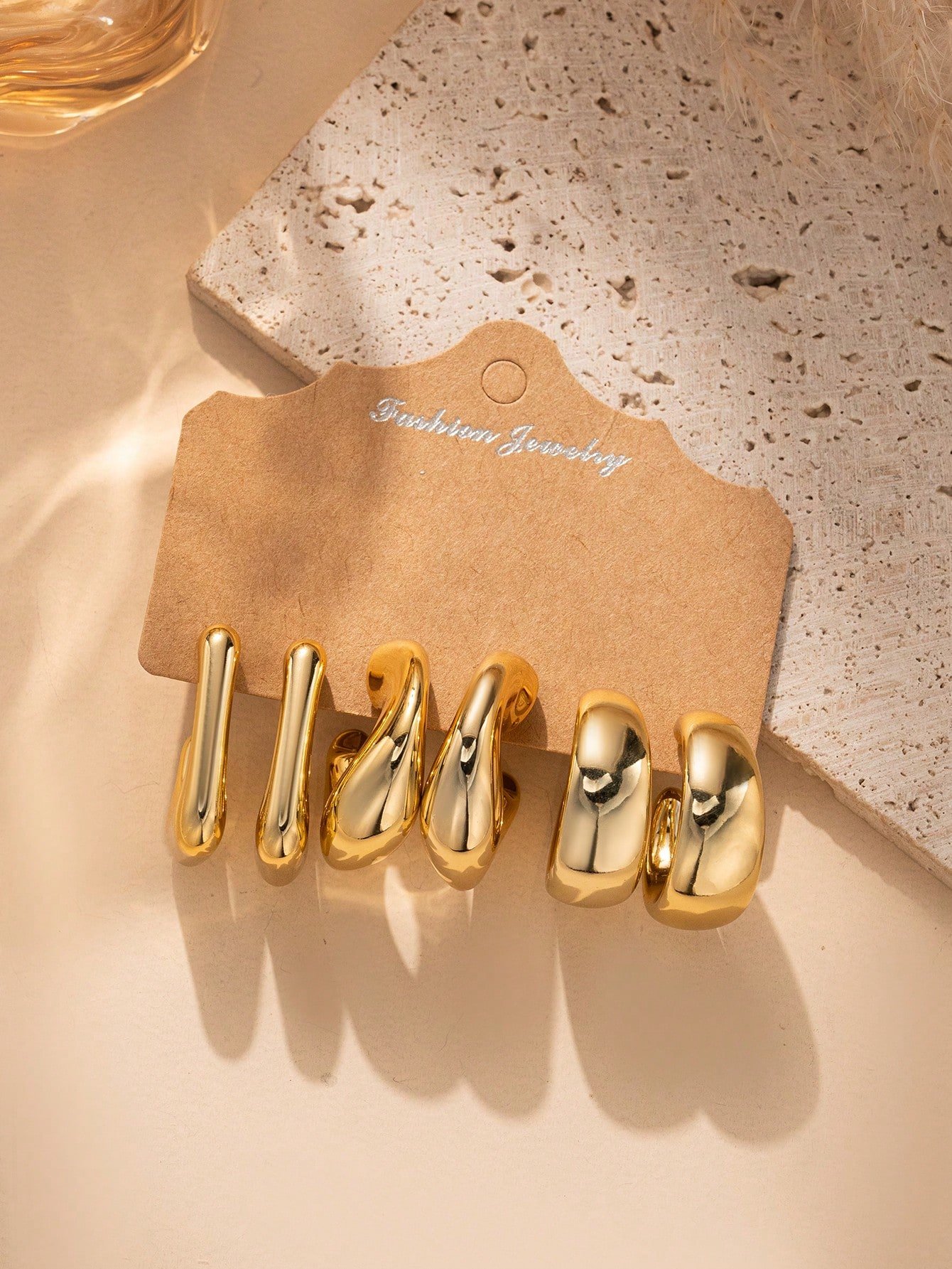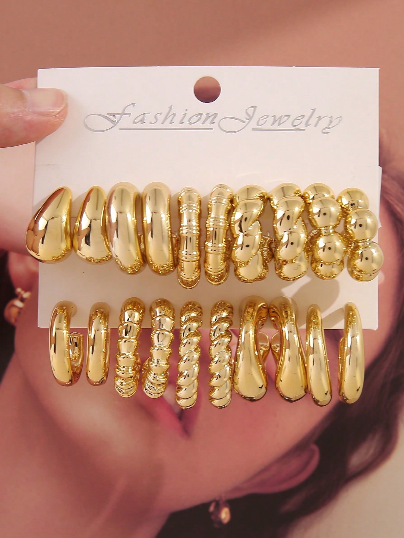 6PCS Large and Small Aperture, 6PCS Texture, 18pcs Geometric Earrings, 6PCS Gold Water Drops |
