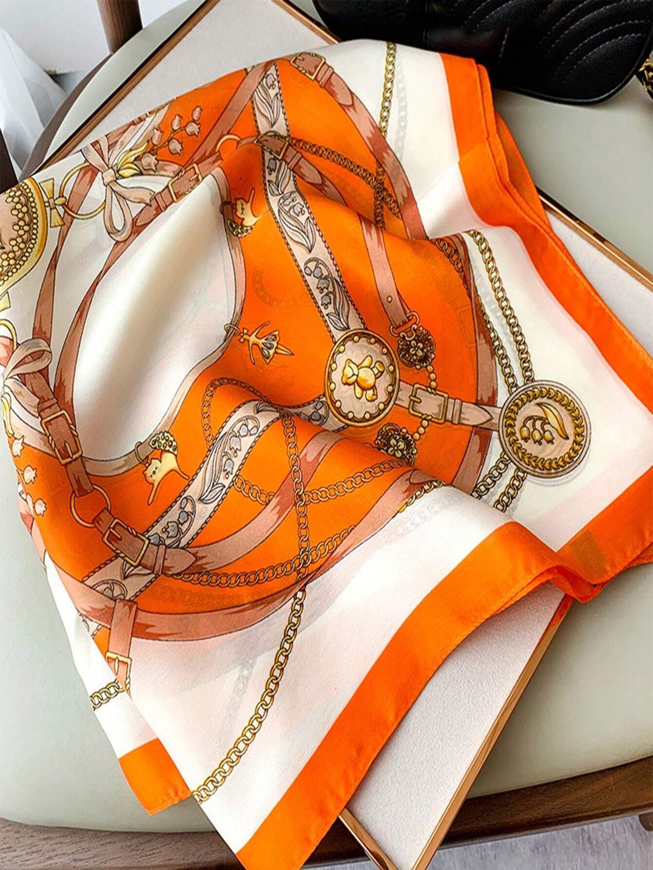 70cm Women's Silk-Like Scarf, Print Square Scarf, Neck Scarf, Shawl, Sunscreen Headscarf Bandana,Hair Band,Head Band Ideal For Dressing Up Your Look