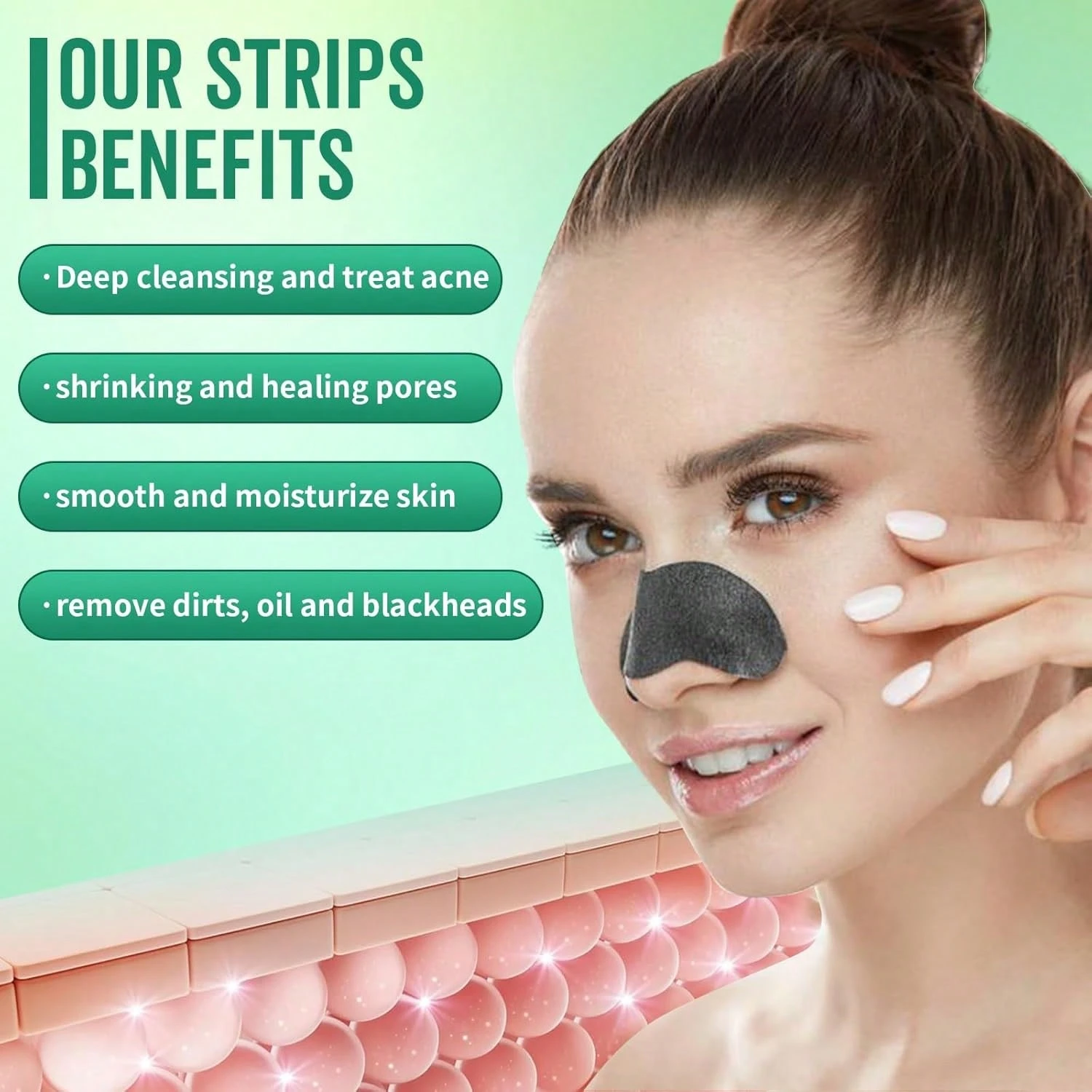 70Pcs Nose Pore Strips For Blackhead Removal Bamboo Charcoal Face Pore Strips Deep Cleansing Charcoal Strips Effective Control Of Oily Skin Clogged Pores Practical For Unisex
