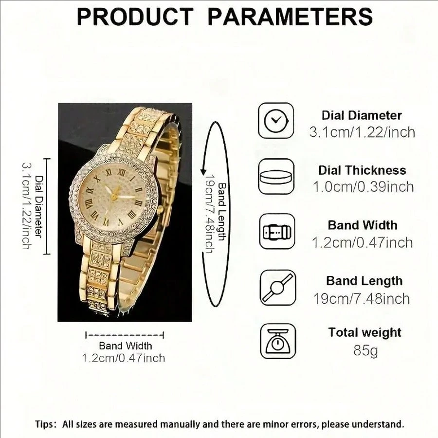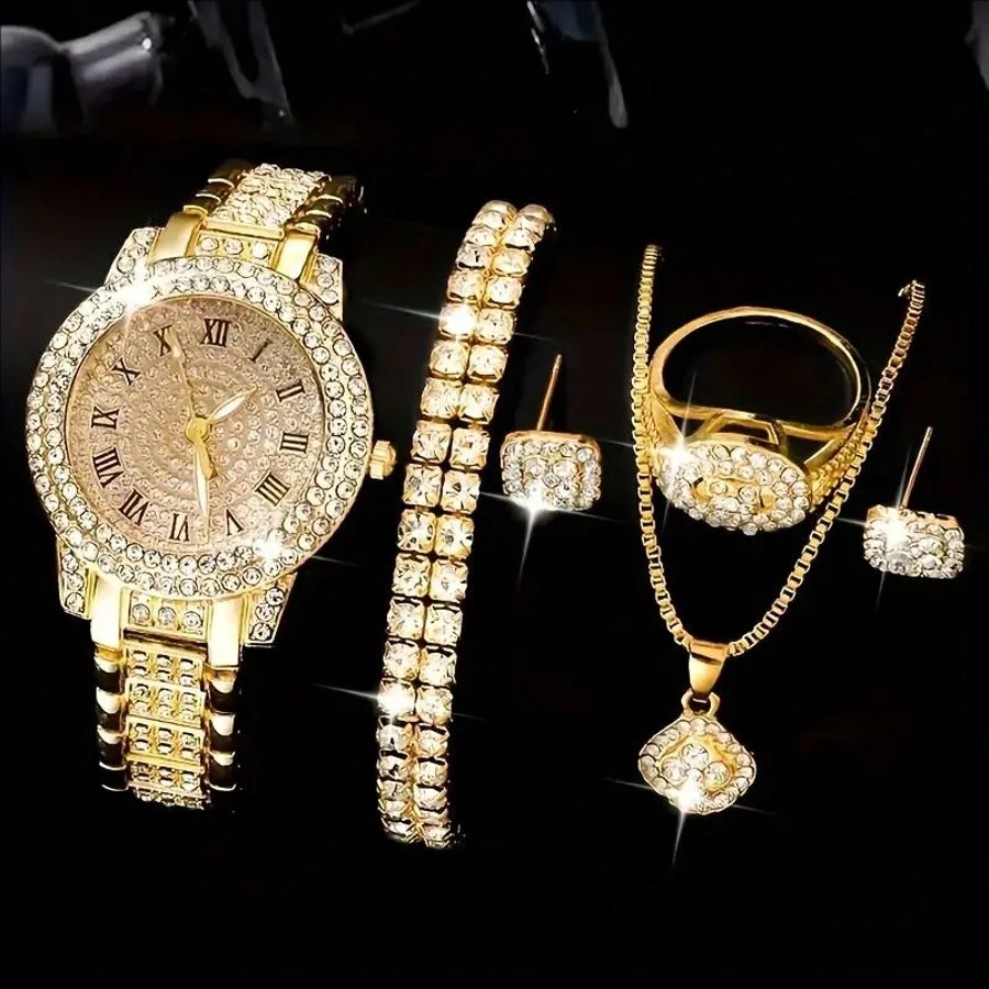 Be the first to review “7pcs Elegant Quartz Watch And Jewelry Set, Fashion Women's Round Watch, Rhinestone Necklace, Earrings, Ring, Bracelet Set No Box” Cancel reply