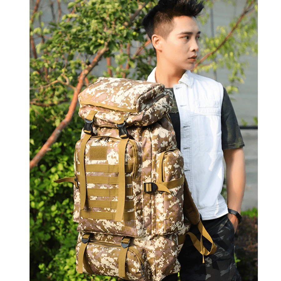 80L Waterproof Camouflage Hiking Backpack, Outdoor Sports Trekking Rucksack,Large Capacity Camouflage Color, Suitable For Men And Women Outdoor Activities, Hiking, Traveling