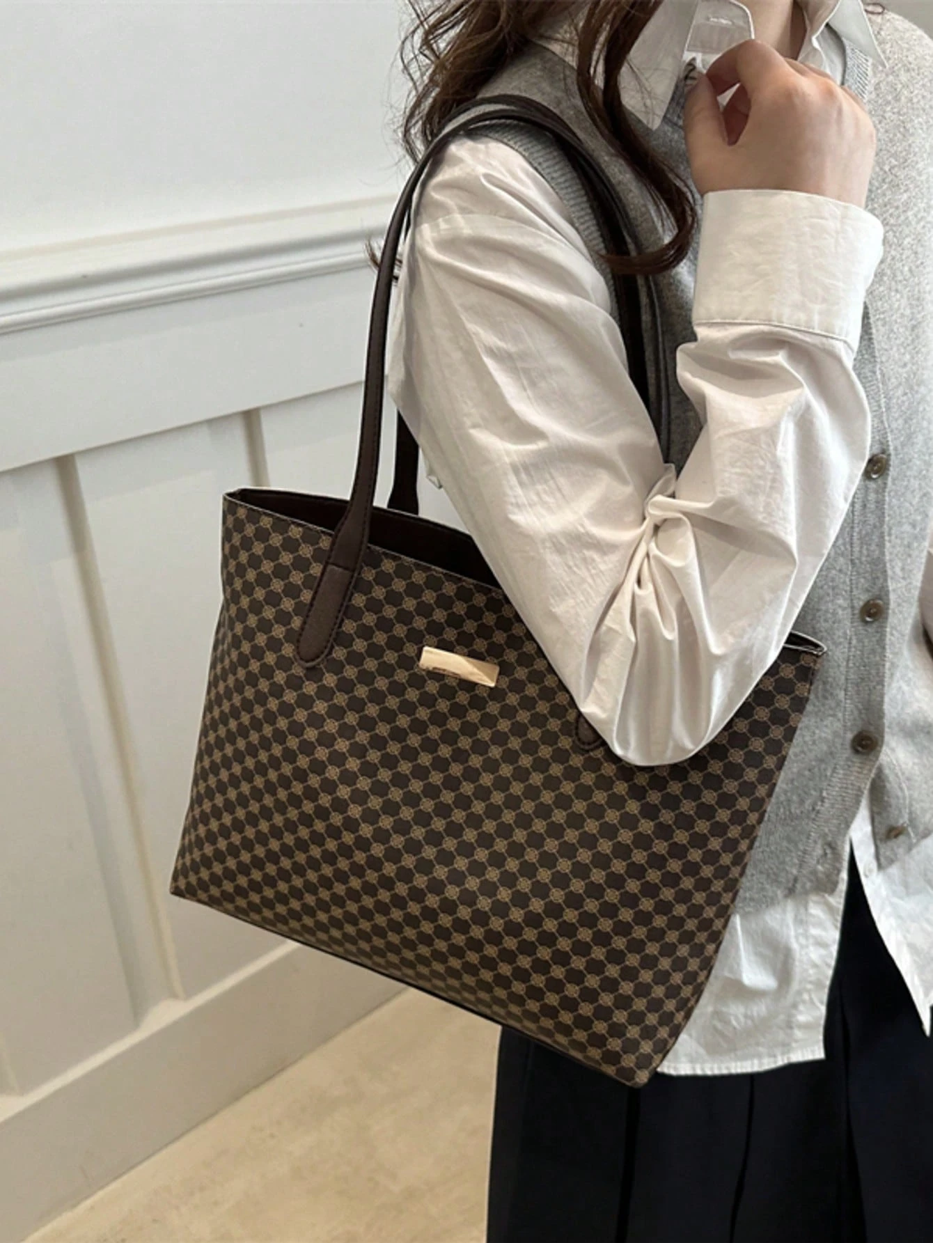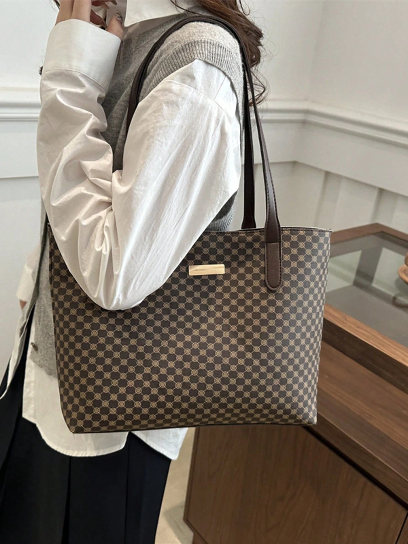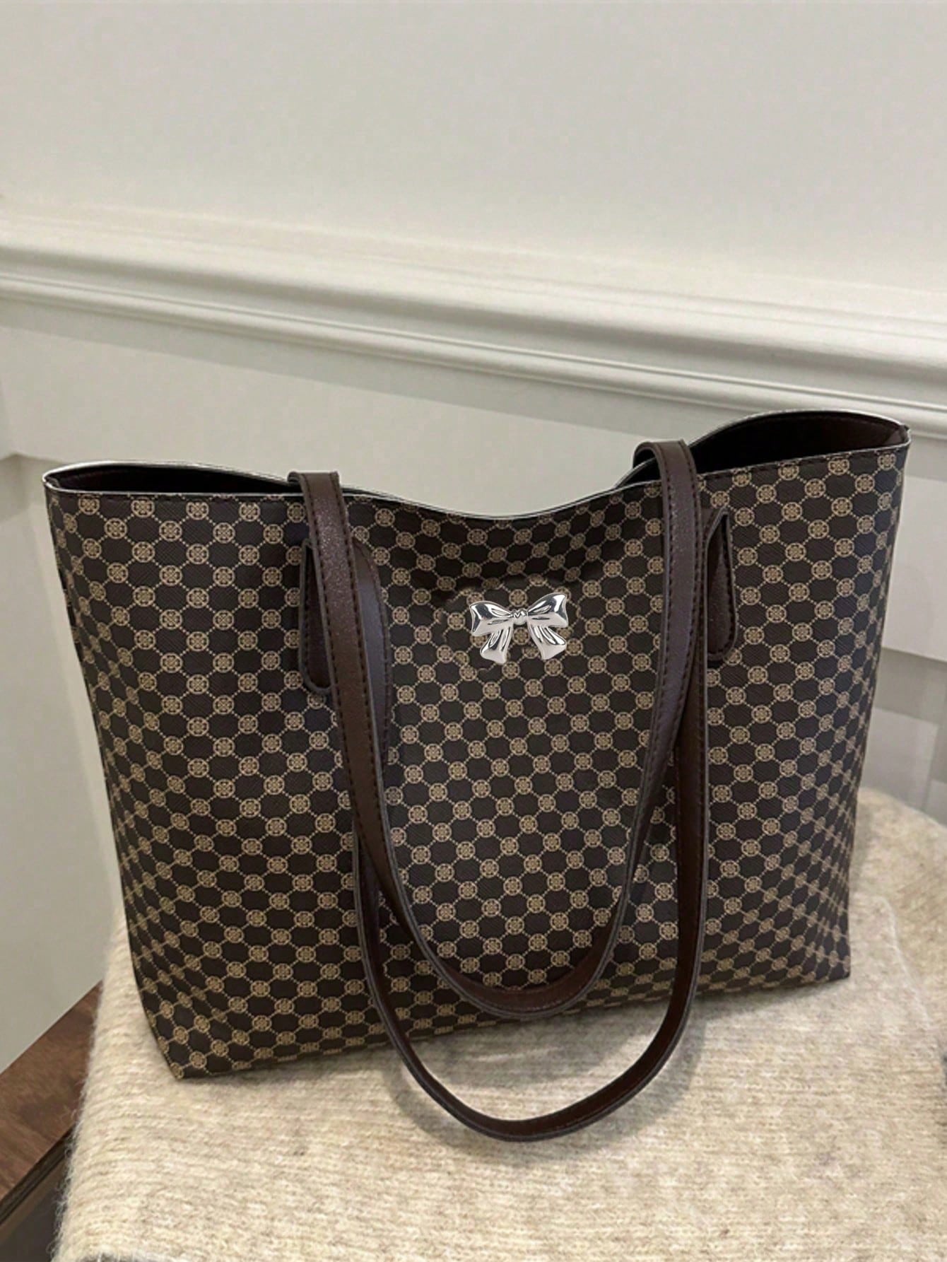 All Over Print Shoulder Tote Bag, Mothers Day Gift For Mom Retro Letter Print Tote Bag Large Capacity Shoulder Bag Perfect Underarm Bag For Commuting, New Fashionable Big Bags For Women