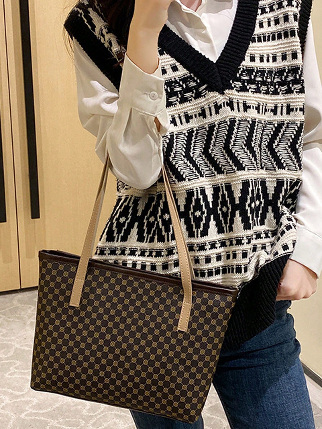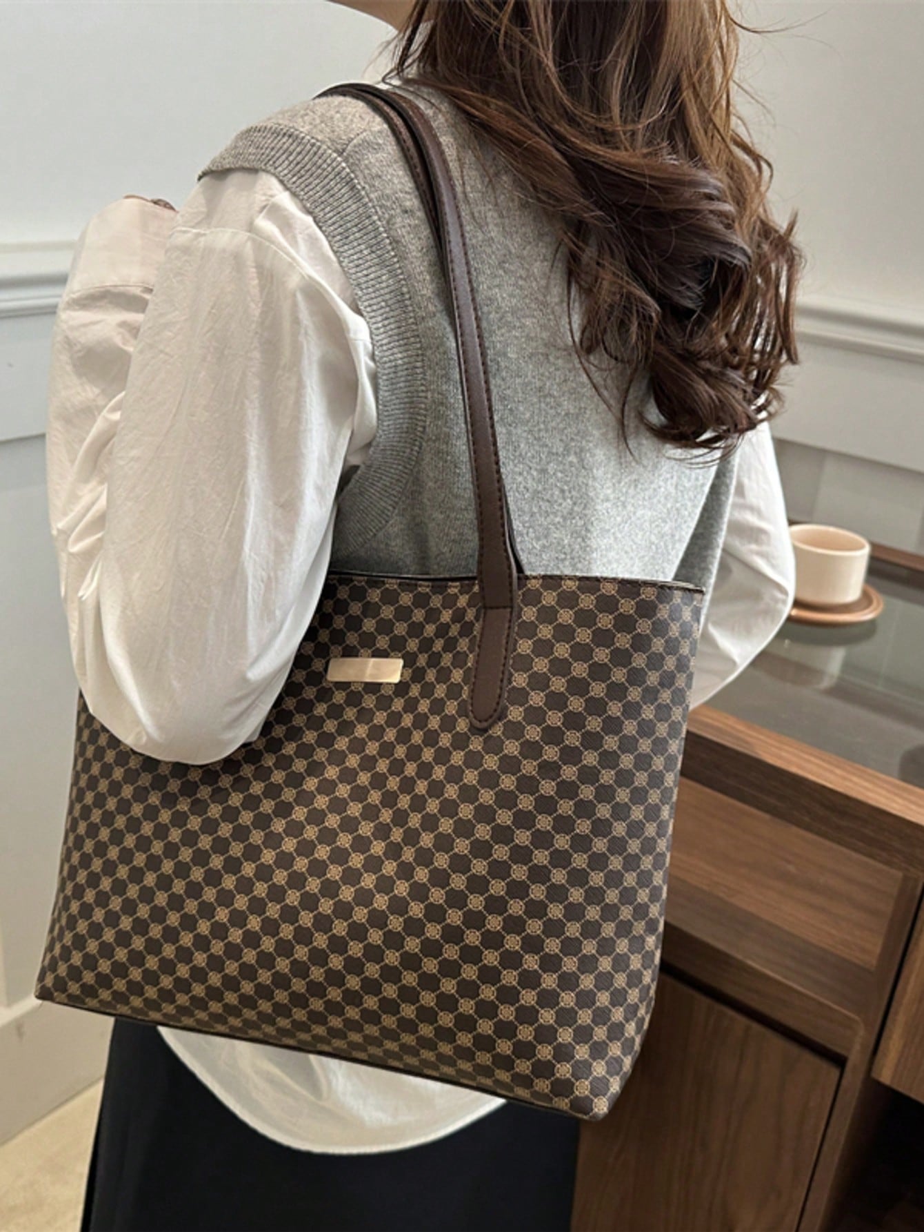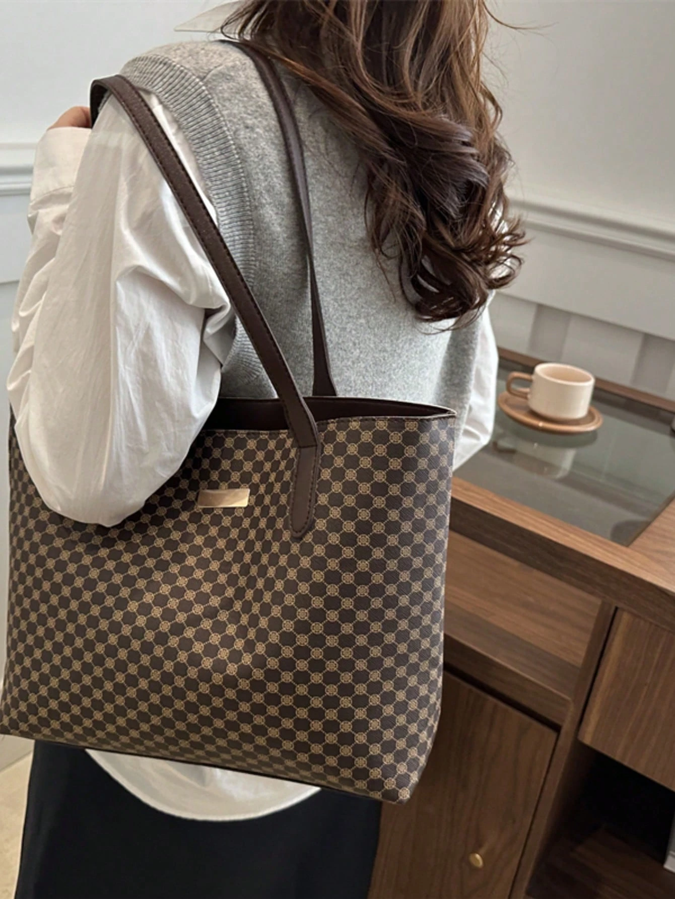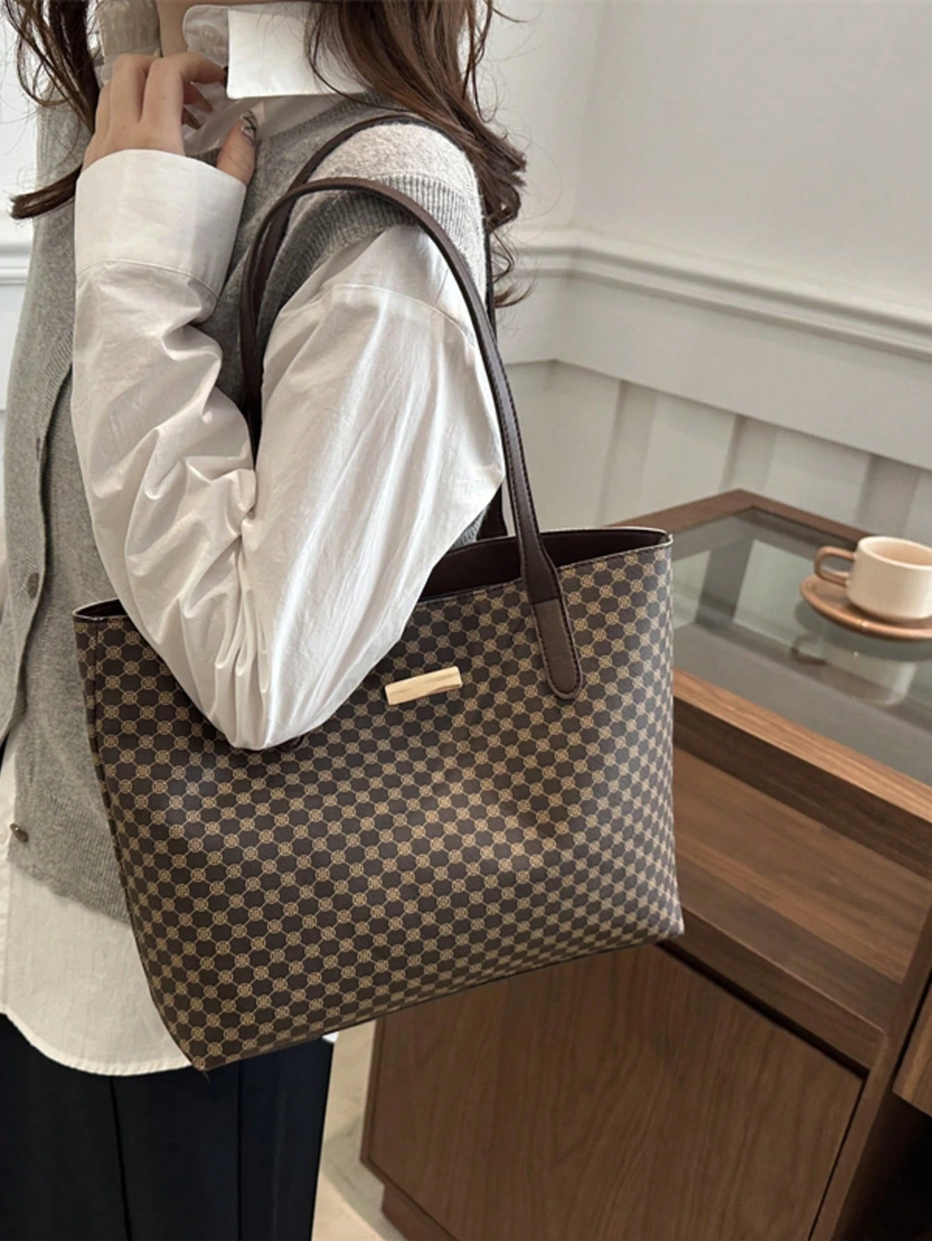 All Over Print Shoulder Tote Bag, Mothers Day Gift For Mom Retro Letter Print Tote Bag Large Capacity Shoulder Bag Perfect Underarm Bag For Commuting, New Fashionable Big Bags For Women