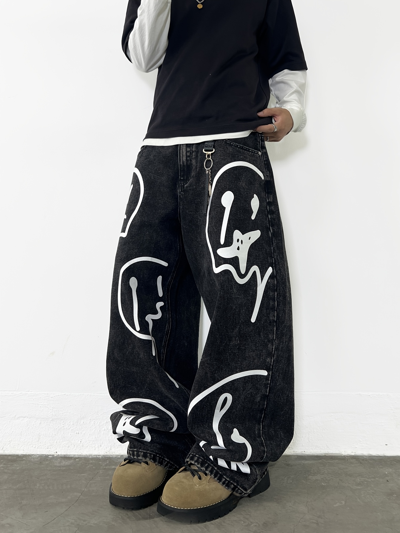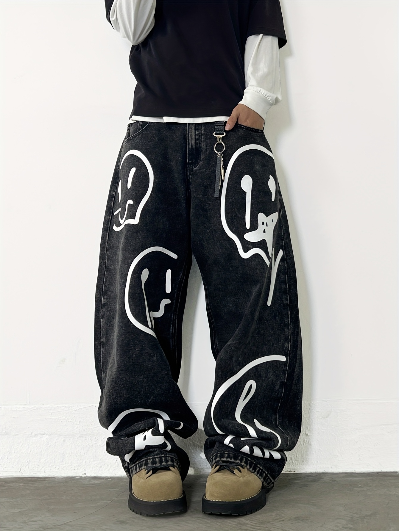 Be the first to review “American High Street Print Loose Jeans, Distressed Washed Fashionable Wide-Leg Pants, Unisex Without Belt/Without Accessories” Cancel reply