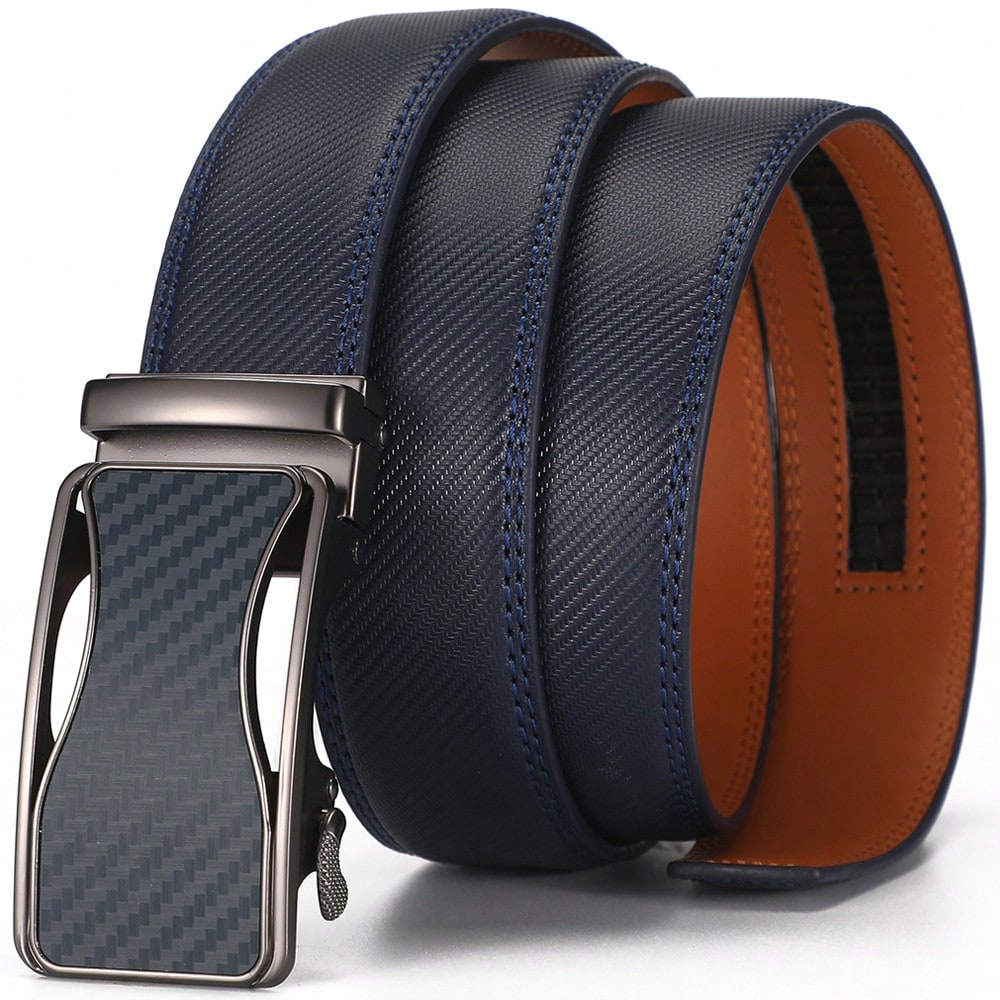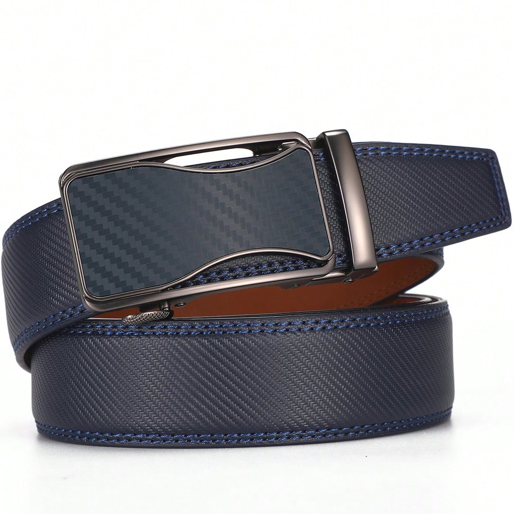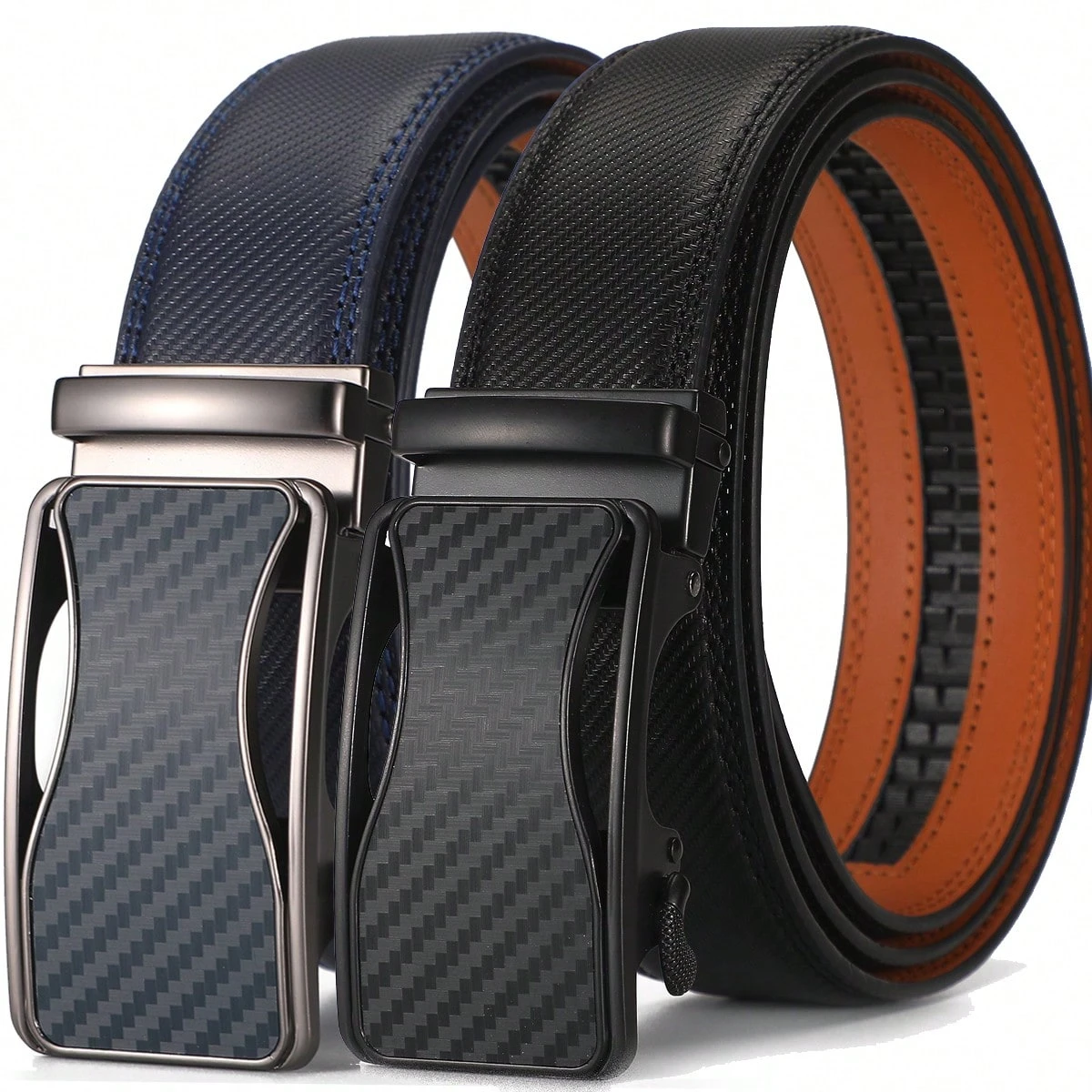 Automatic Buckle Ratchet Belt For Men Black/Blue Carbon Fiber Pattern Belts Male Leather Men Waist Strap Formal Luxury Brands High Quality 3.5cm