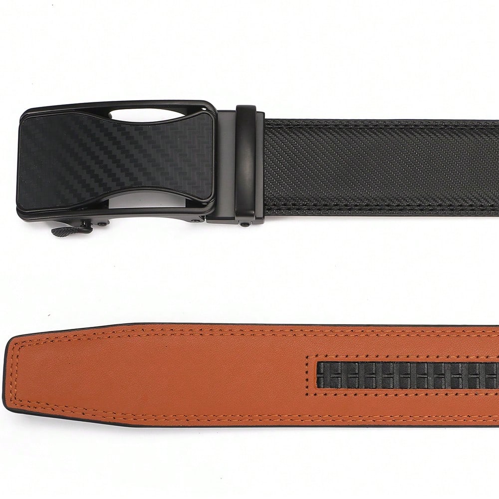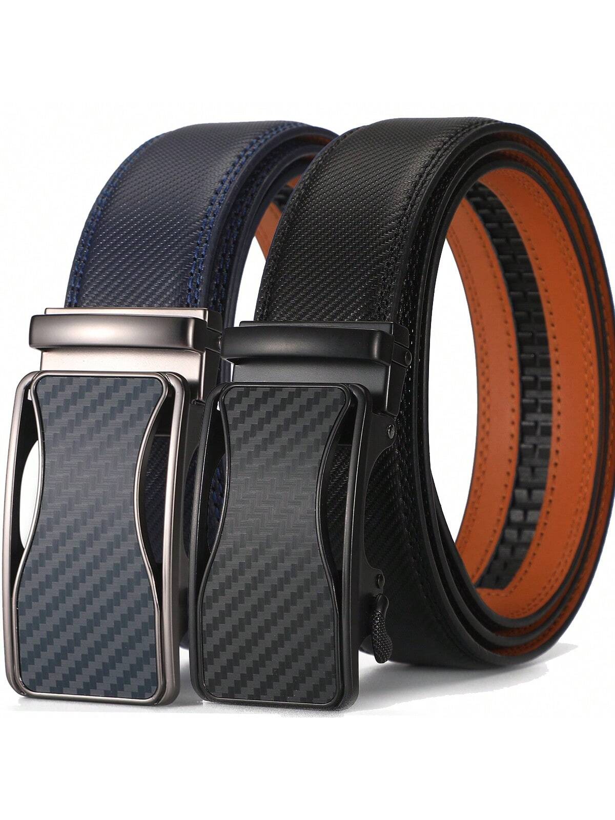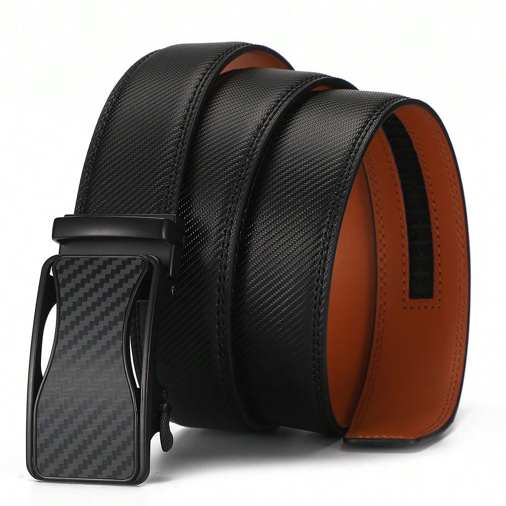 Automatic Buckle Ratchet Belt For Men Black/Blue Carbon Fiber Pattern Belts Male Leather Men Waist Strap Formal Luxury Brands High Quality 3.5cm