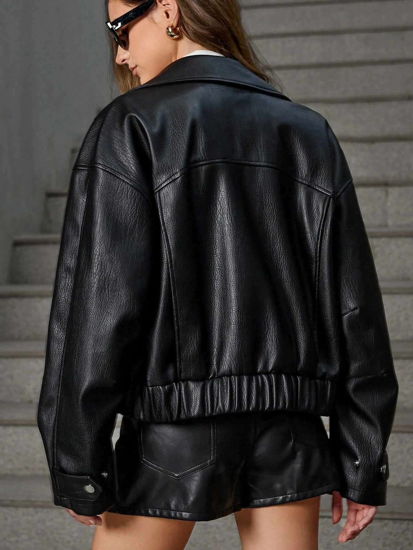 Aveloria Affinna Retro Amerikaanse stijl korte leren jas voor dames, losvallende motorjas met high-end gevoel