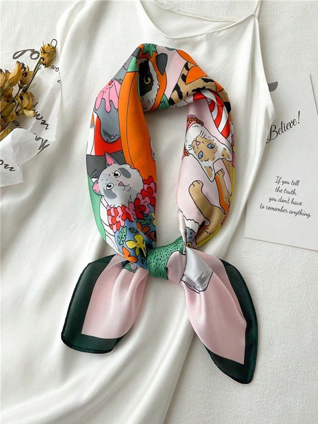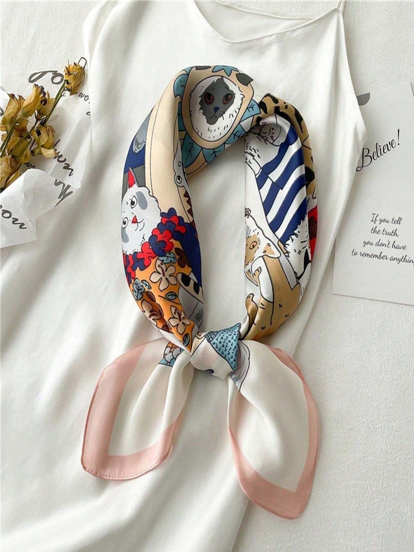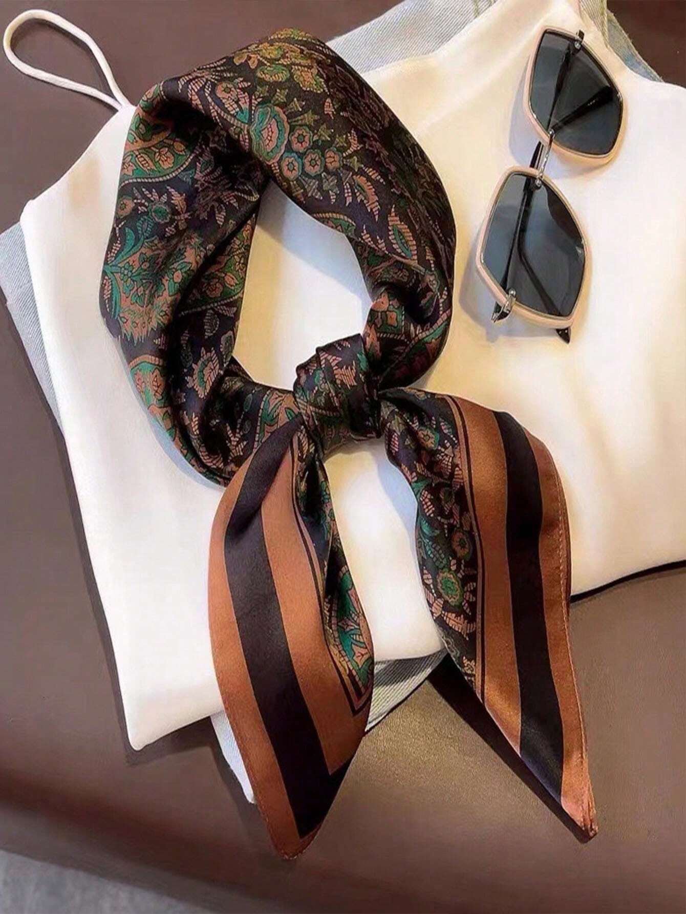 Boho 1pc Versatile And Fashionable Retro Flowers Sweet Picnic-Ins Style Chain Pattern Spring/Summer New Women's Scarf