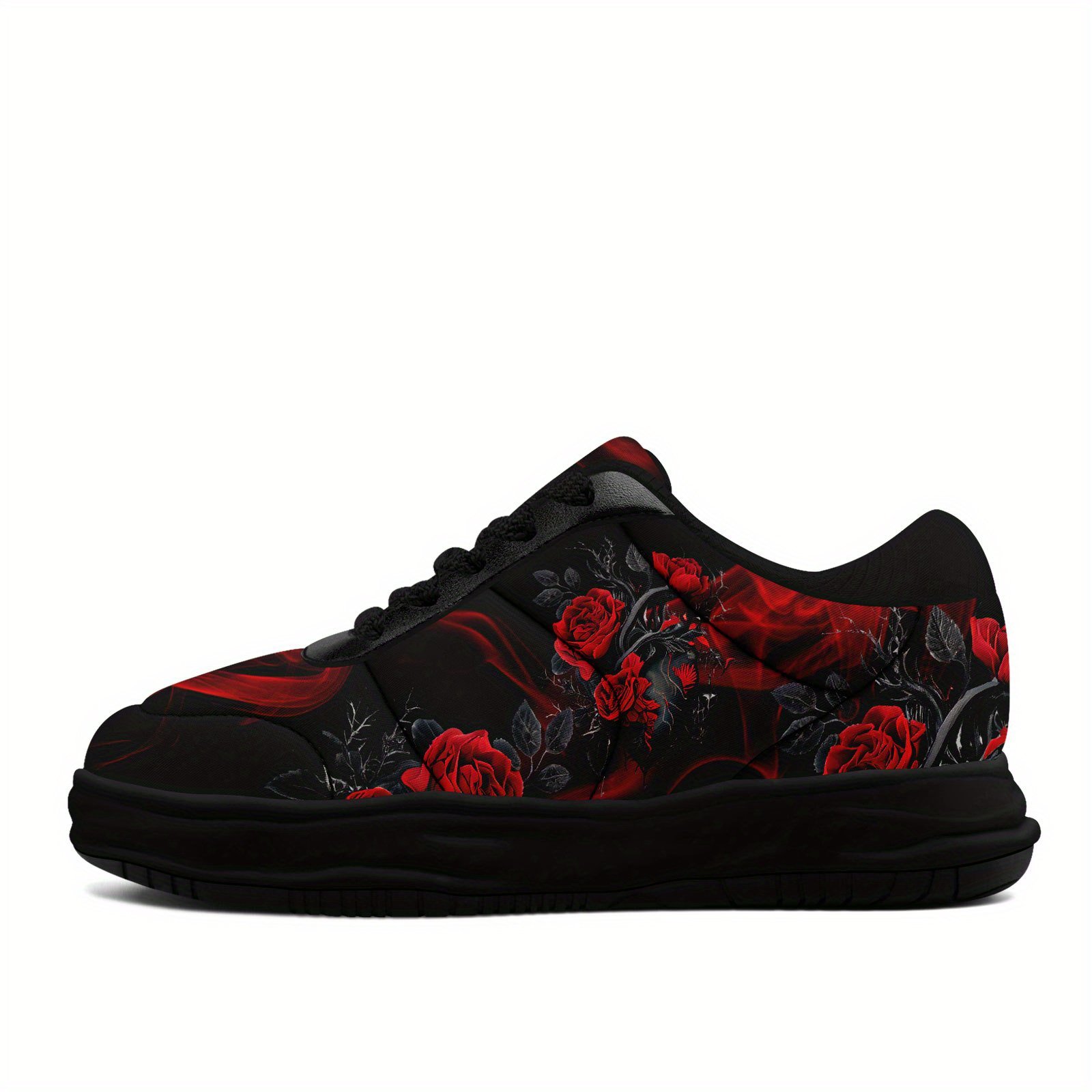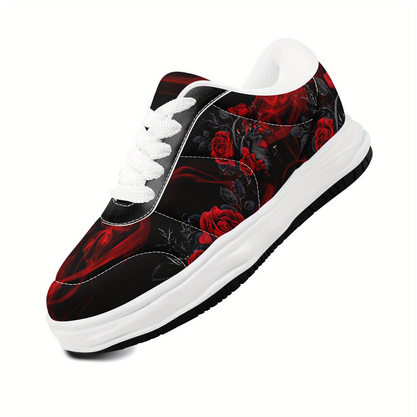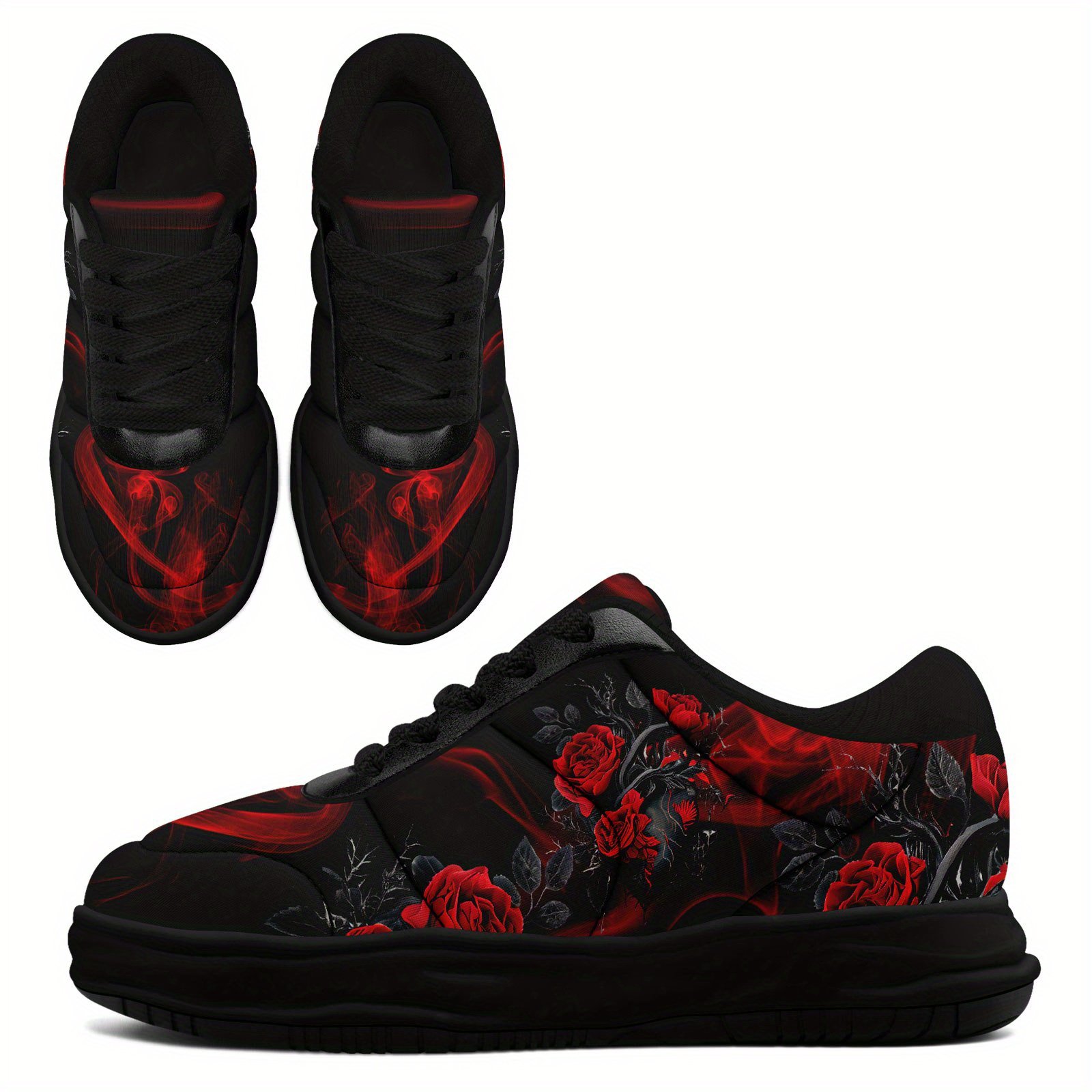 Chunky-Soled Sneakers for Men with a Gothic Rose Design, These Casual Shoes Feature a Creative Art Style Perfect for Streetwear. Lace-Up Trainers That Are Trendy And Available in Plus Sizes