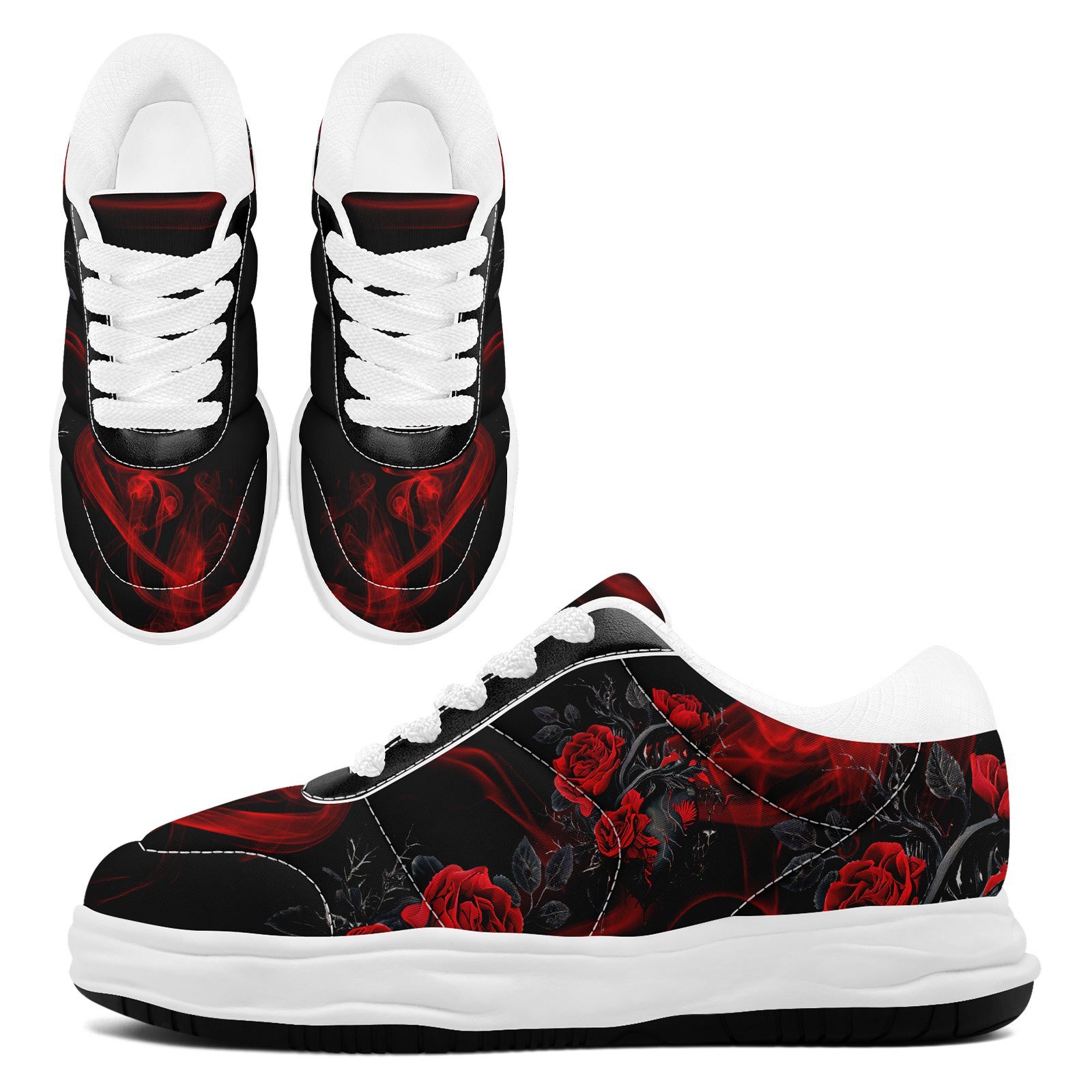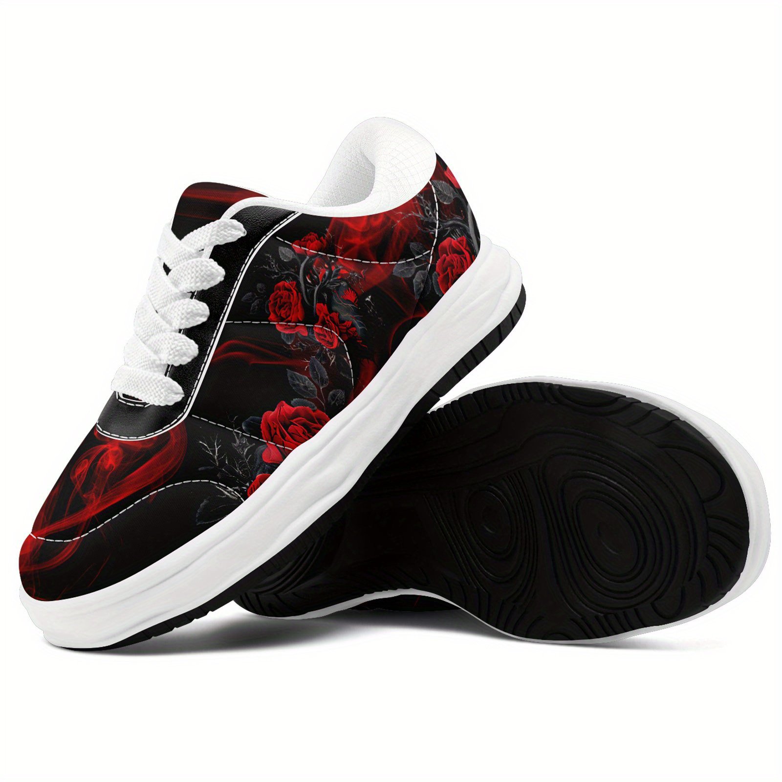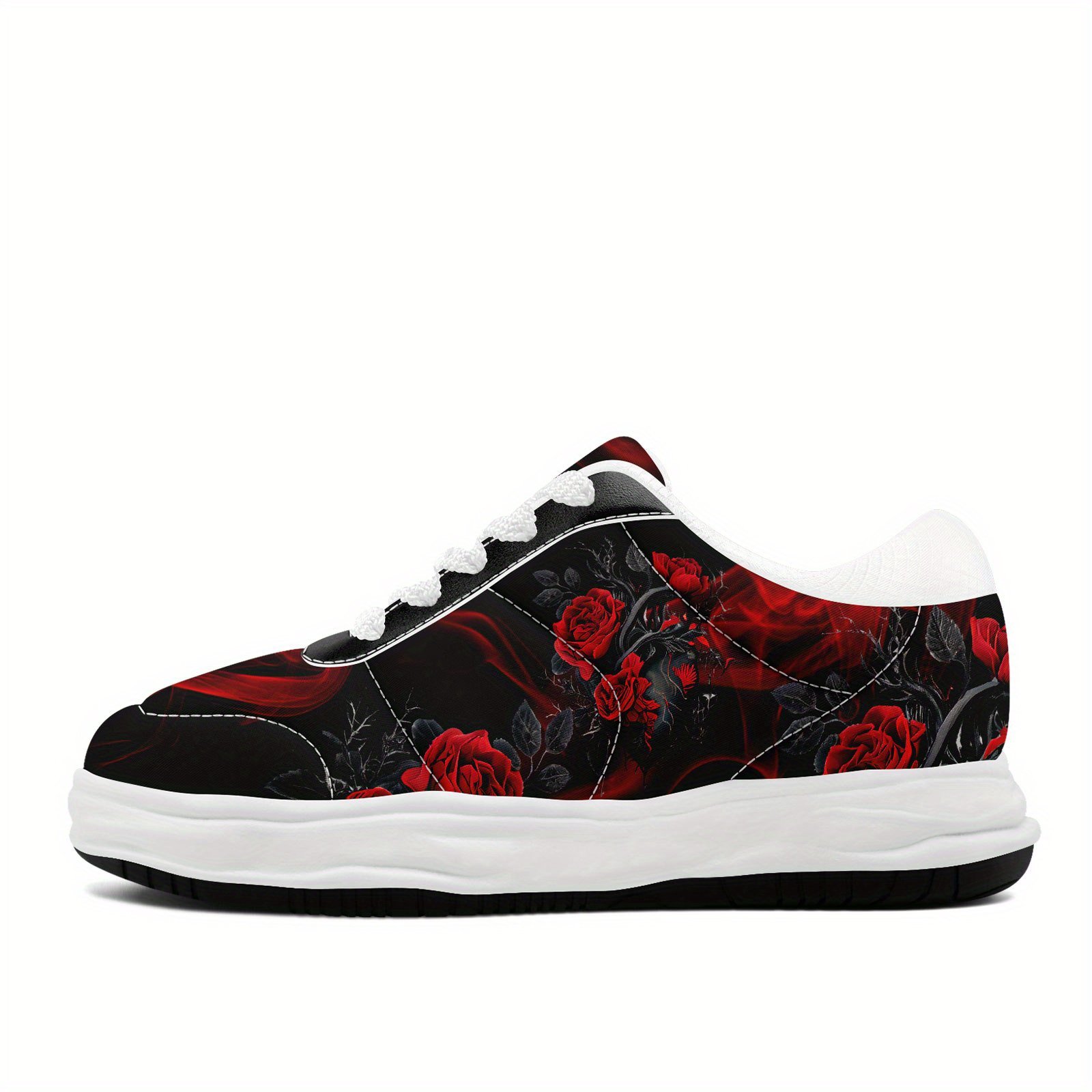 Chunky-Soled Sneakers for Men with a Gothic Rose Design, These Casual Shoes Feature a Creative Art Style Perfect for Streetwear. Lace-Up Trainers That Are Trendy And Available in Plus Sizes