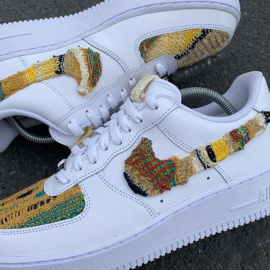 Each pair is a one-of-a-kind creation, expertly handcrafted through a detailed “cut and sew” process. We carefully select genuine Coogi fabricārenowned for its intricate, multi-colored patternsāand precisely hand-stitch it onto the classic panels of a brand-new, authentic Air Force 1. The result is a stunning, tactile sneaker where the bold, kaleidoscopic patterns of Coogi pop against the clean lines of the legendary AF1.