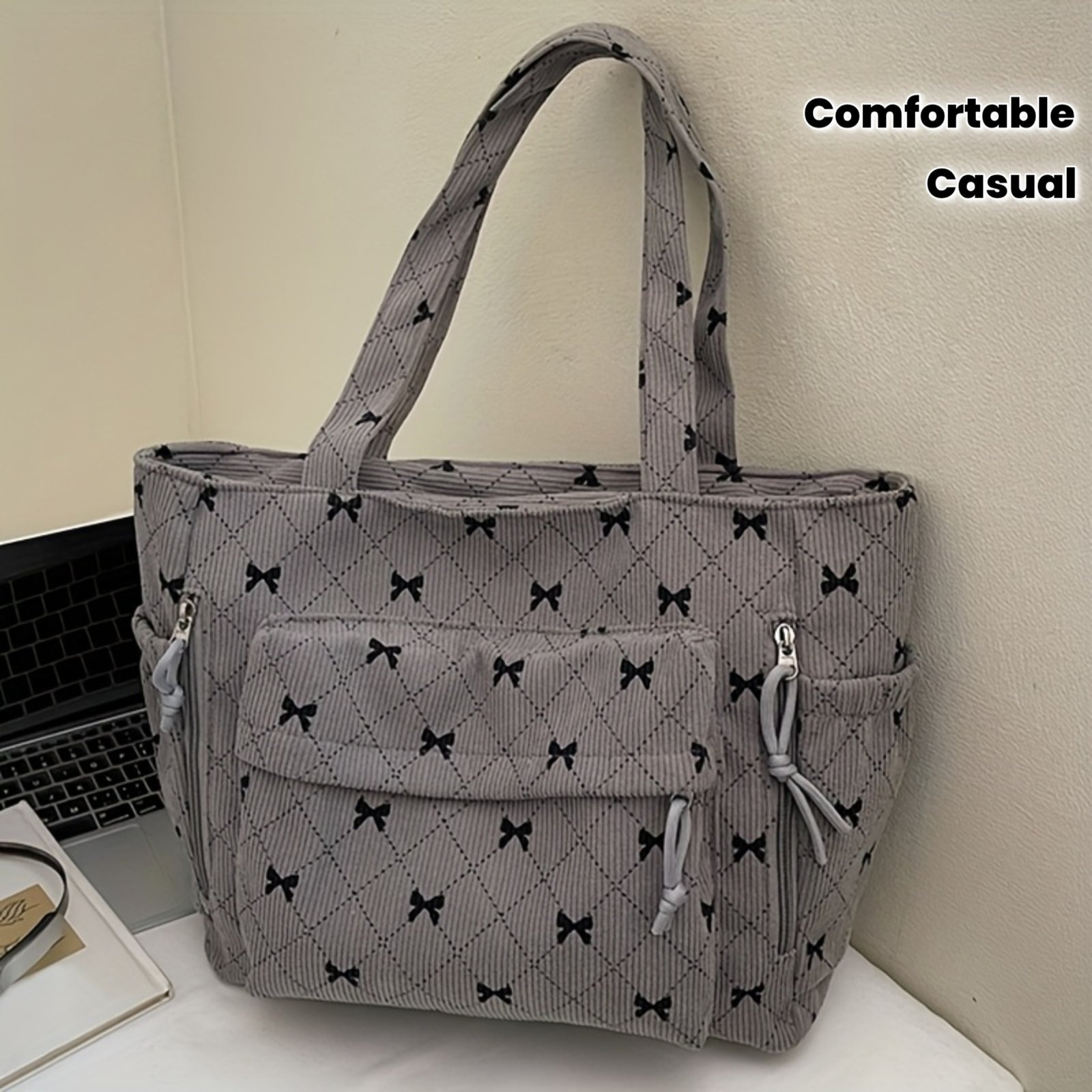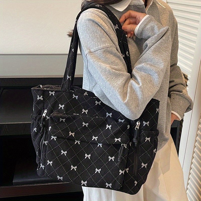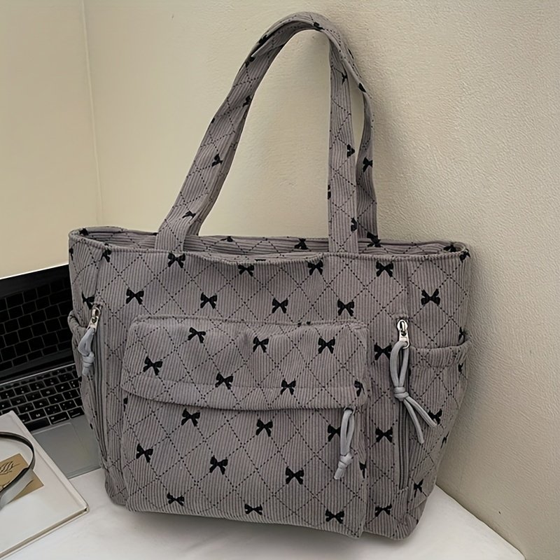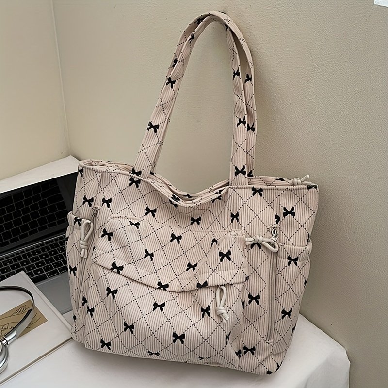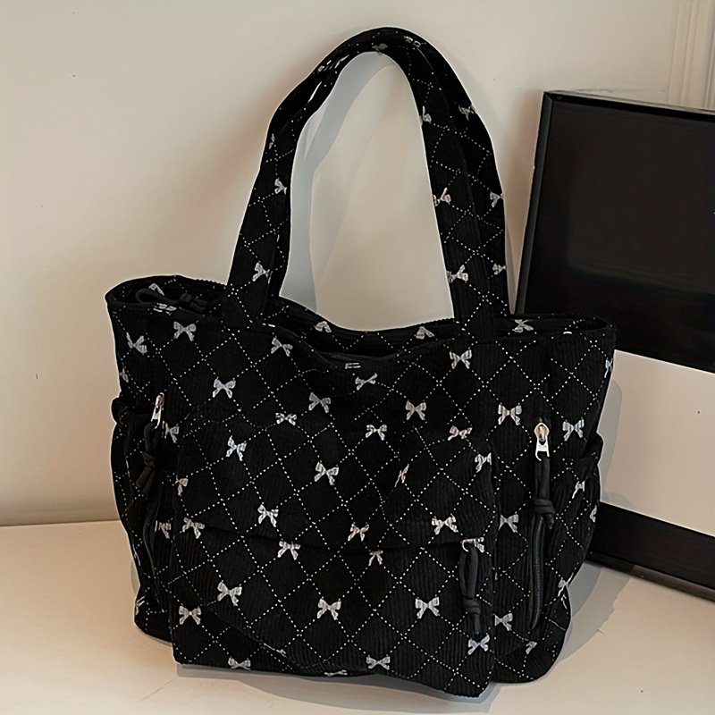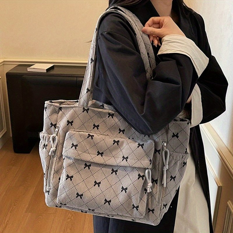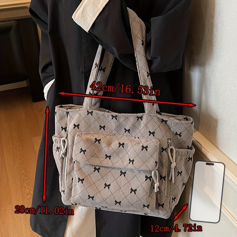 Corduroy New Autumn/Winter Women'Handbag, Daily Casual Bow Print Shoulder Bag, Soft Texture Comfortable Autumn/Winter Fashion Item, Shopping Handbag, Commuting to Work, Travel, Couple Date Tote, Makeup Bag, Phone Bag, Wallet, Cosmetic Pouch, Gift Bag