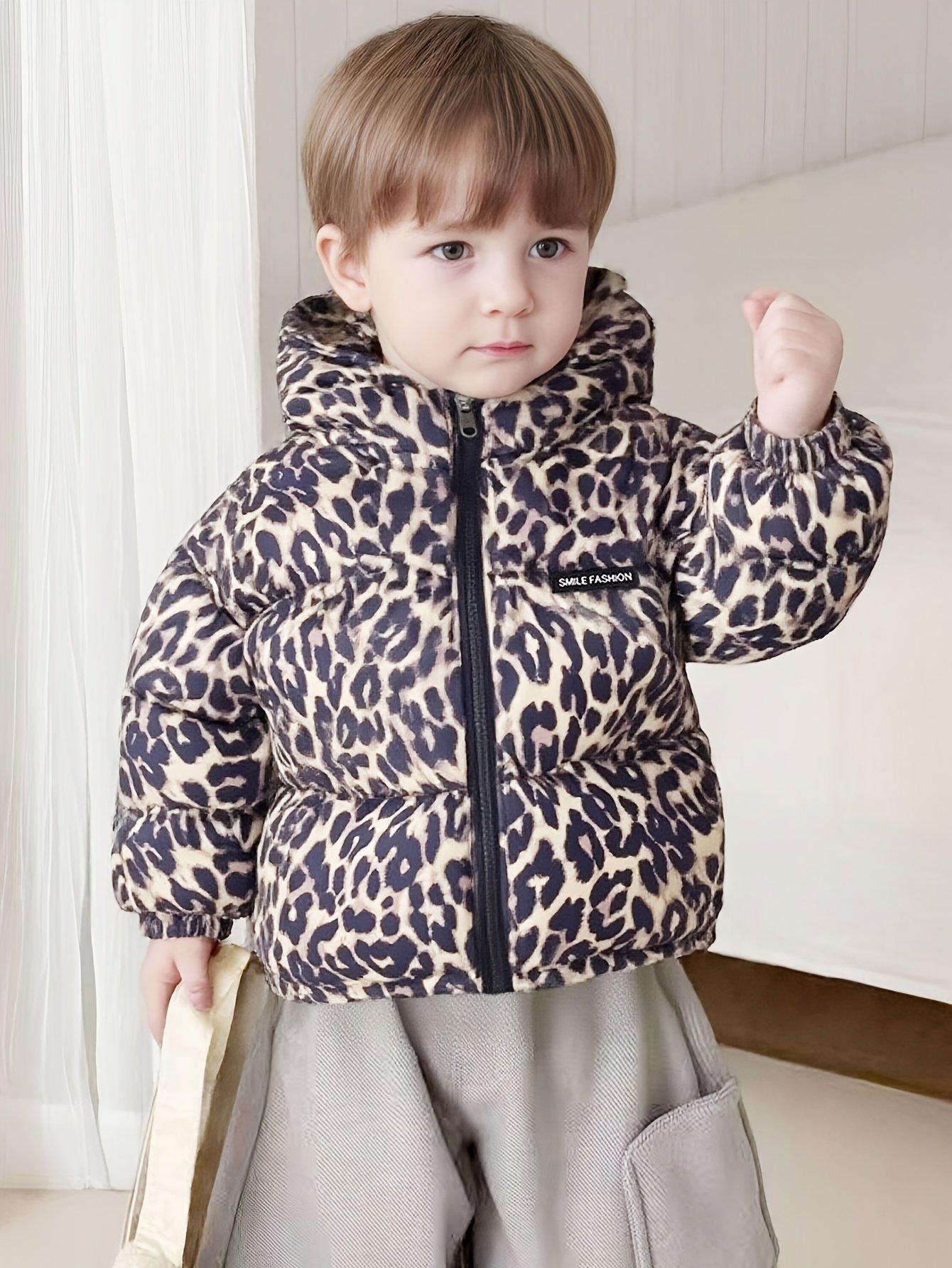 Be the first to review “Cute Leopard Print Kids' Hooded Jacket | Non-Stretch, Filled, Winter Warmth, Zipper Detail, Loose Fit for Baby Boys and Girls, Thick” Cancel reply
