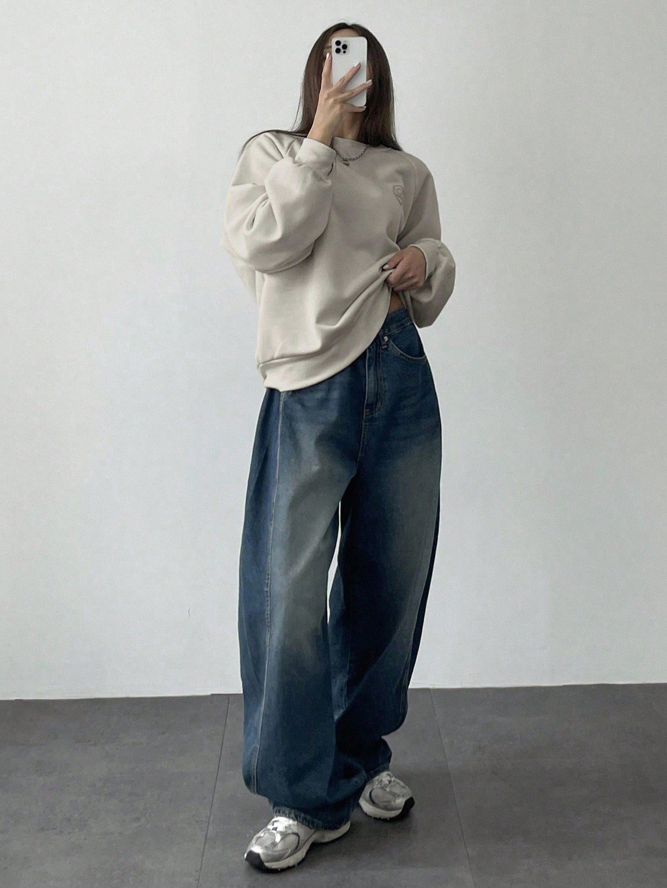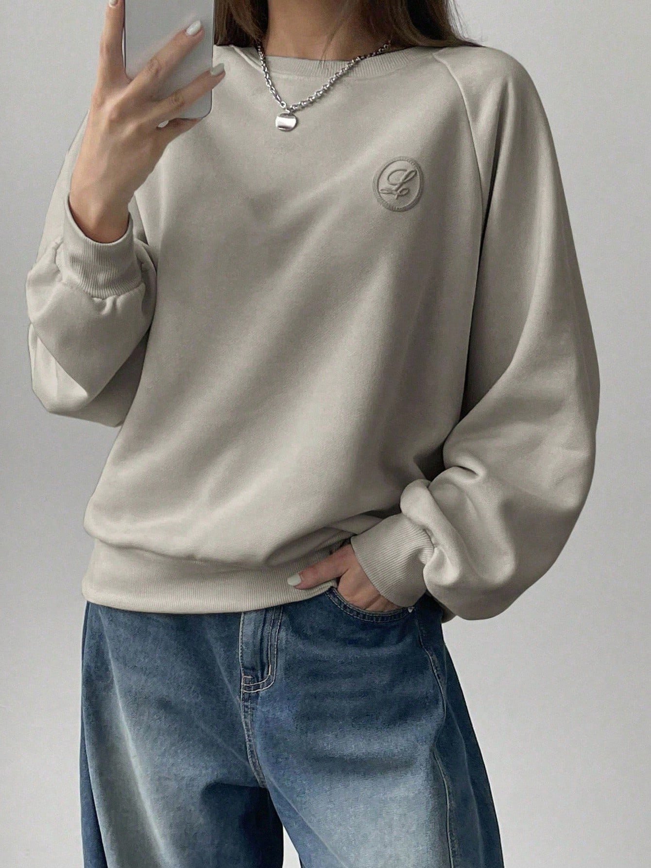 DAZY Graphic Embroidered Loose Crew Neck Long Sleeve Women Sweatshirt,Fall Women Clothes