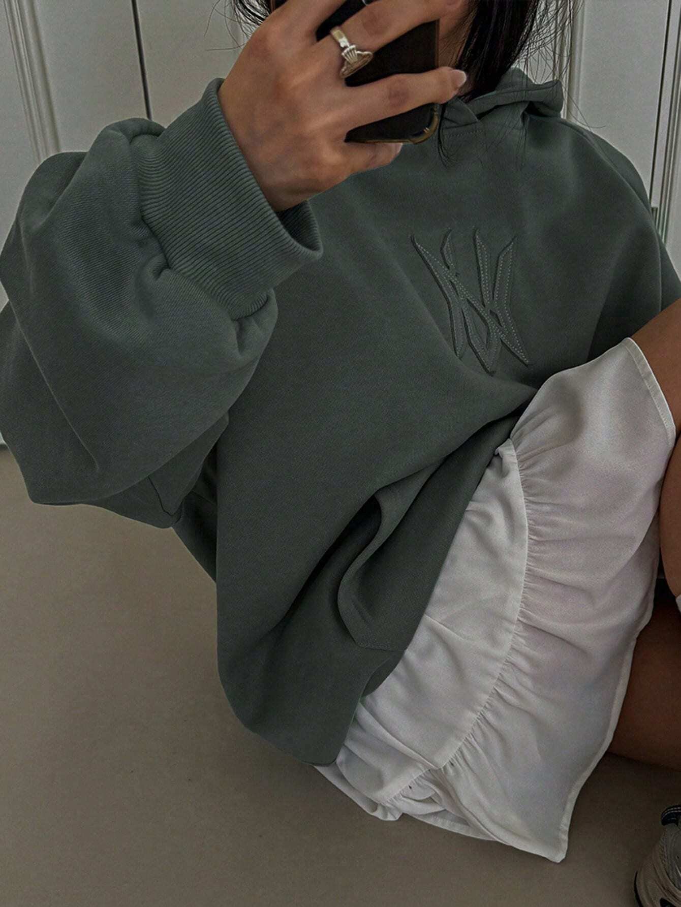 DAZY Women's Knitted Fleece Fabric Detail Photo, Loungewear, Indoor/Home Main Shot, Wrap-Around Style Showing Wrap-Around Effect, Applique Hooded Sweatshirt Fall,Winter