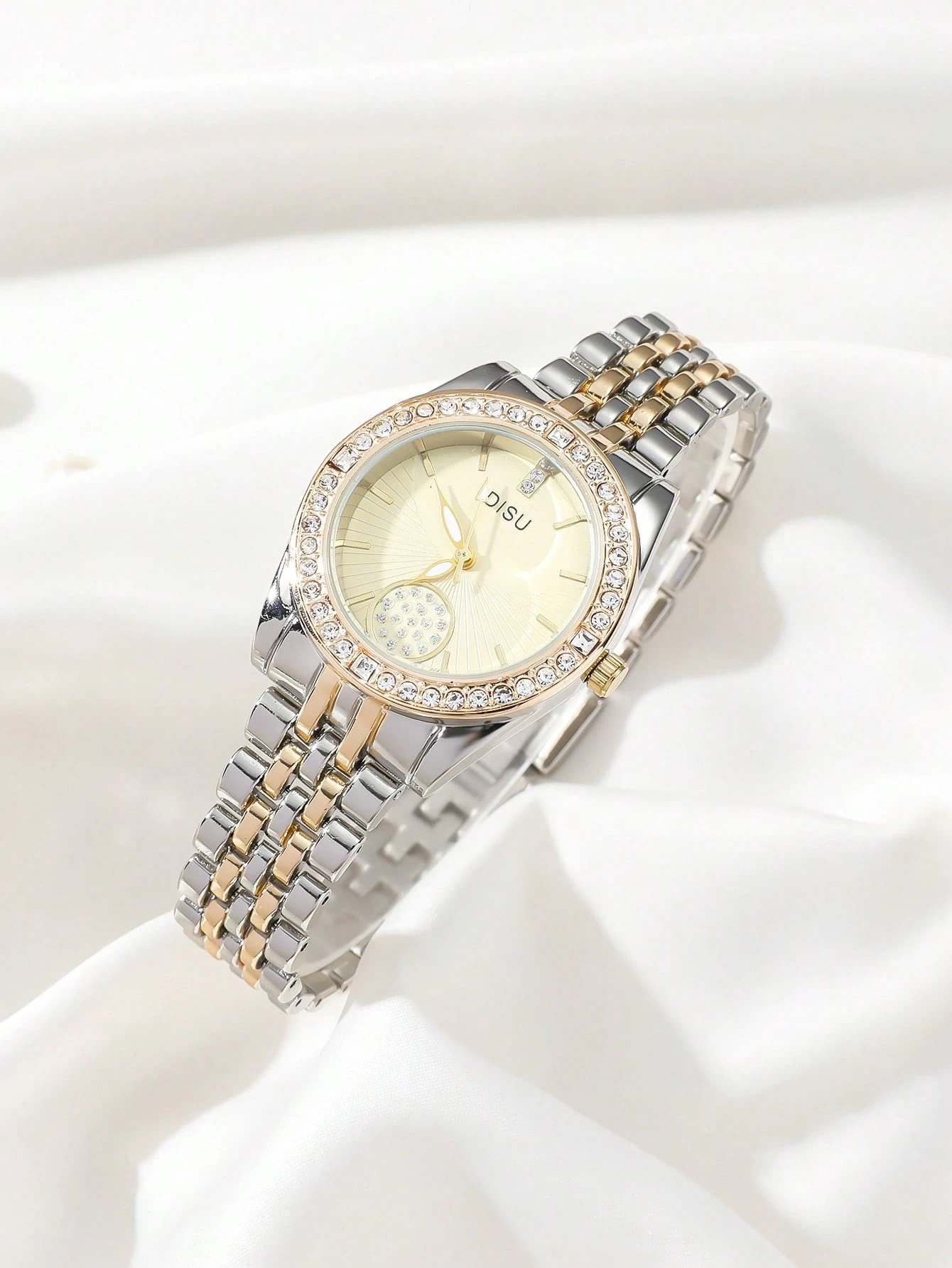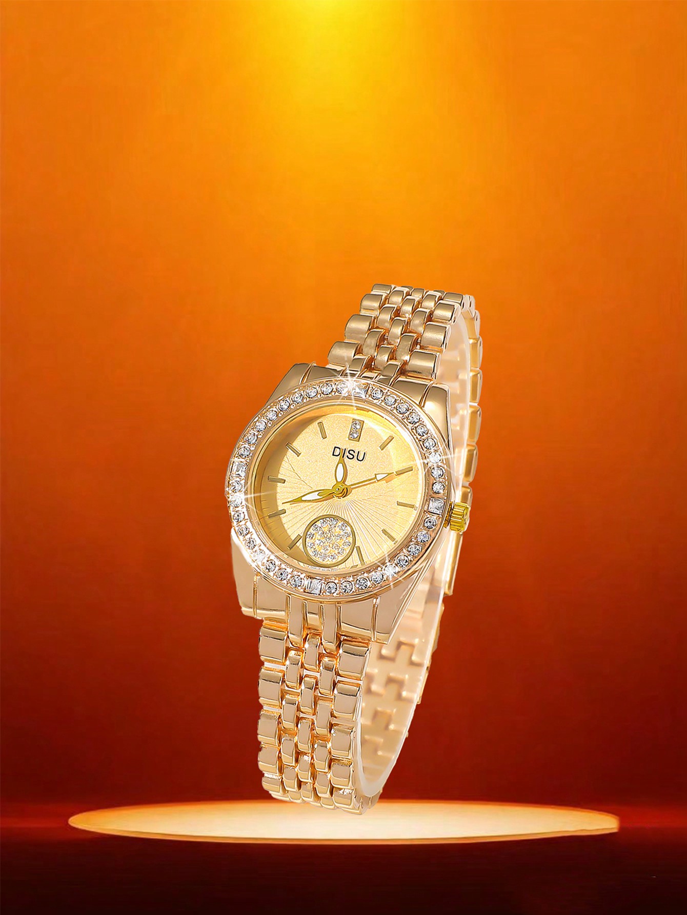 Be the first to review “DISU 1pc Women Classic Gold-Color Stainless Steel Band Quartz Watch With Rhinestones, Suitable For Daily Use” Cancel reply