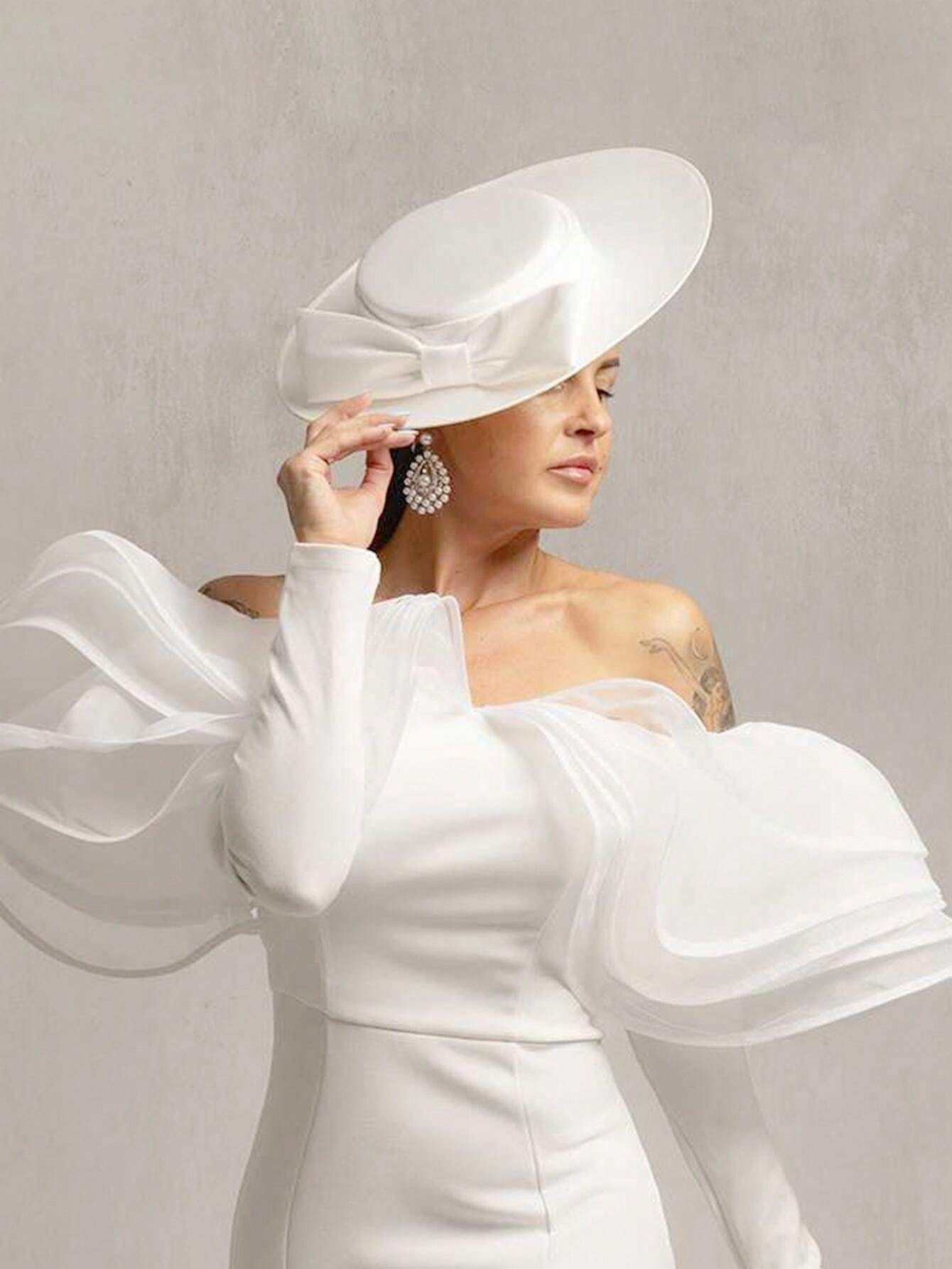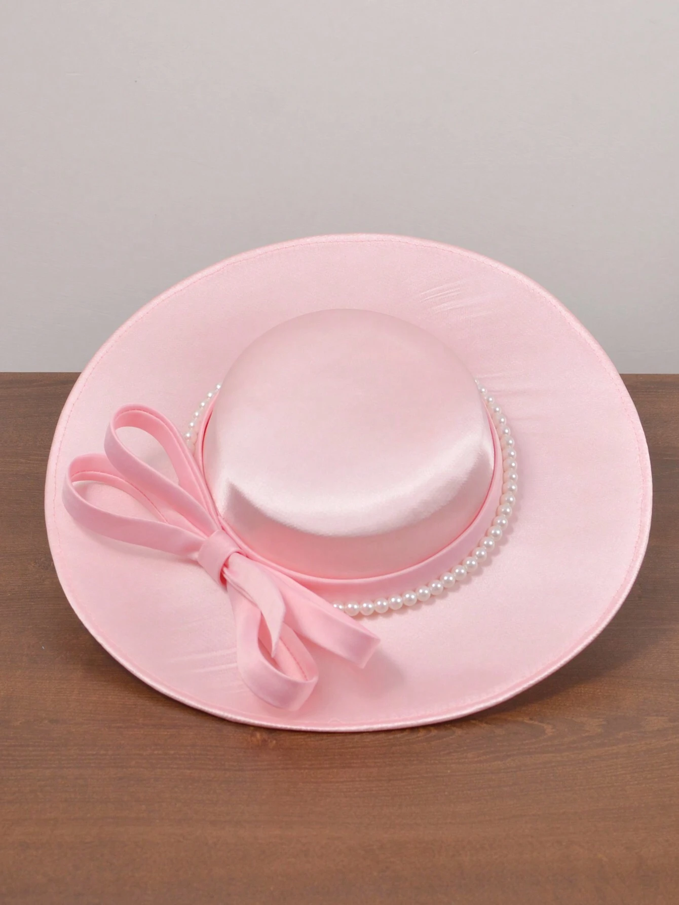 Elegant Wide Brim Fascinators Hats For Women Big Bowknot Formal Occasion Kentucky Cap Lady Wedding Bridal Cocktail Tea Party Dress Flat Top Fedoras Hat Halloween Valentine's Day Valentines