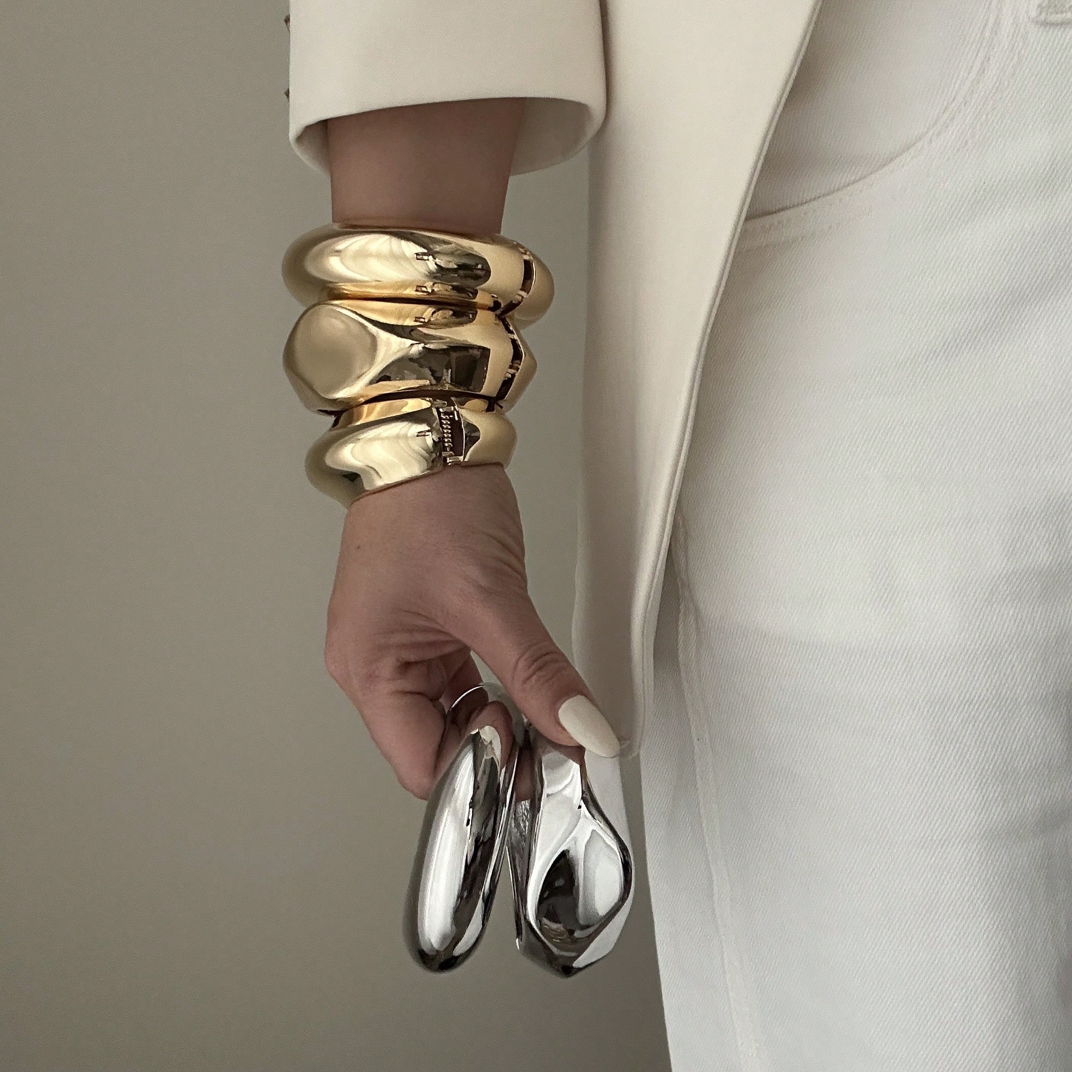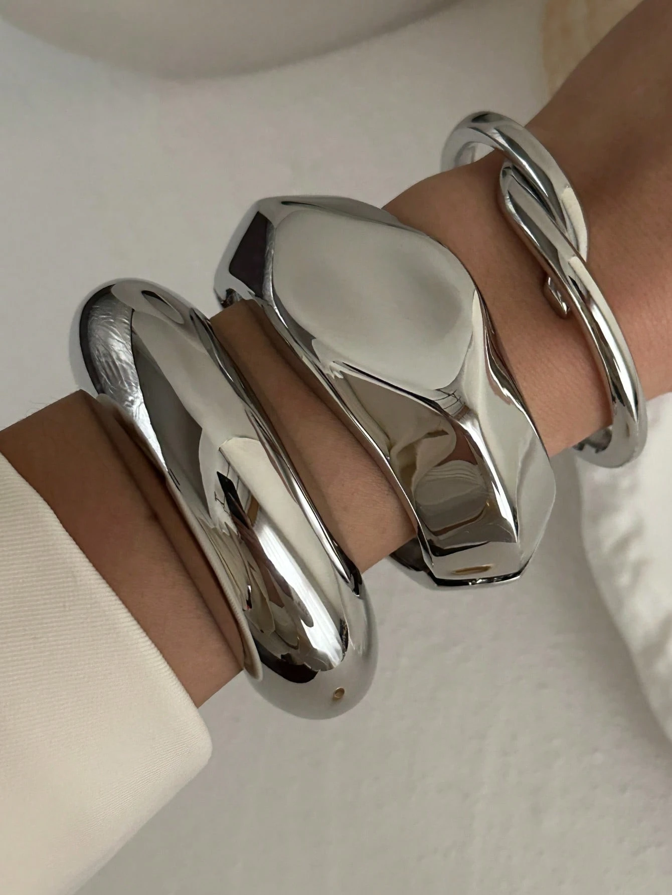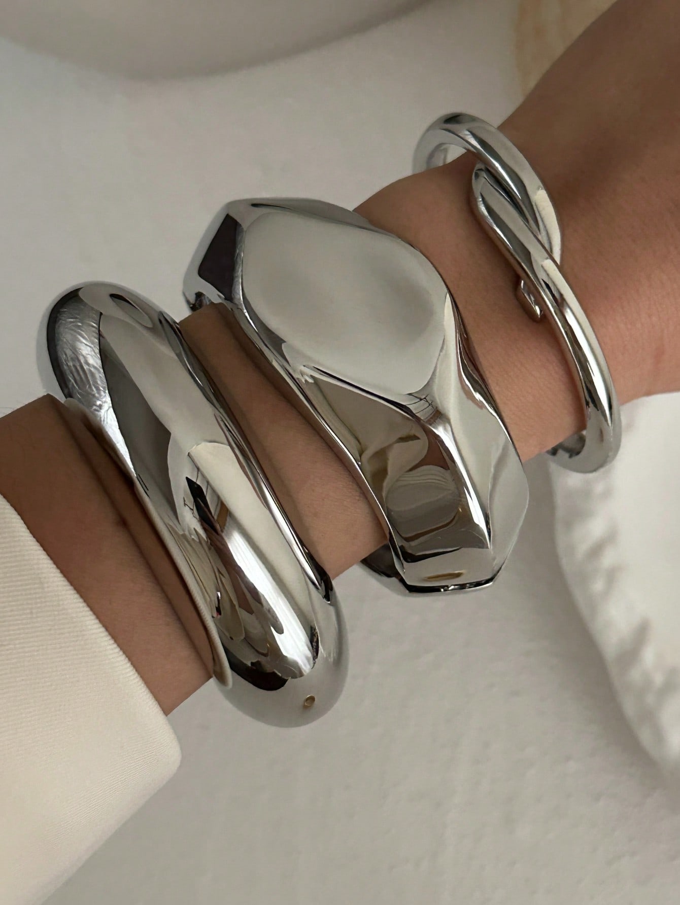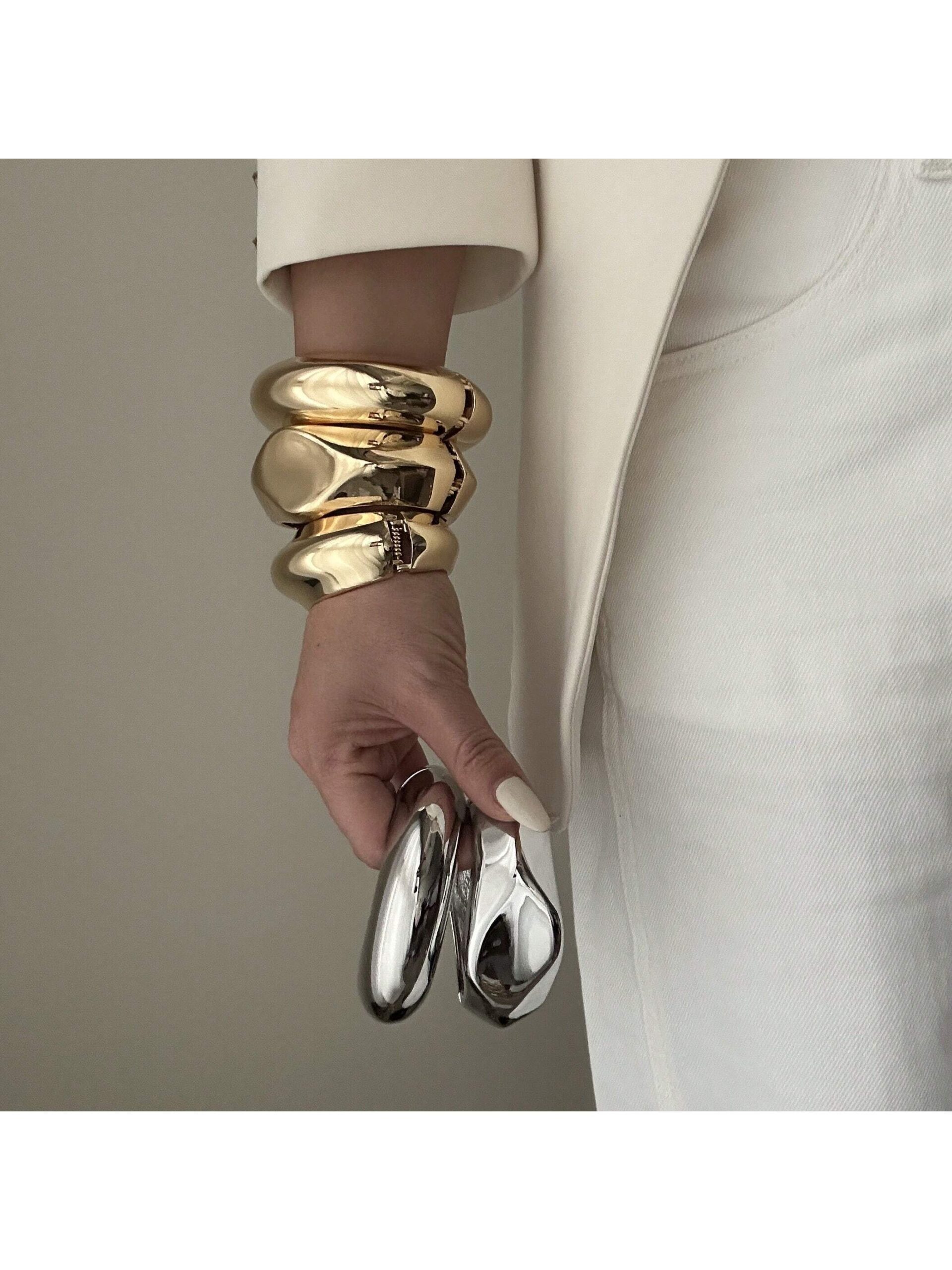 Europe & US Cross-Border Jewelry, Exaggerated Asymmetrical Smooth Line Metal Bracelet Set, Versatile