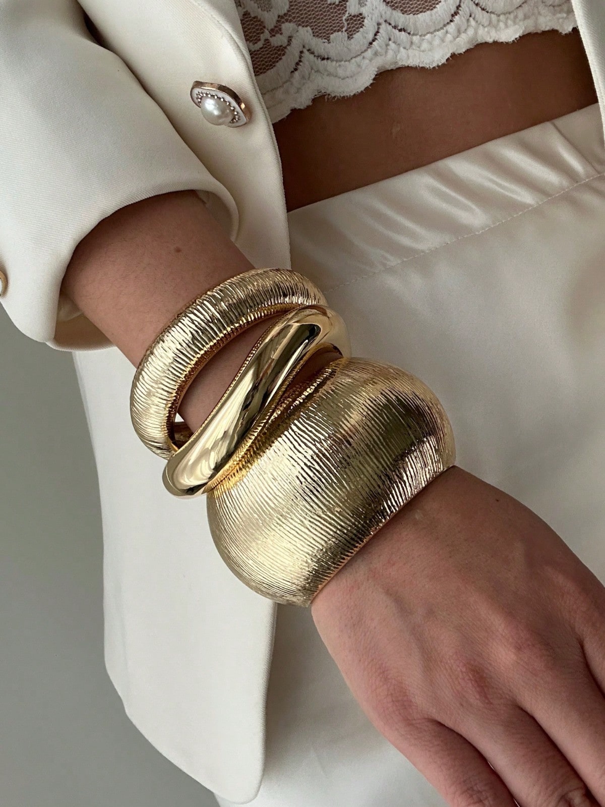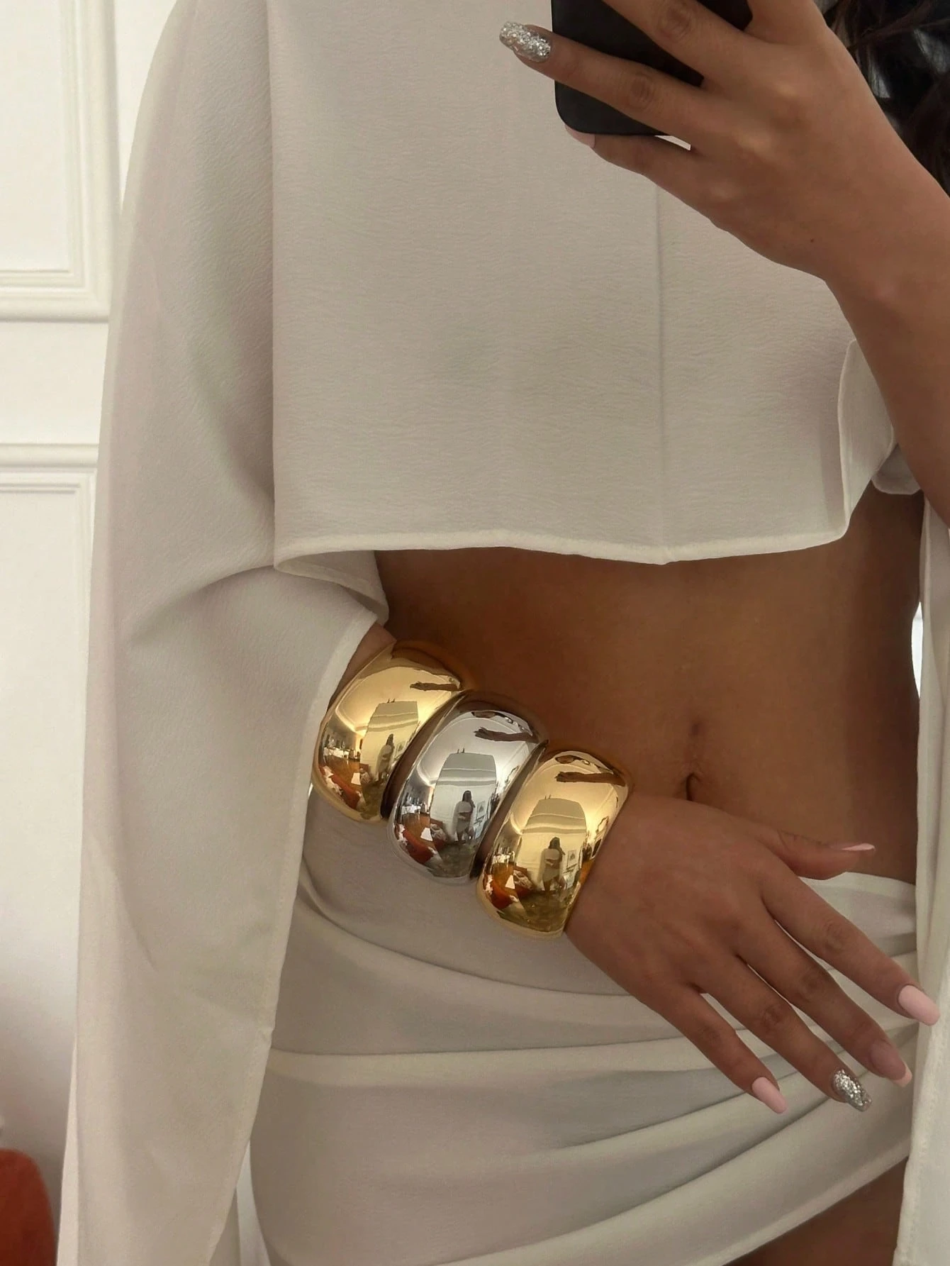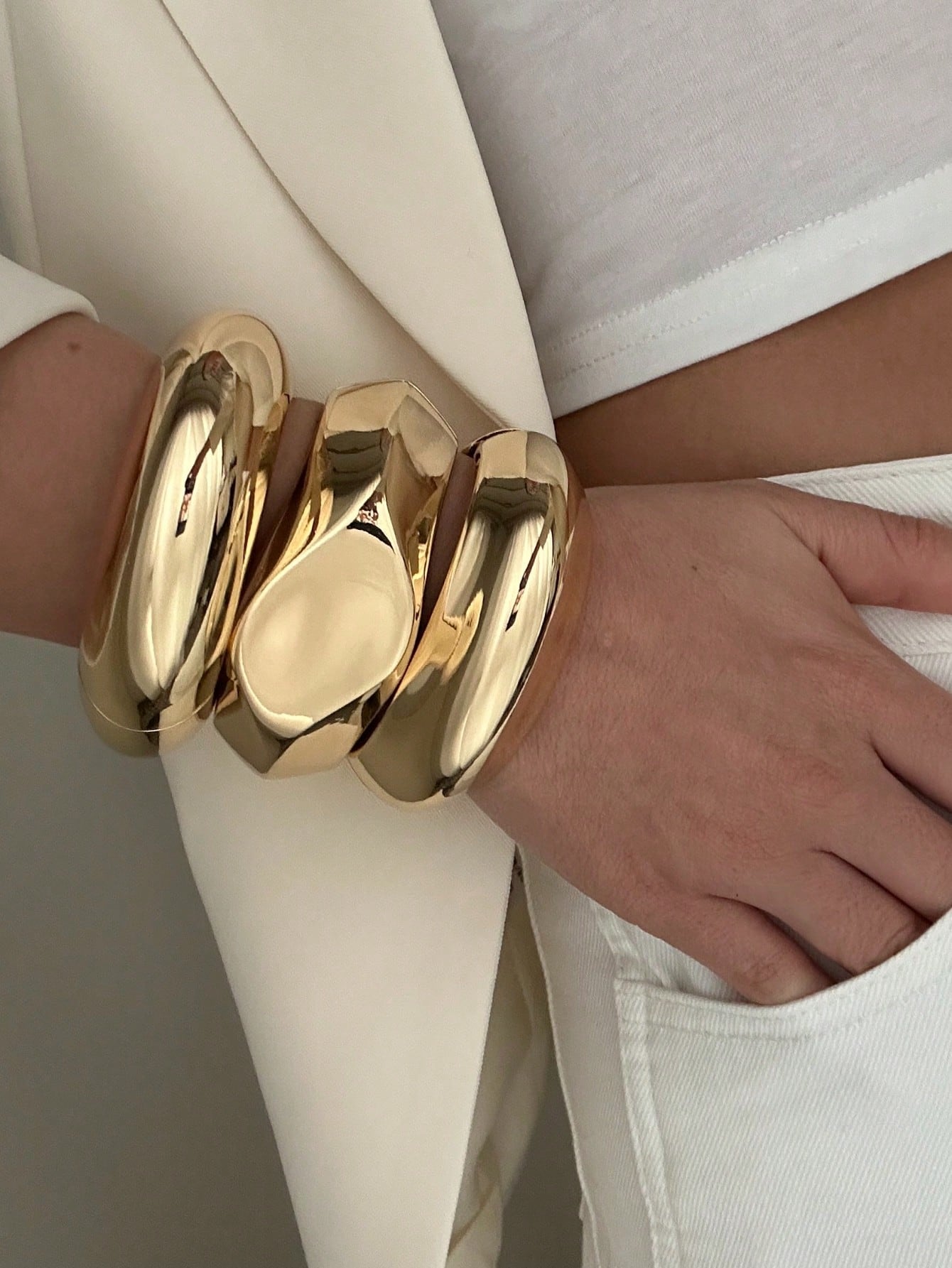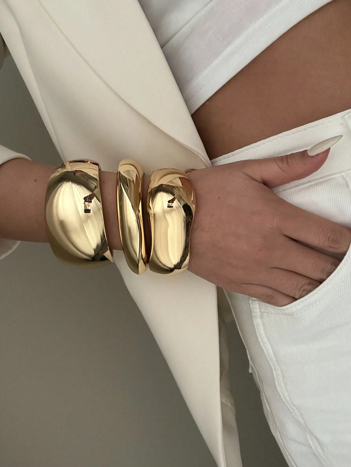 Europe & US Cross-Border Jewelry, Exaggerated Asymmetrical Smooth Line Metal Bracelet Set, Versatile