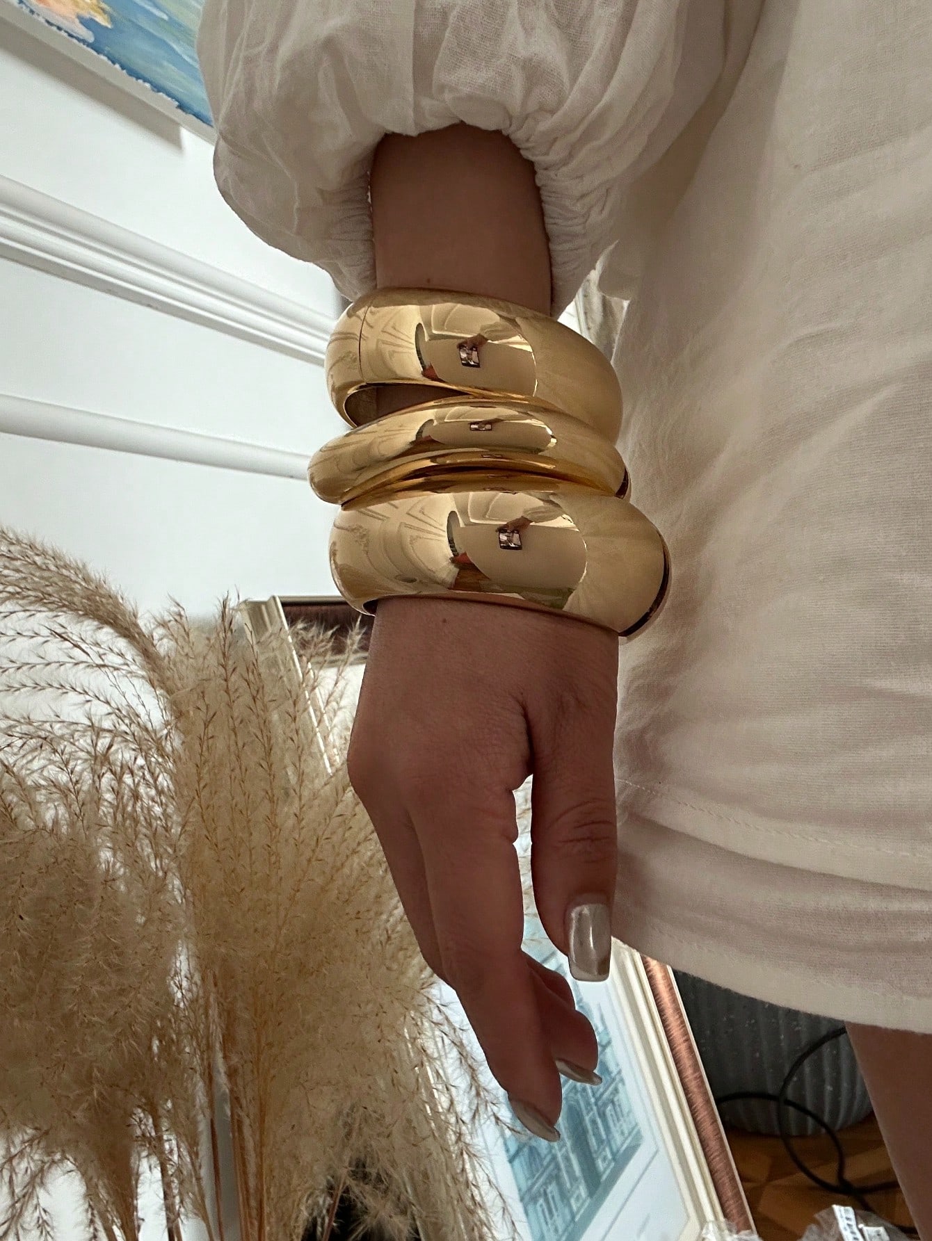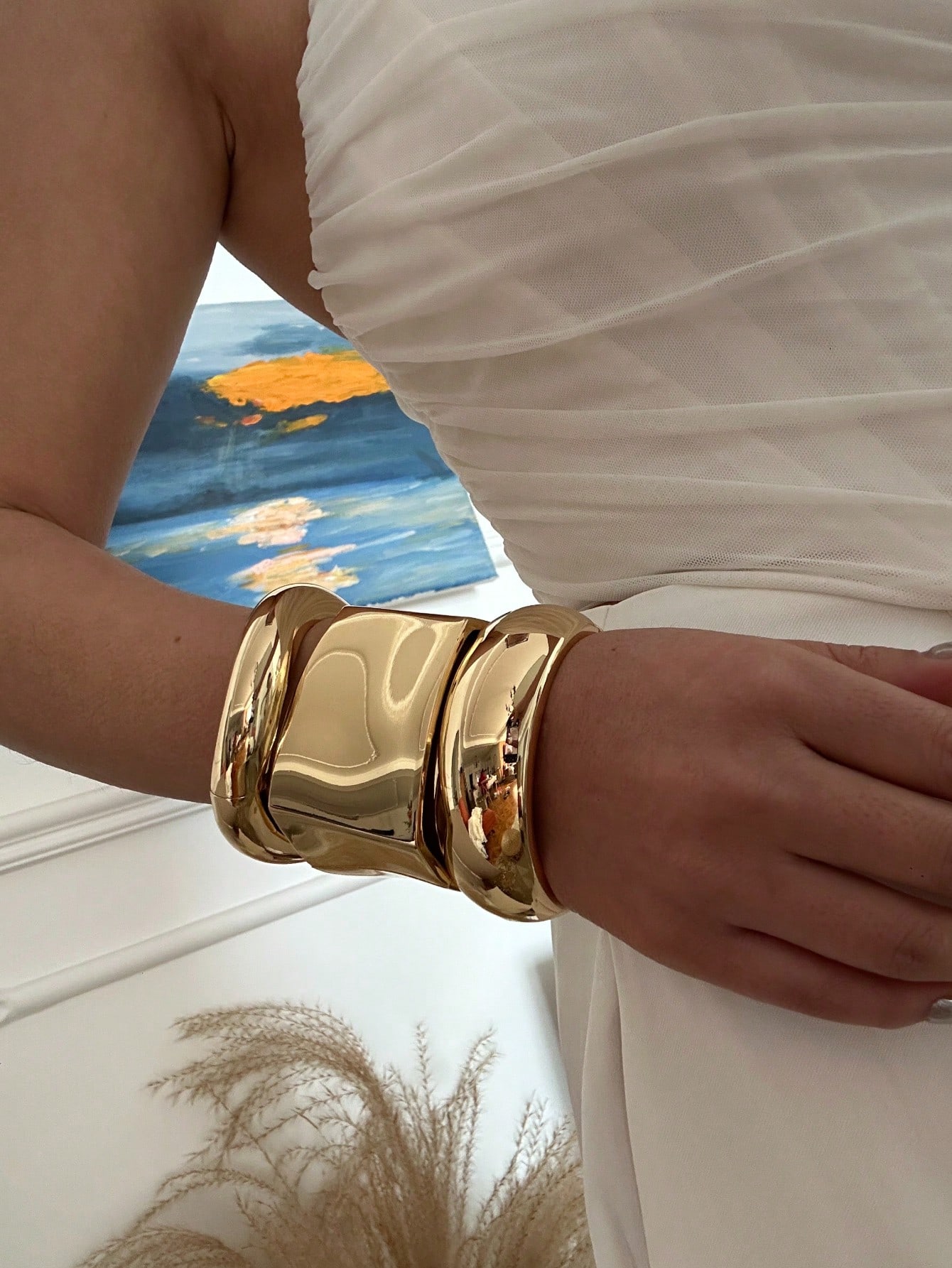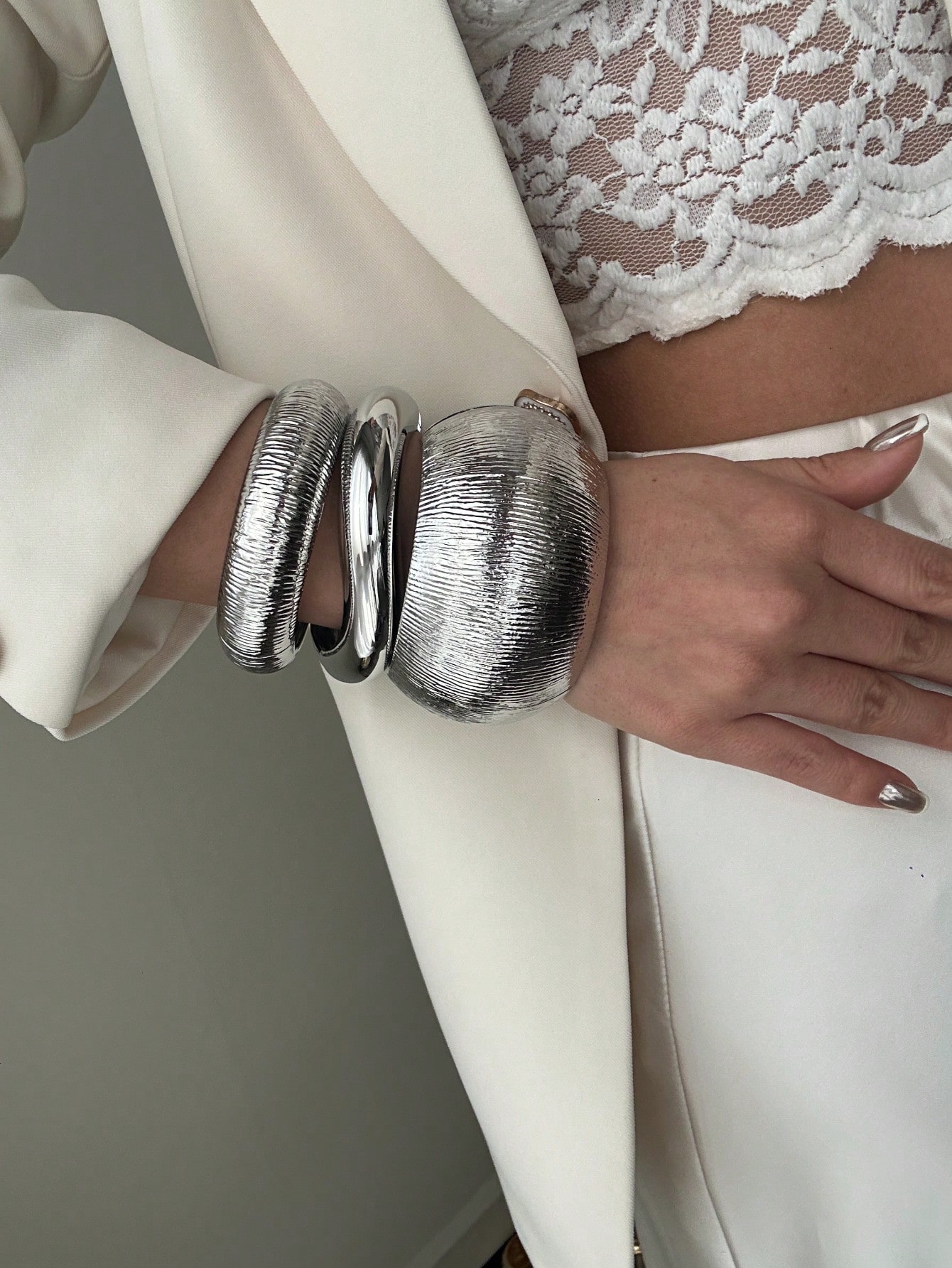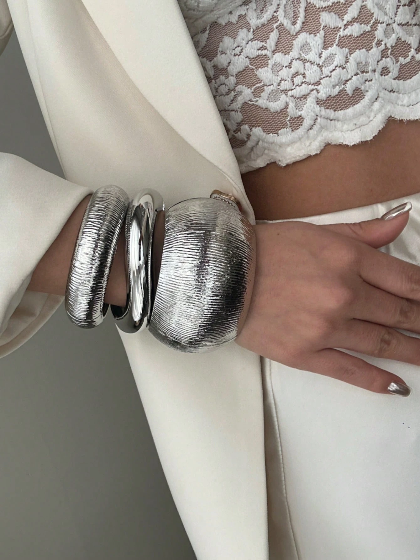 Europe & US Cross-Border Jewelry, Exaggerated Asymmetrical Smooth Line Metal Bracelet Set, Versatile