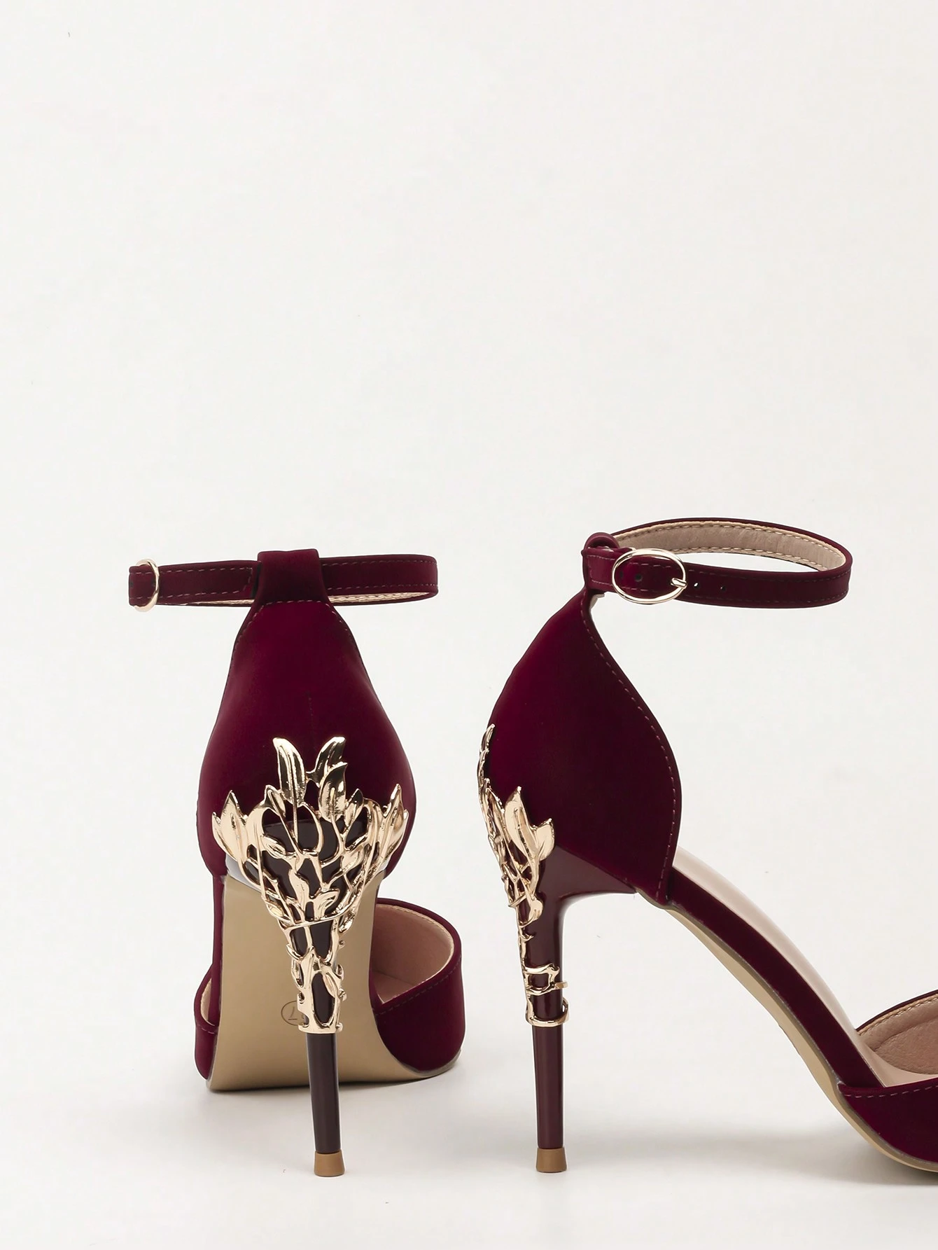 Fall/Winter 2025 European And American Style Fashionable Metal Flower Stiletto High Heel Wedding Shoes For Women, Pointed Toe Ankle Strap Sandals,Sexy,Women Pumps