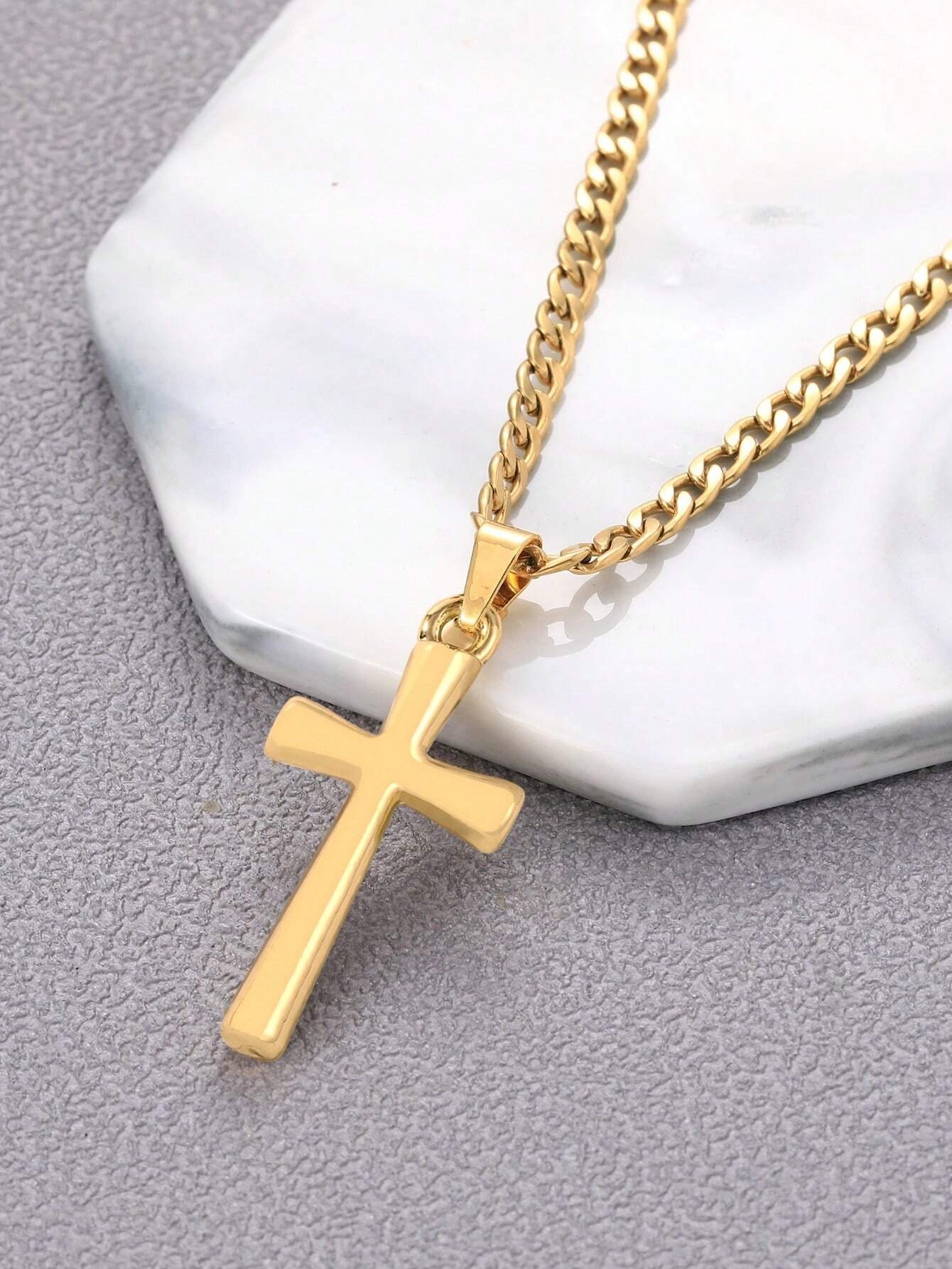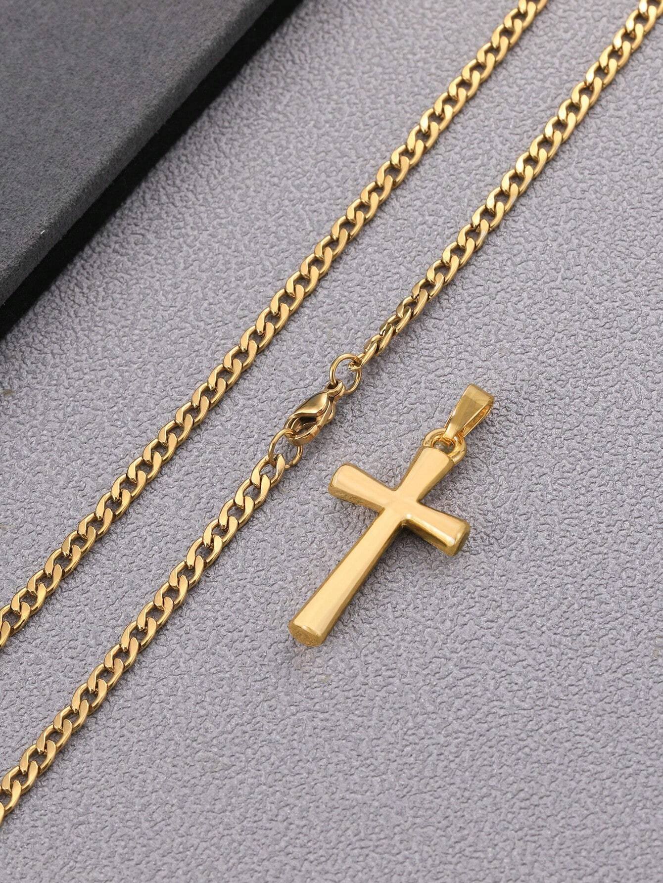 Fashionable and Popular Men Cross Charm Necklace Stainless Steel for Jewelry Gift and for a Stylish Look