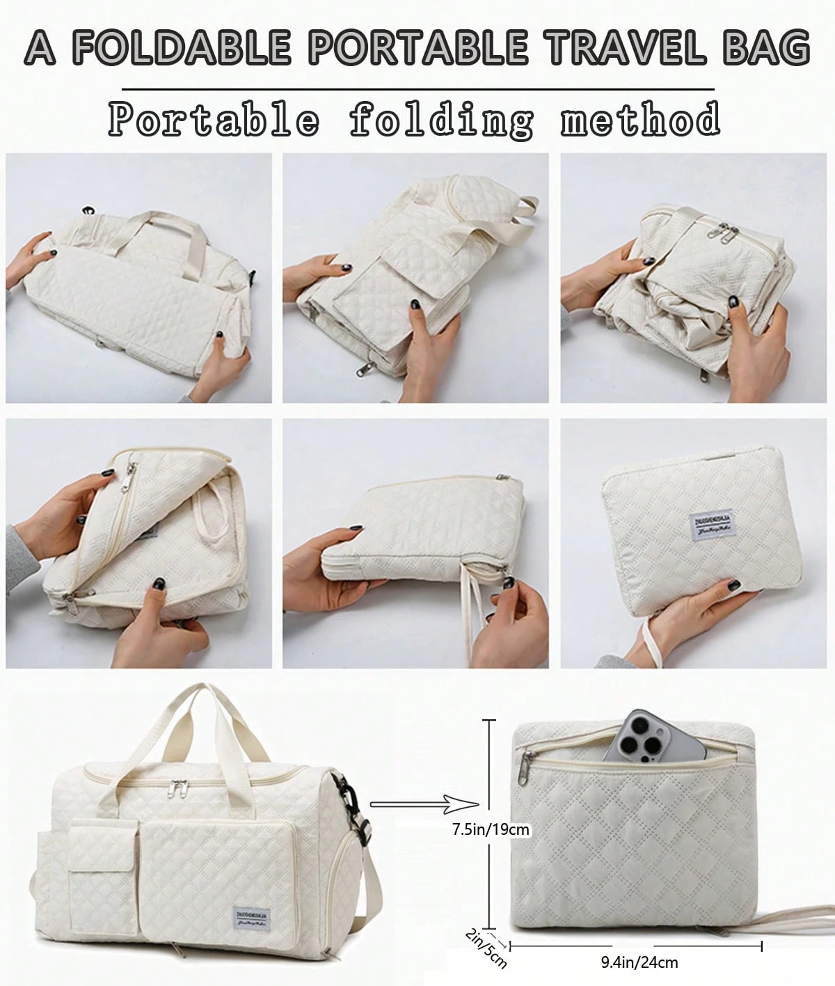 Foldable Portable Travel Duffel Bag,Lightweight And Collapsible, Wet And Dry Separation, Independent Shoe Compartment, Large Capacity With Multi-Pockets, Perfect For Day Trip, Overnight Stay, Hospital Bag, School Bag, Beach Trip Or Vacation Bag For School