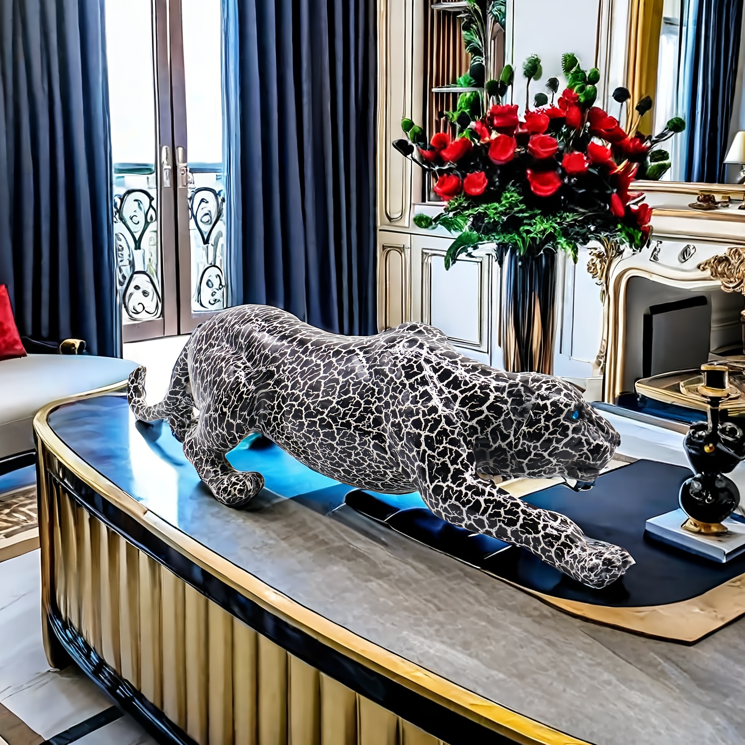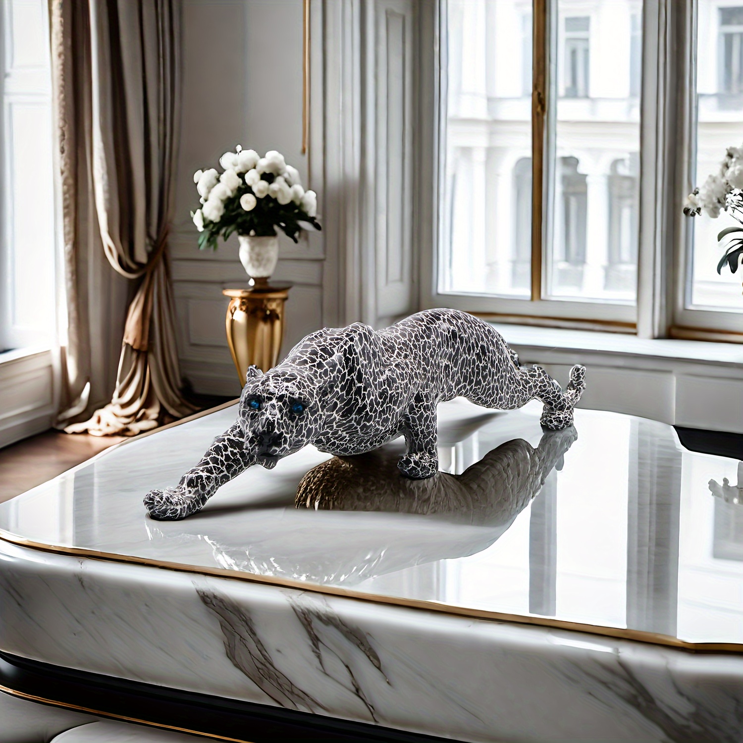 Geometric Leopard Statue Resin Sculpture, Collectible Cheetah Figurine, Modern Home Office Decor for Living Room, Tabletop, Bookshelf, TV Stand, Versatile Indoor/Outdoor Decorative Accent for Various Room Types, Ideal for Holidays Including Thanksgiving,