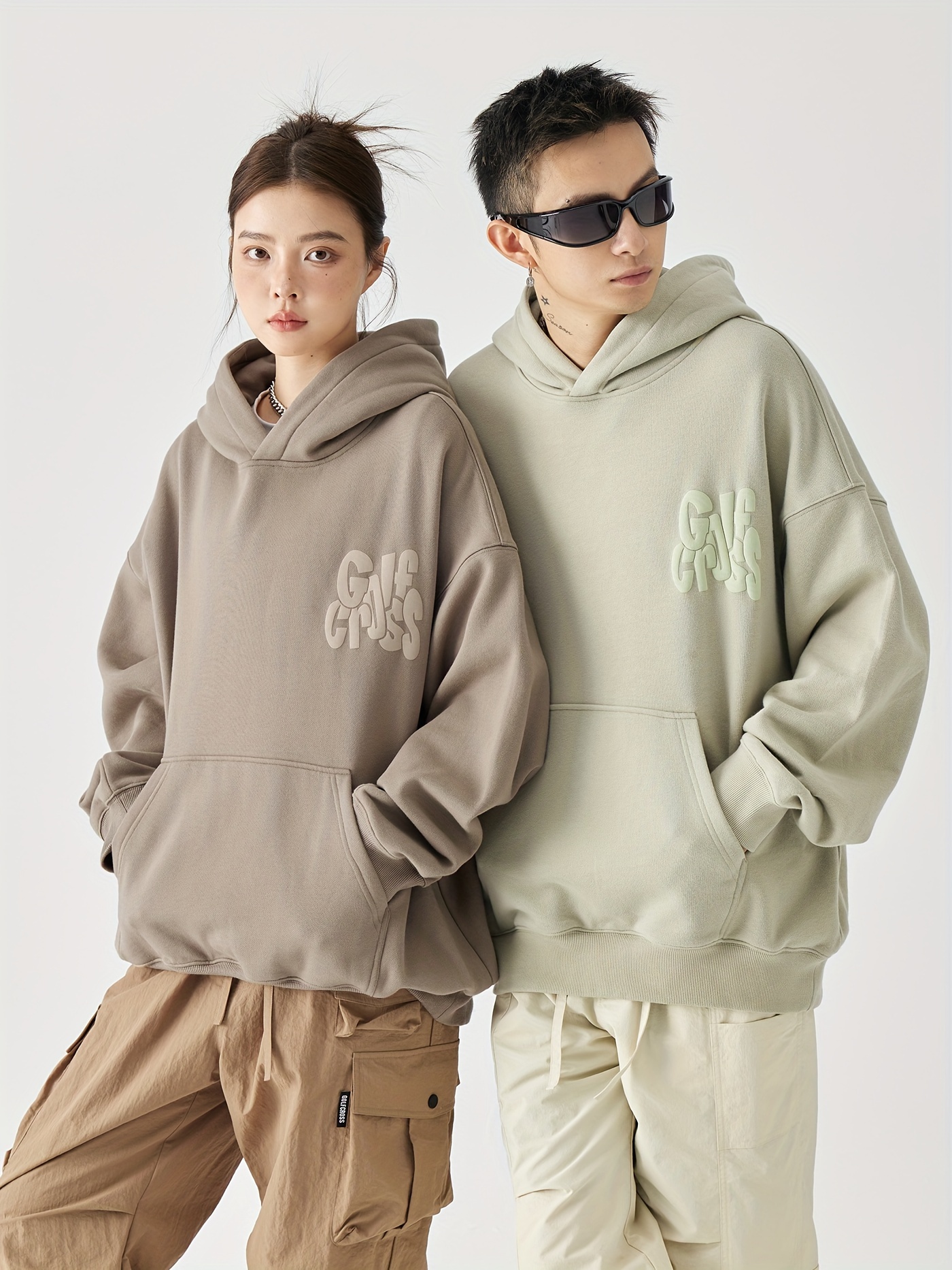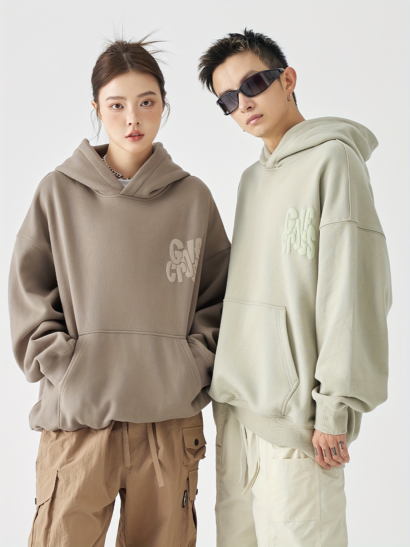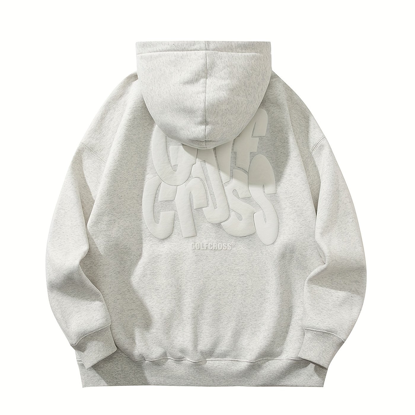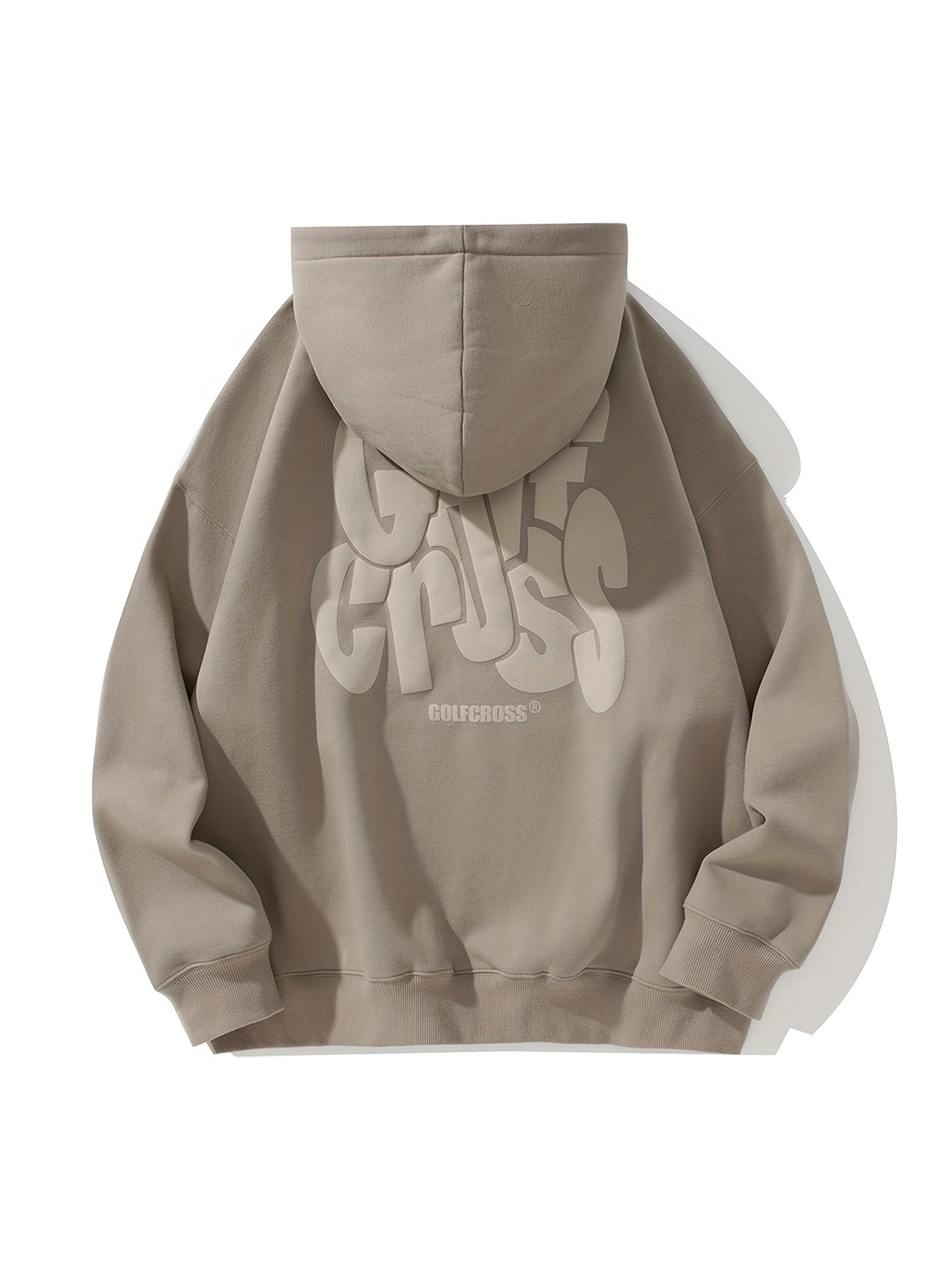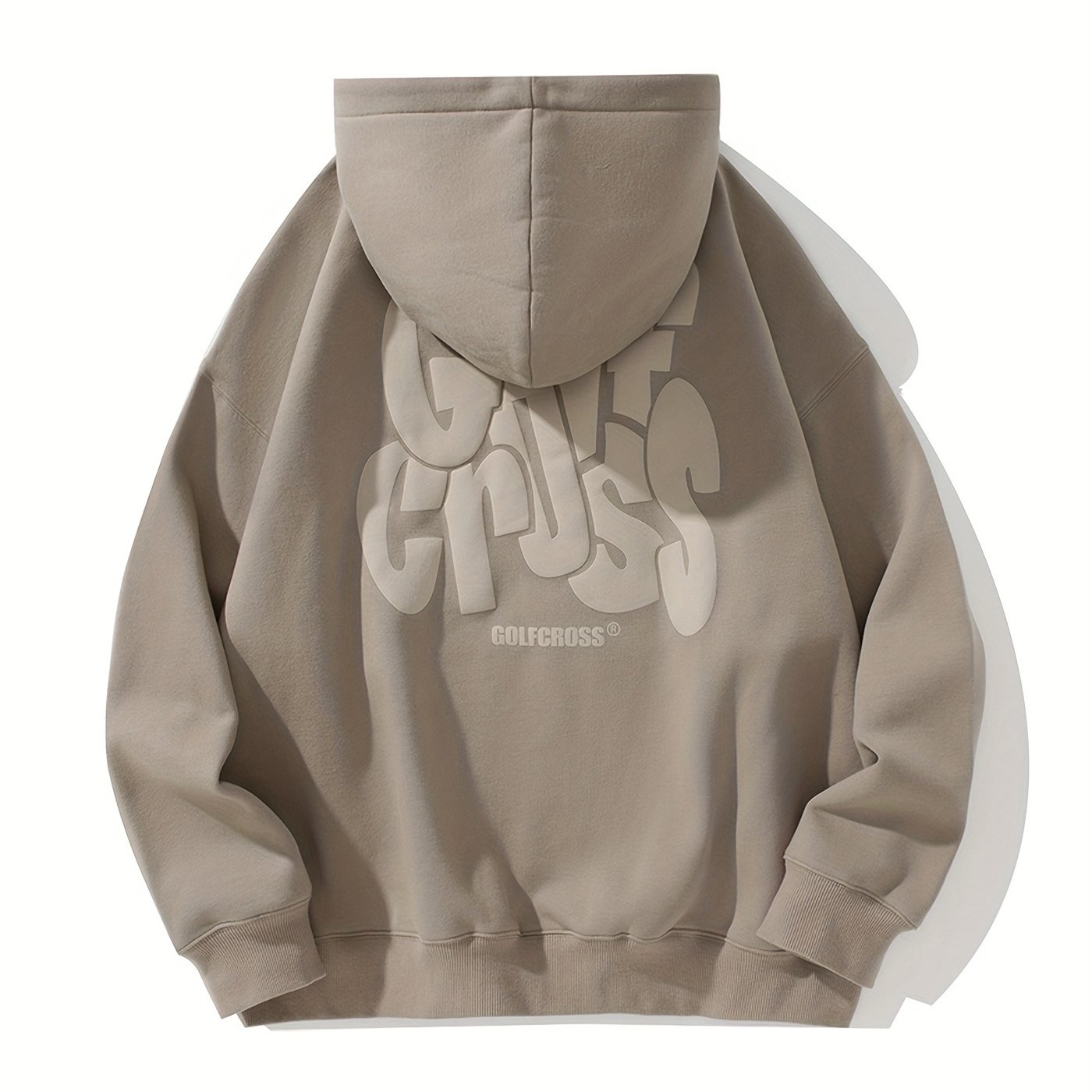 GOLFCROSS Men's Hoodie – Beige Streetwear Pullover Sweatshirt, Loose Fit Hooded Sweater for Everyday & Formal Outfits, Urban Style, Bold Lettering Design, Durable Construction, Casual Top, Urban Lifestyle